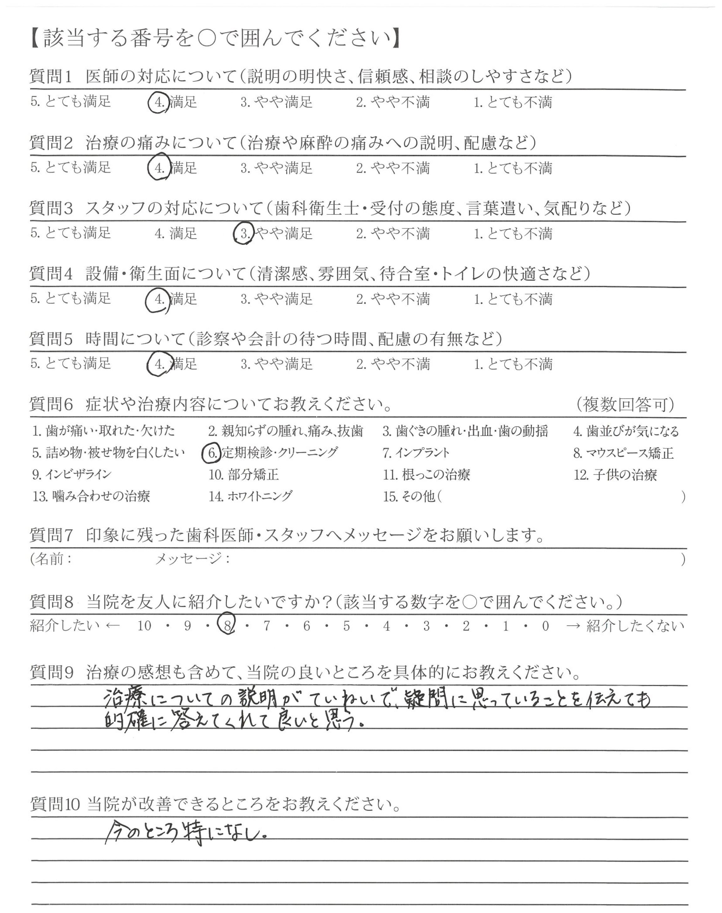 治療についての説明がていねいで、疑問に思っていることを伝えても的確に答えてくれて良いと思う。