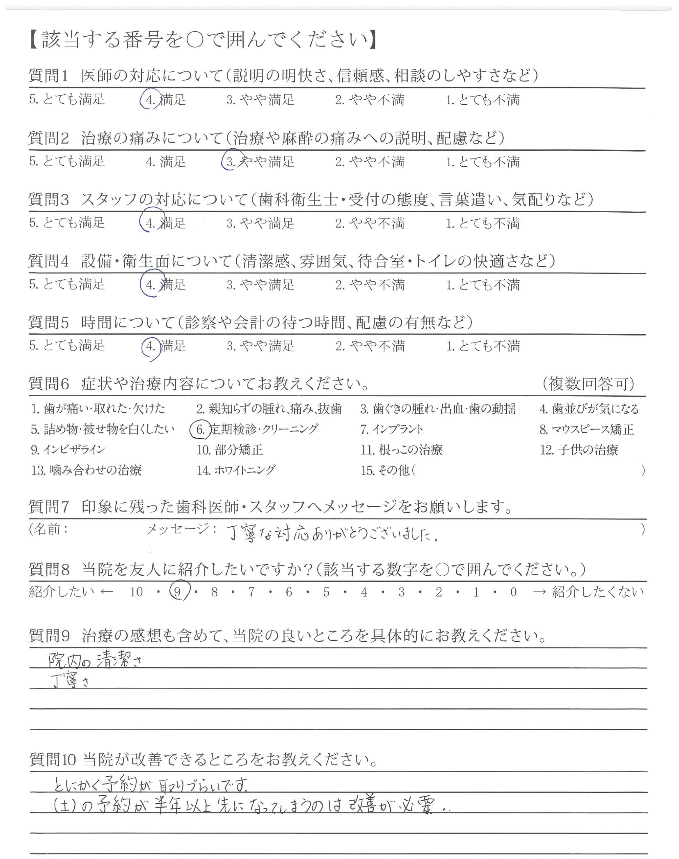 ・予約がだいぶ先になる。(定期検診なのでそこまで不便ではないが。)→最近、近場に歯科院が何店舗かできているので、分散してくれたら...と個人的には思っている...