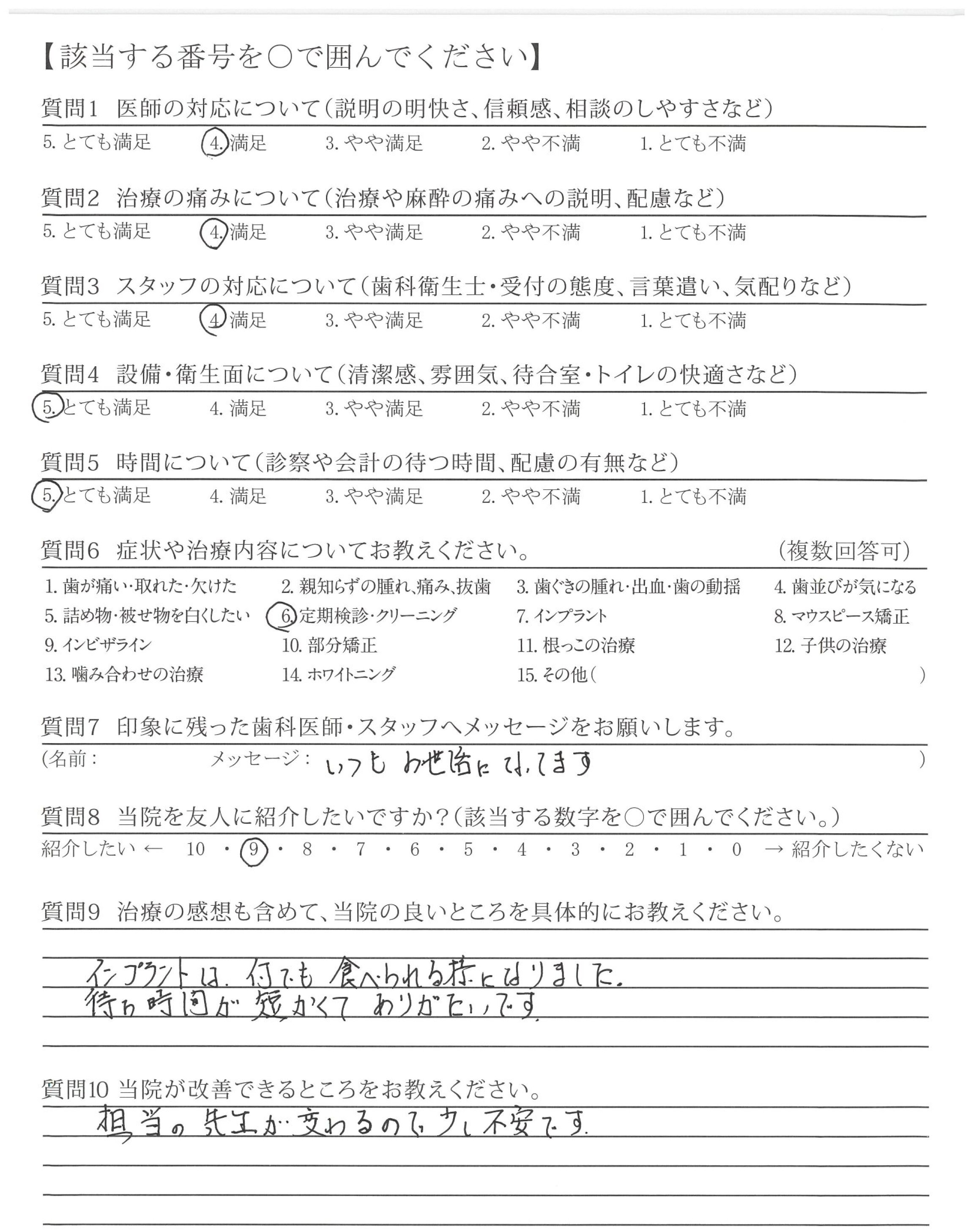 ※医師、歯科衛生士、スタッフの歯科治療に対する意識がとても高く、初めて長年通い続けたいと思えた歯医者です。これからも良い治療をして下さることを期待しています。