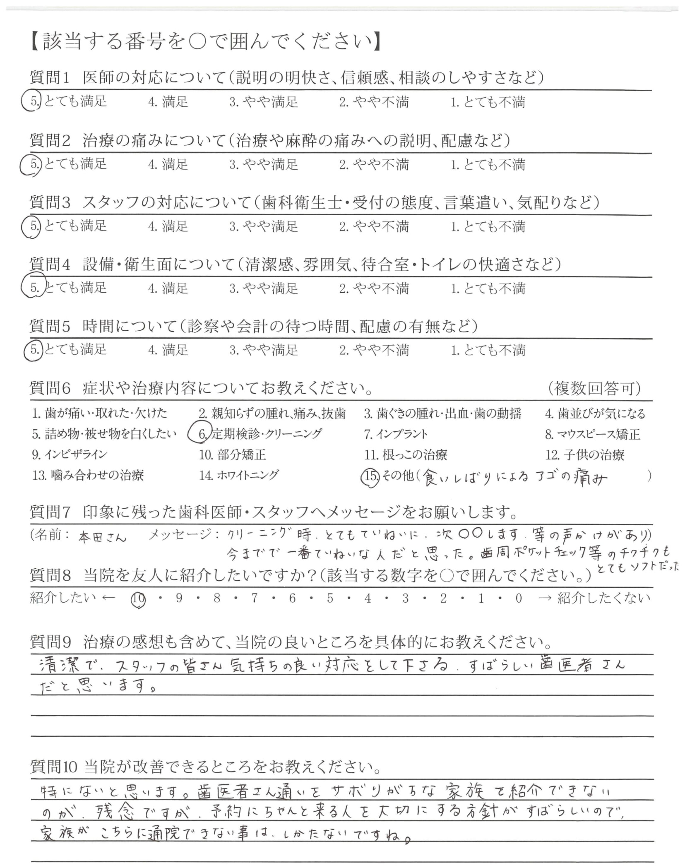 ・急に痛くなった時、電話で相談させていただくと、何とか時間を作って下さり、何度も助けていただきました。