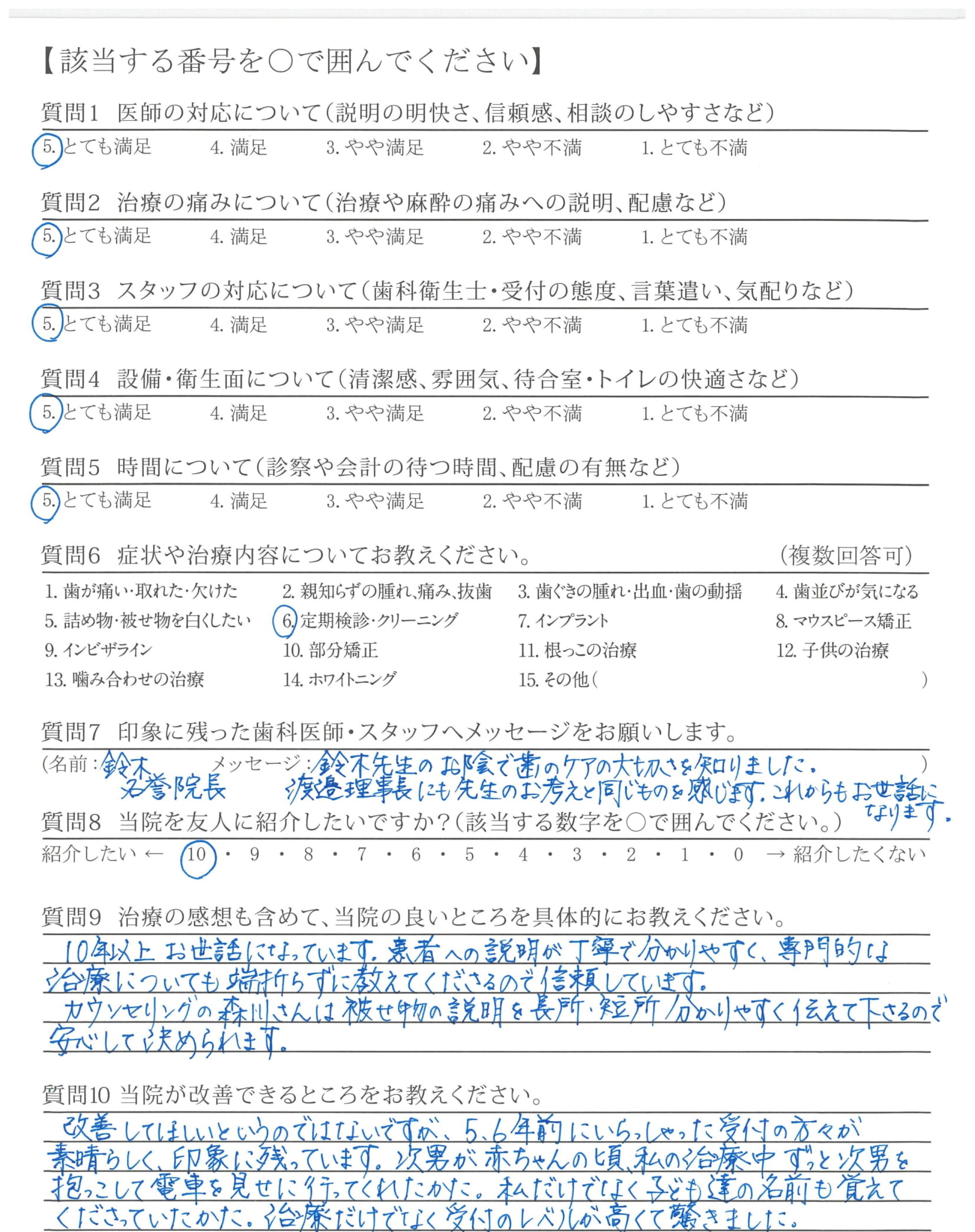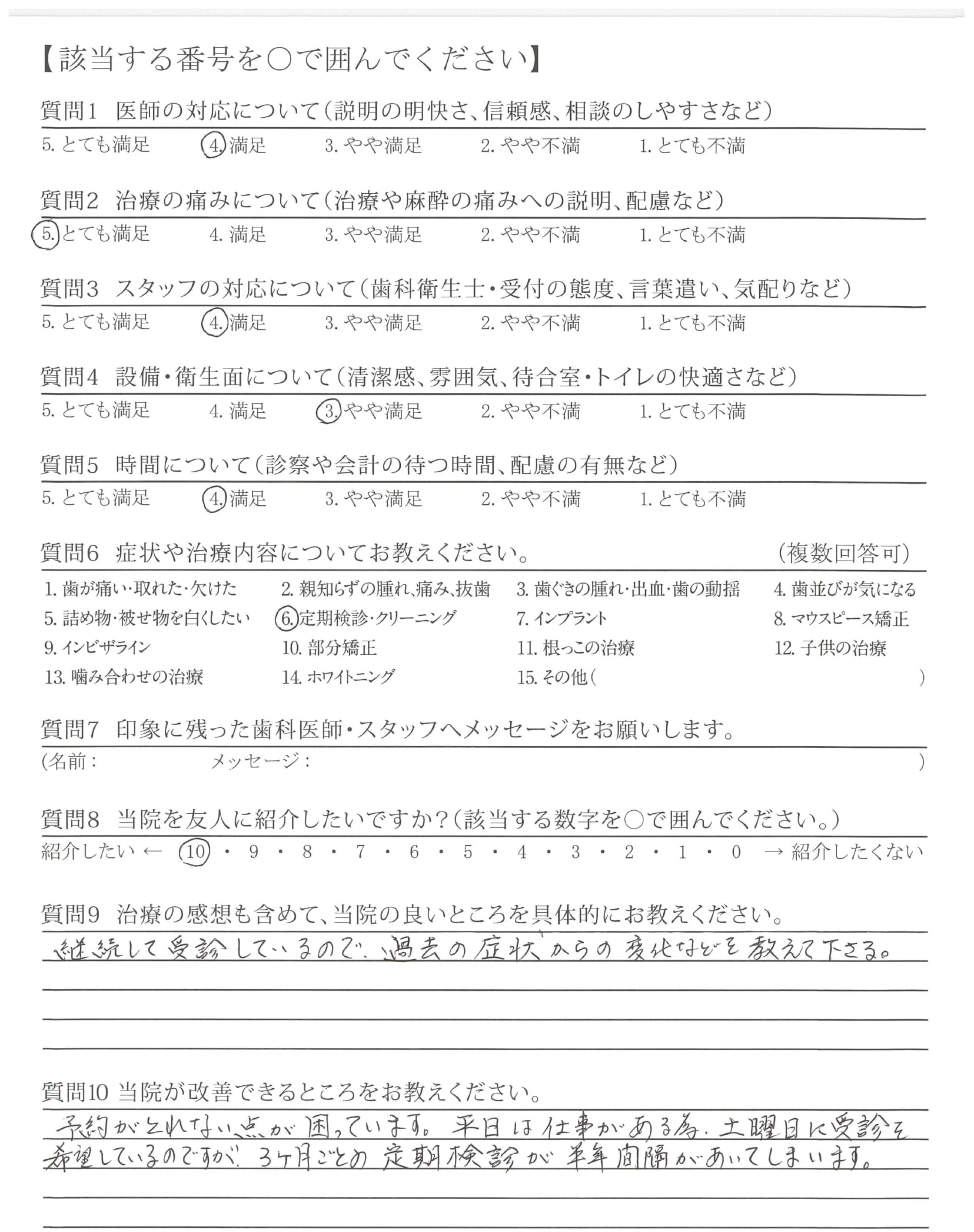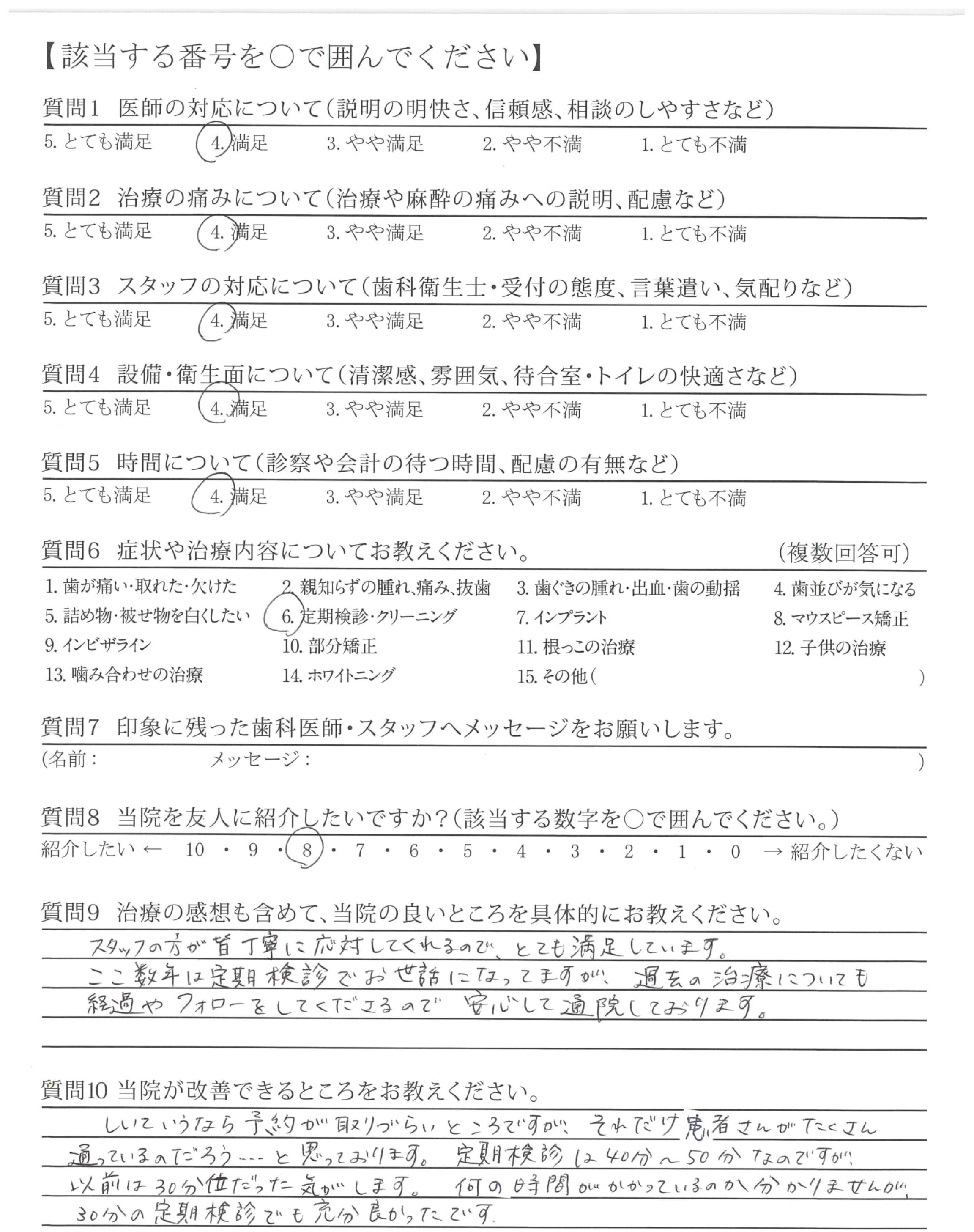 ここ数年は定期検診でお世話になっていますが、過去の治療についても経過やフォローをしてくださるので安心して通院しております。