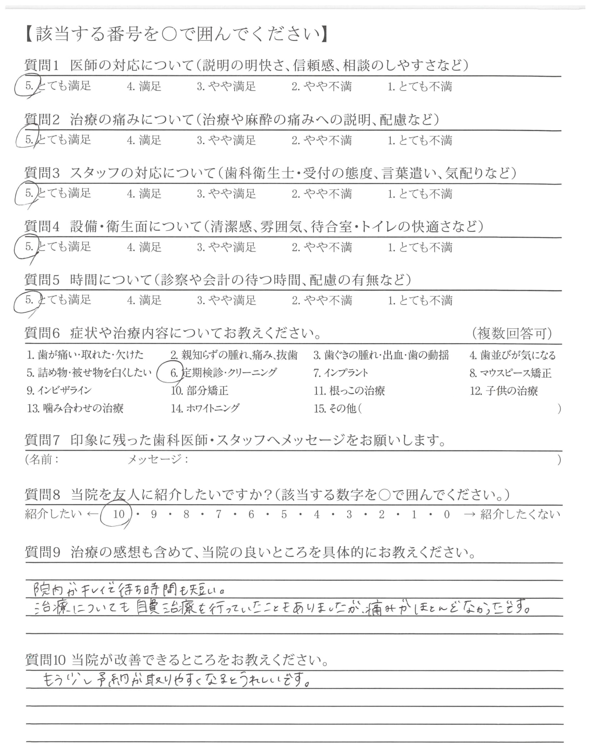 処置も丁寧で、質問にもきちんと答えて下さりとてもよかったです。