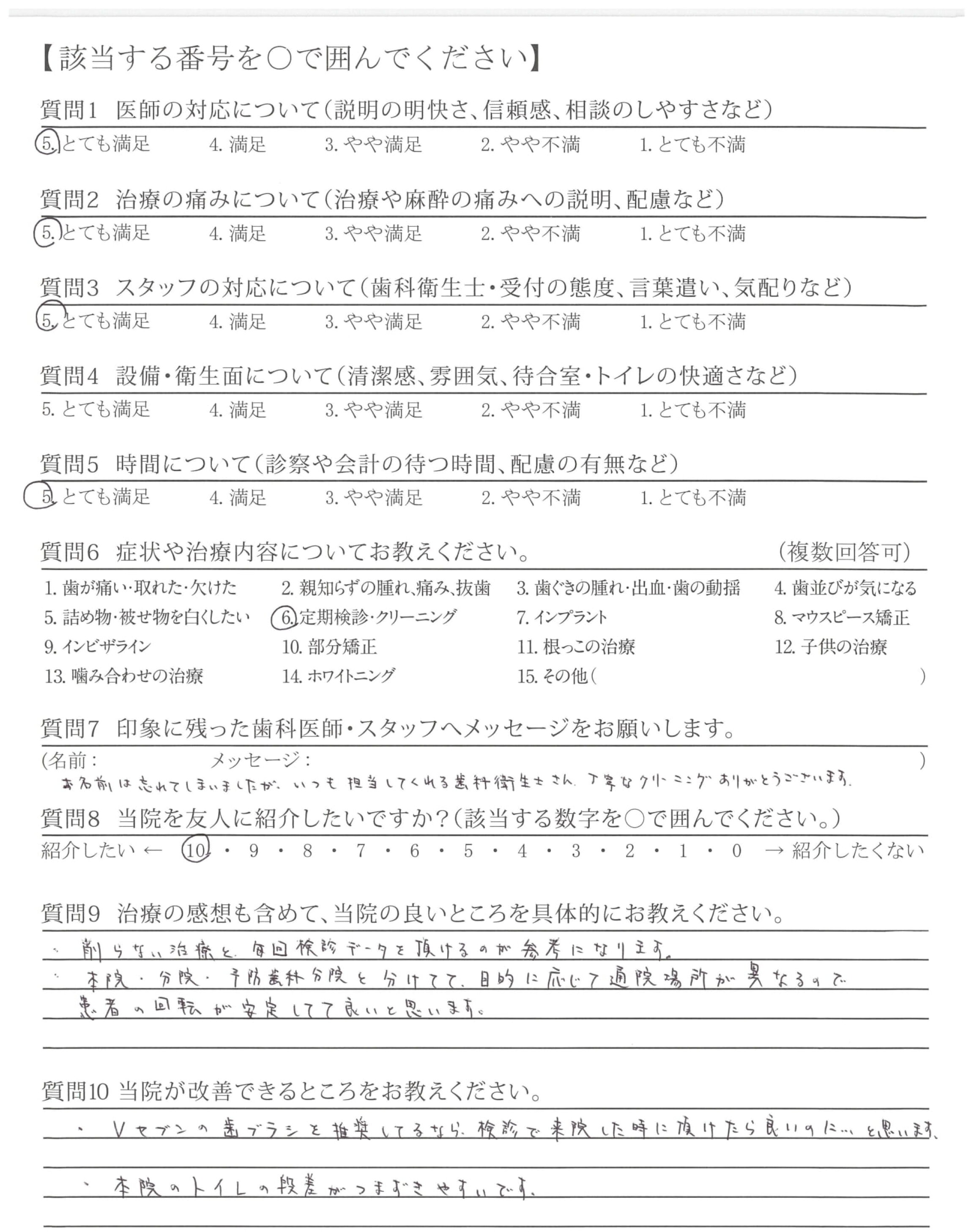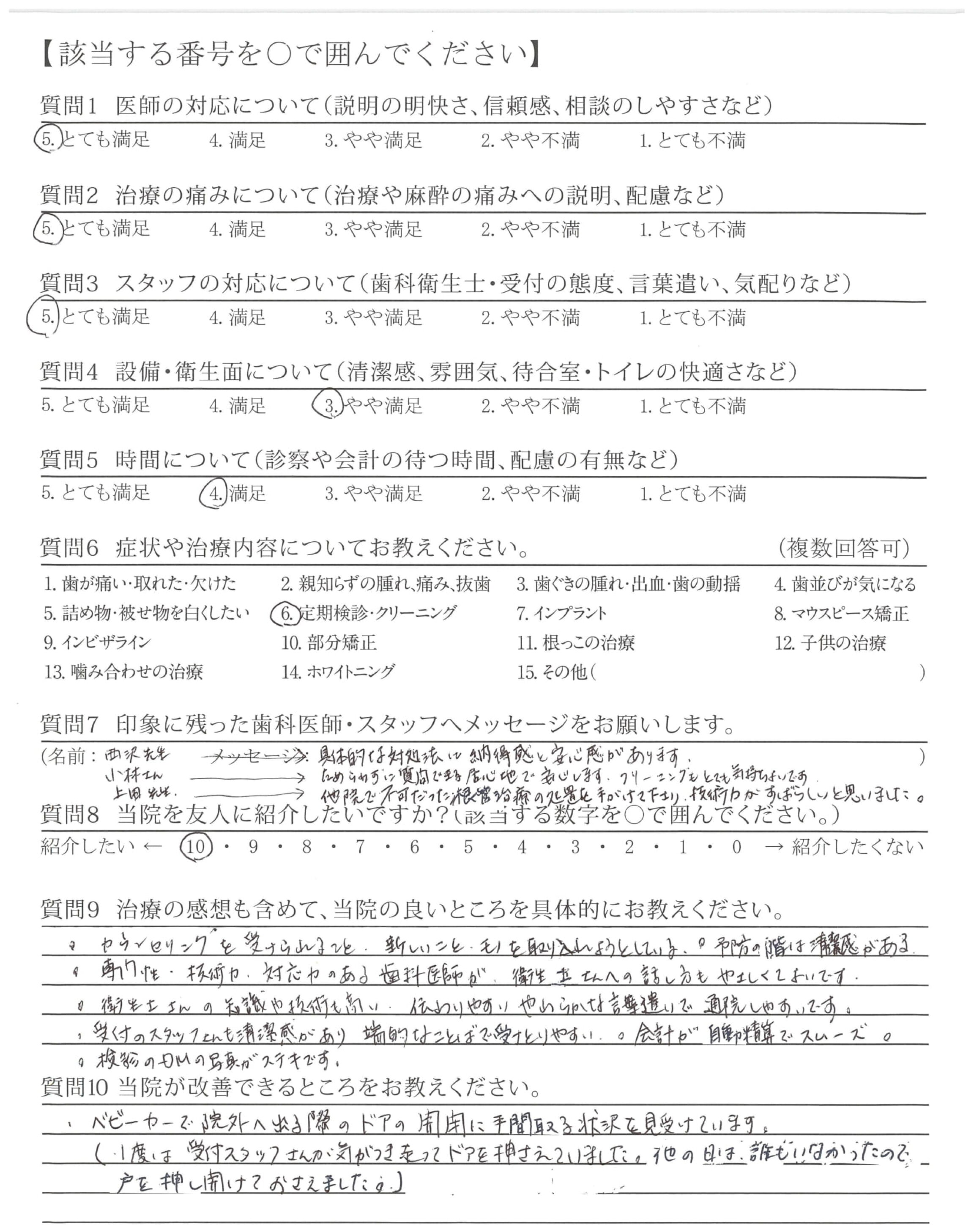 ためらわずに質問できる居心地で安心します。クリーニングもとても気持ちよいです。