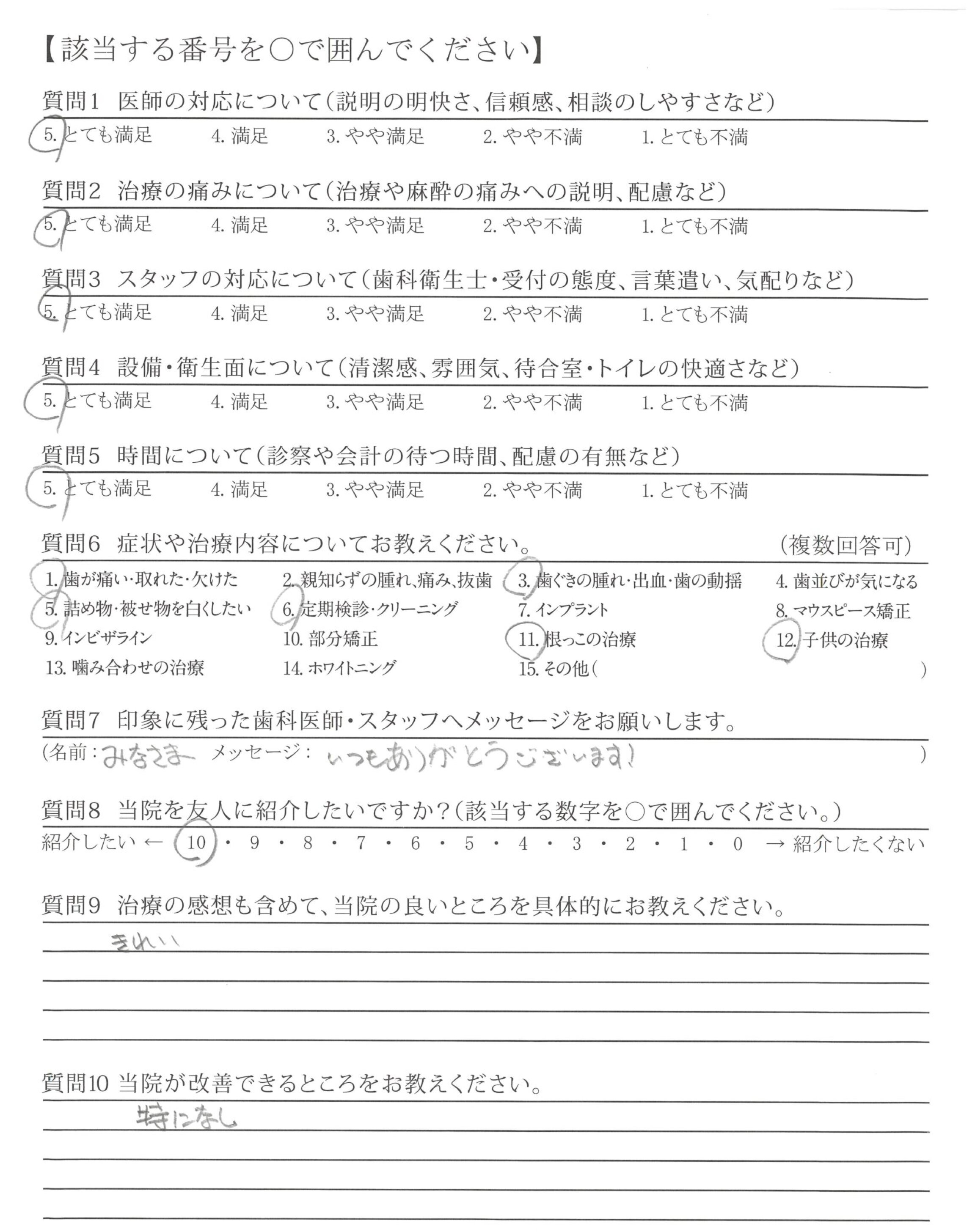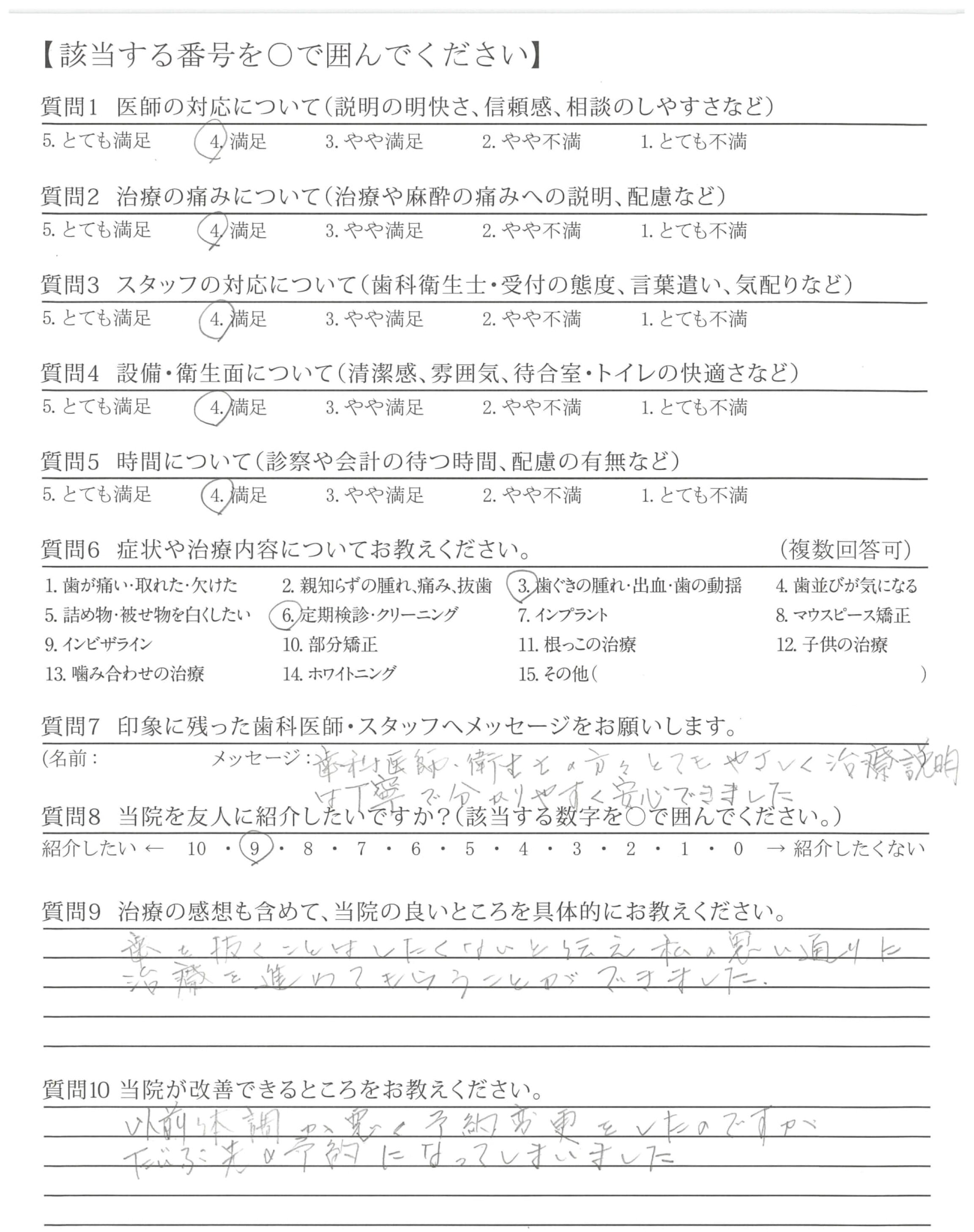 定期検診に通っていますが現状をレポートにしていただけるのはとてもありがたいです。他院ではないサービスだと思います。