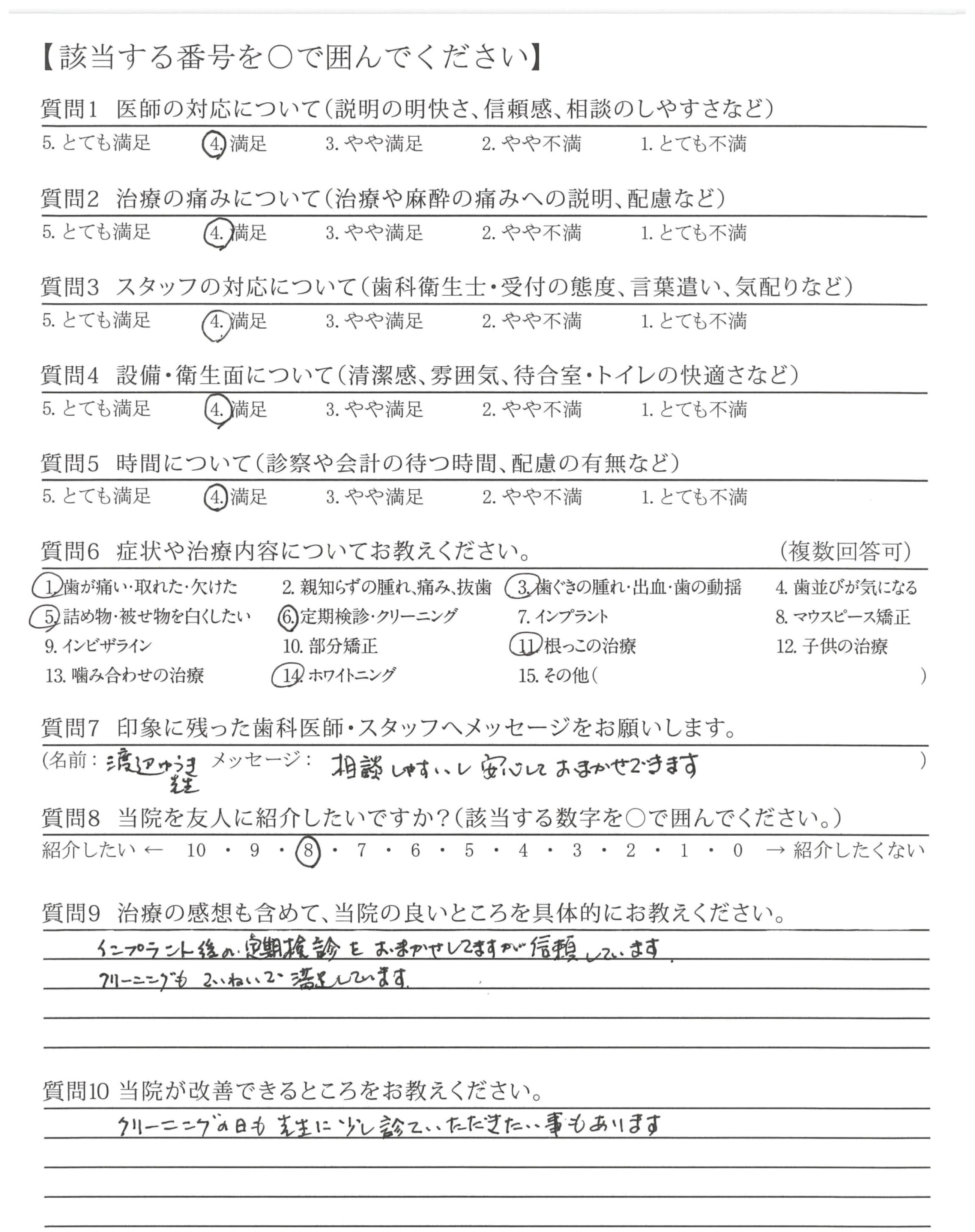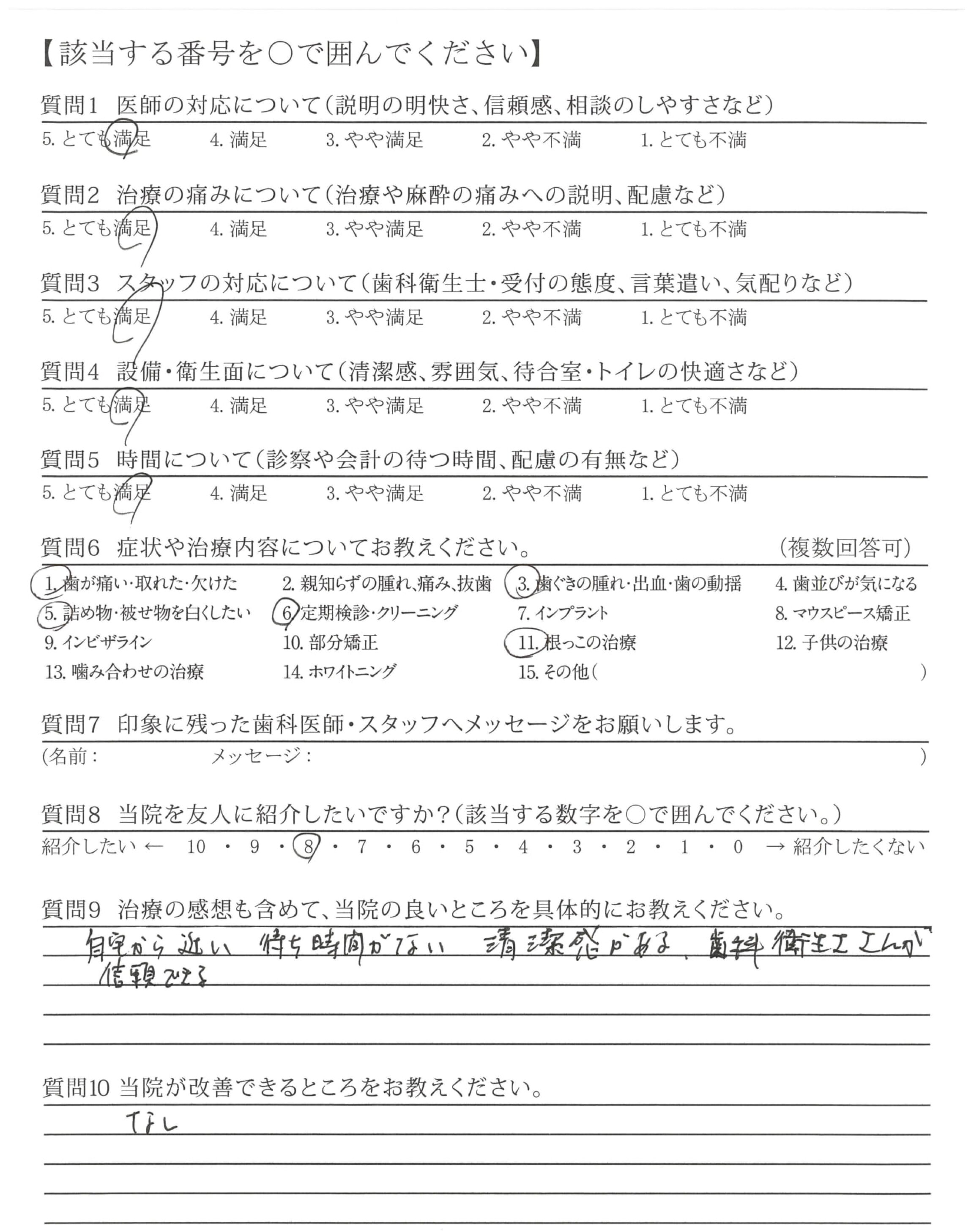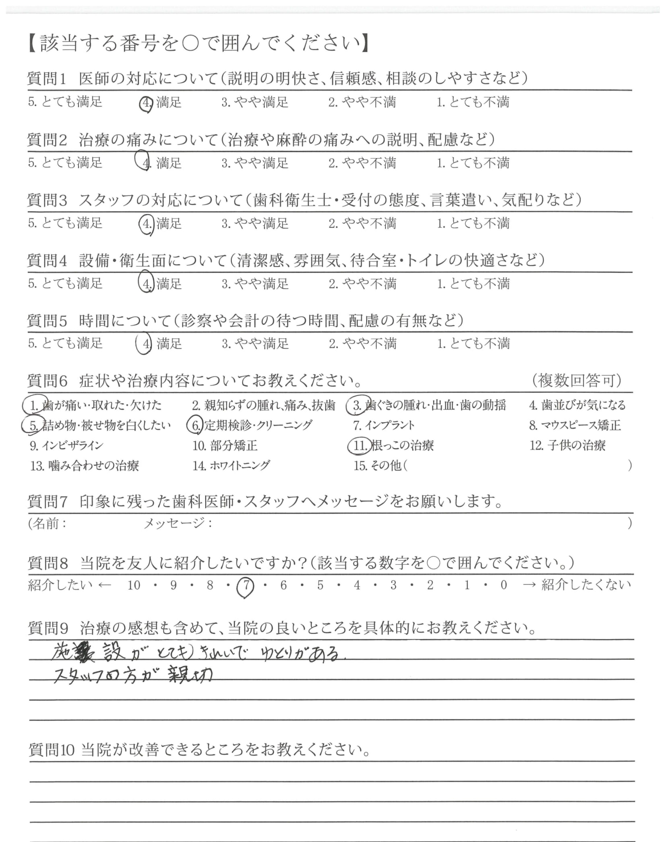・細かいですが、定期検診の診察の所の口をすすぐ水の温度をもうすこしあたたかくしていただけるとありがたいです。