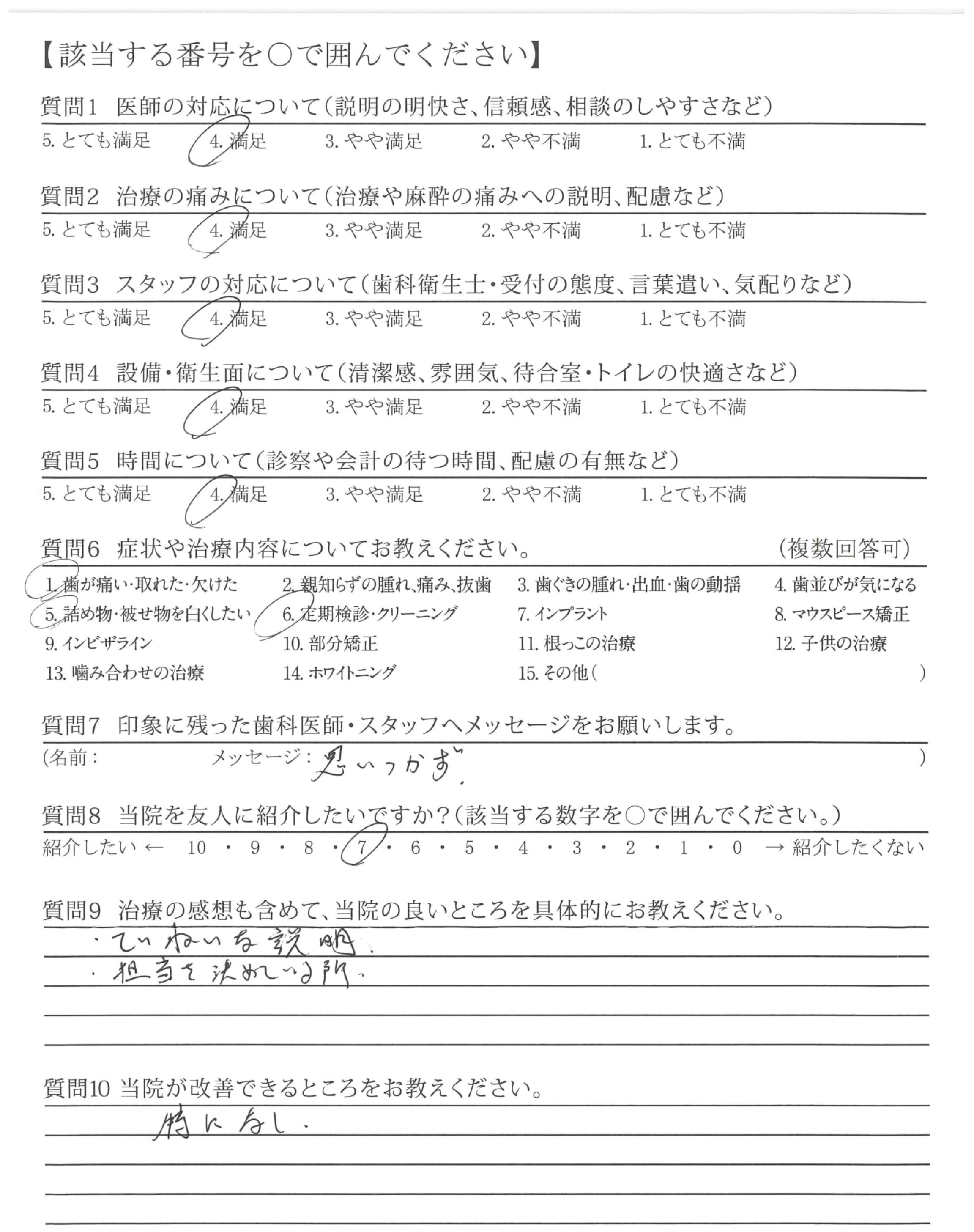 痛みのない治療で、いつも丁寧に説明していただき信頼していました。
