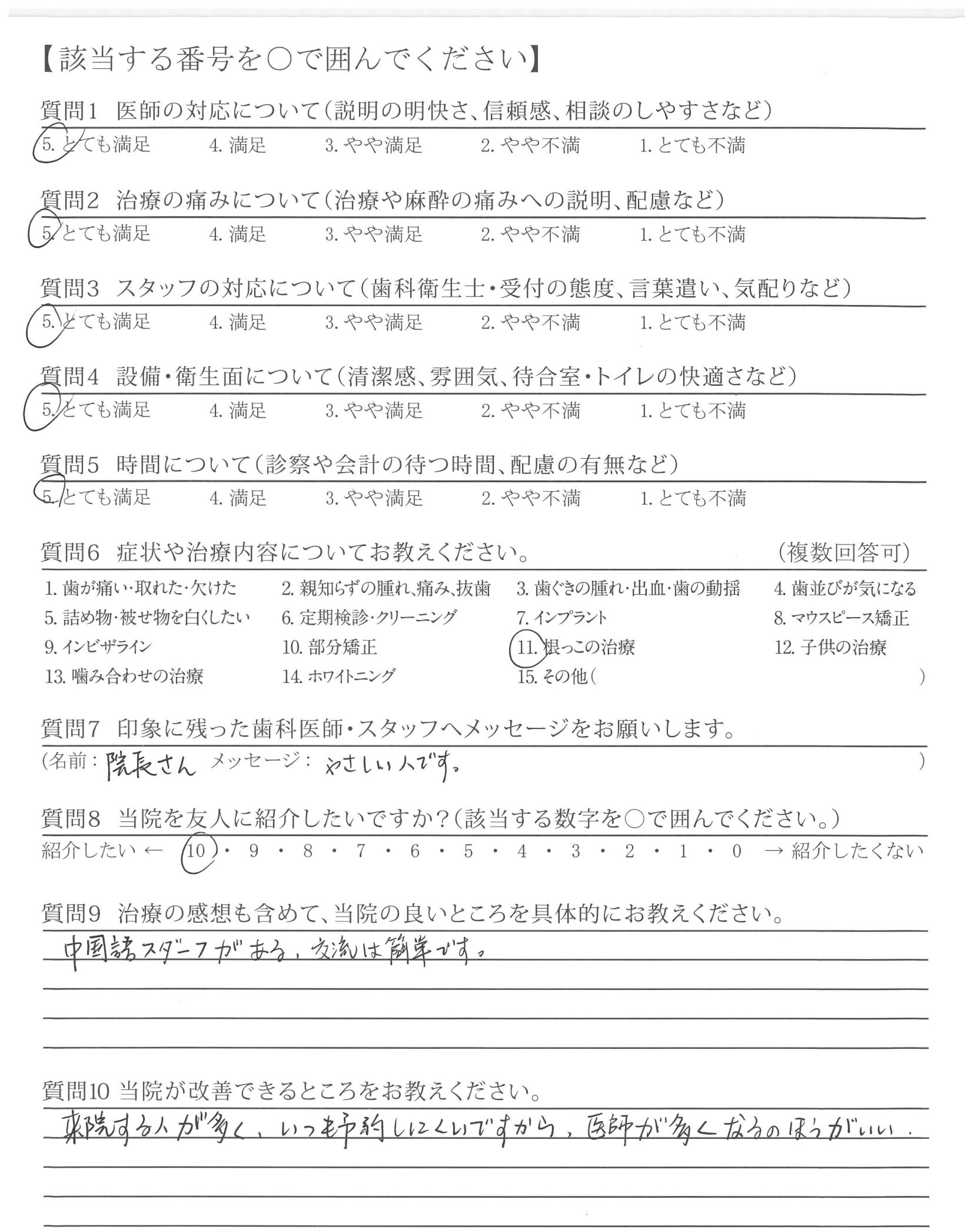 先生は大変安心できました。ここに来て良かったです。