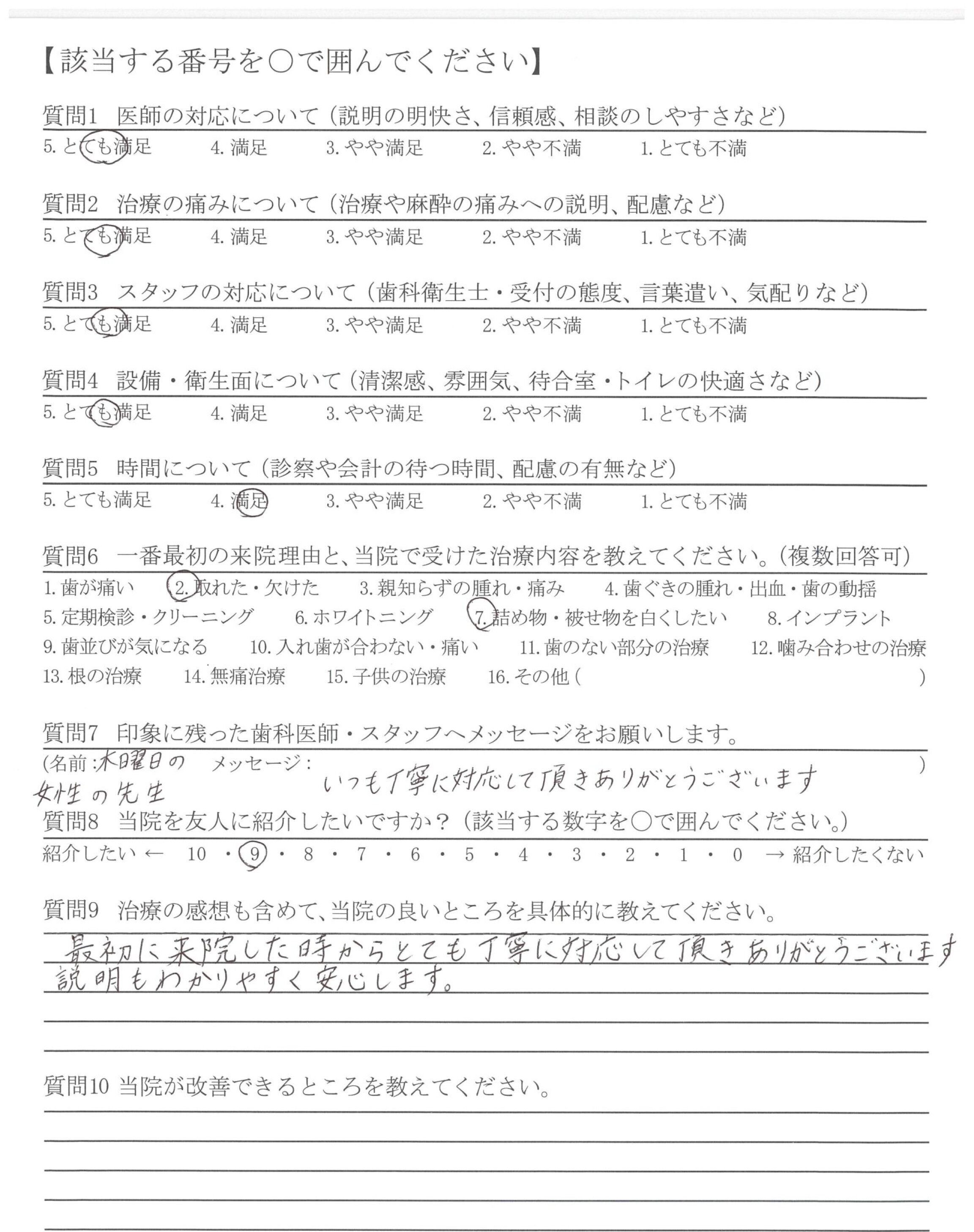私の歯、及び歯グキのめんどくさい所ですのに、やさしく治療を何時も有難く思っております。