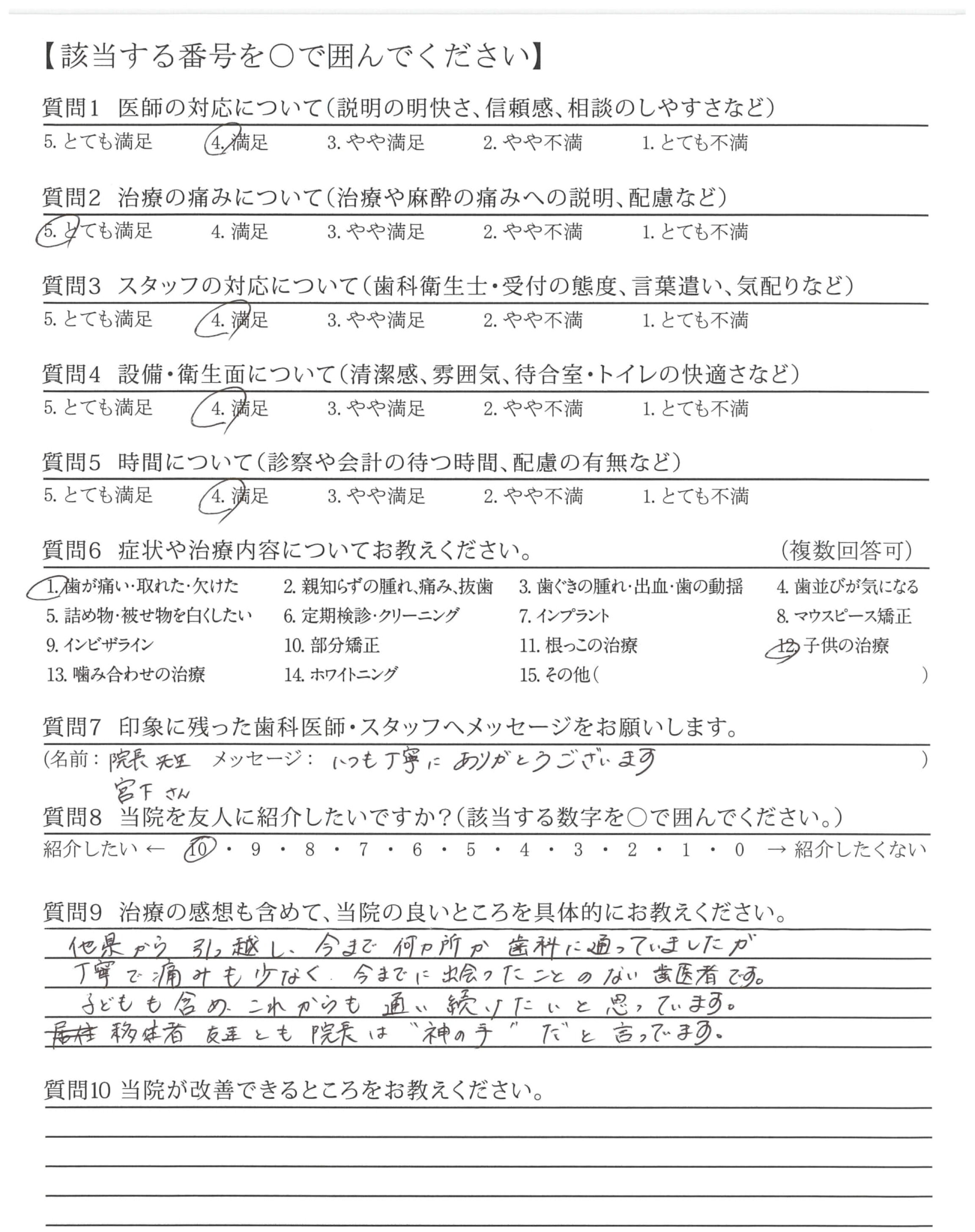 他県から引っ越し、今まで何ヵ所か歯科に通っていましたが丁寧で痛みも少なく、今までに出会ったことのない歯医者です。