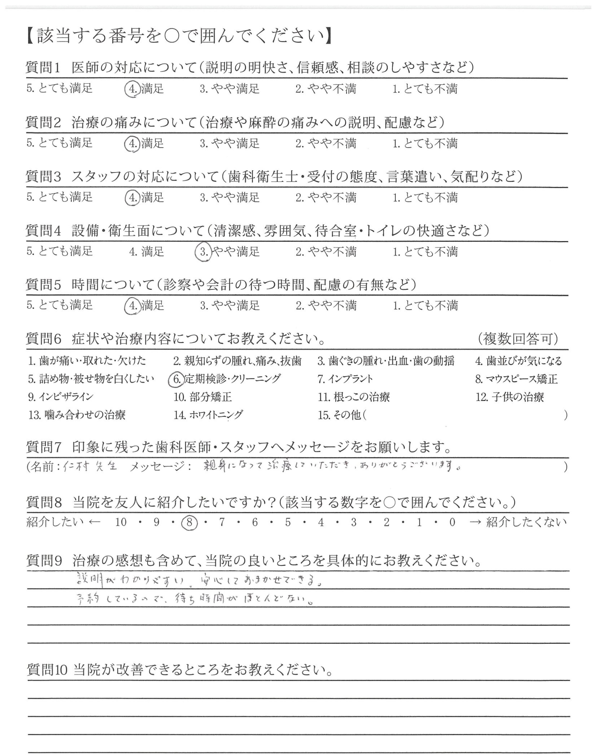 | 歯科医師の対応 | ![]() ![]() ![]() ![]() 4.49 |