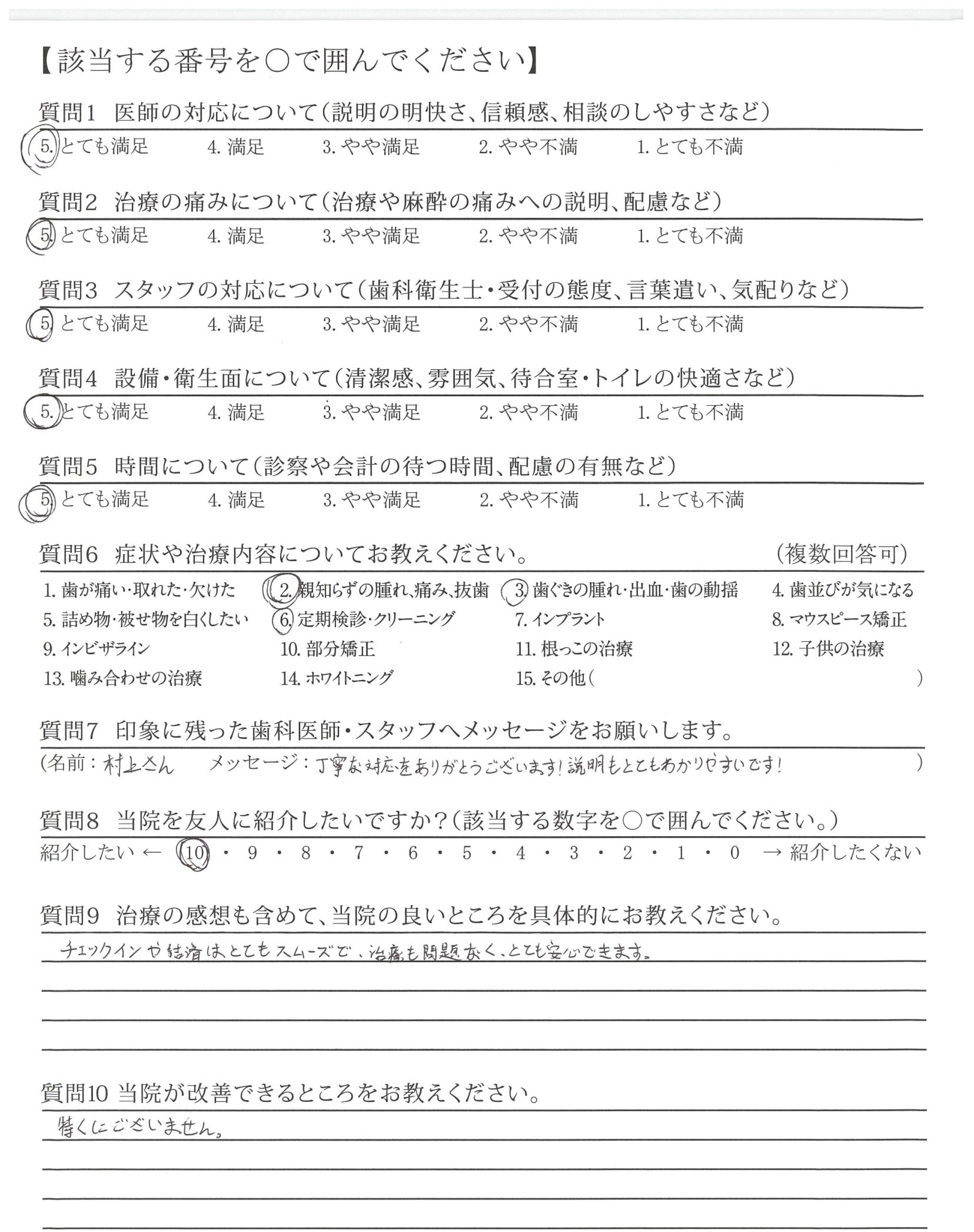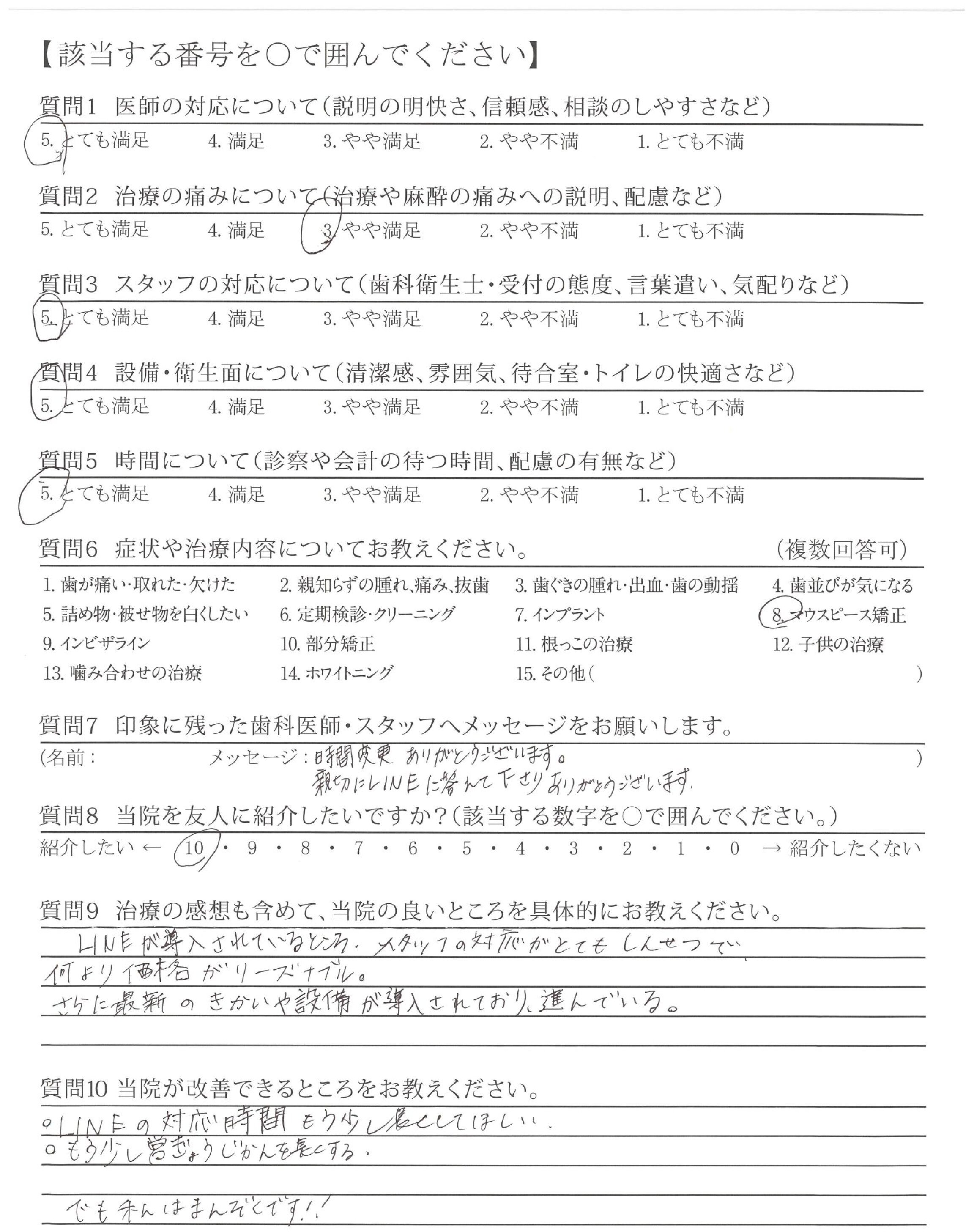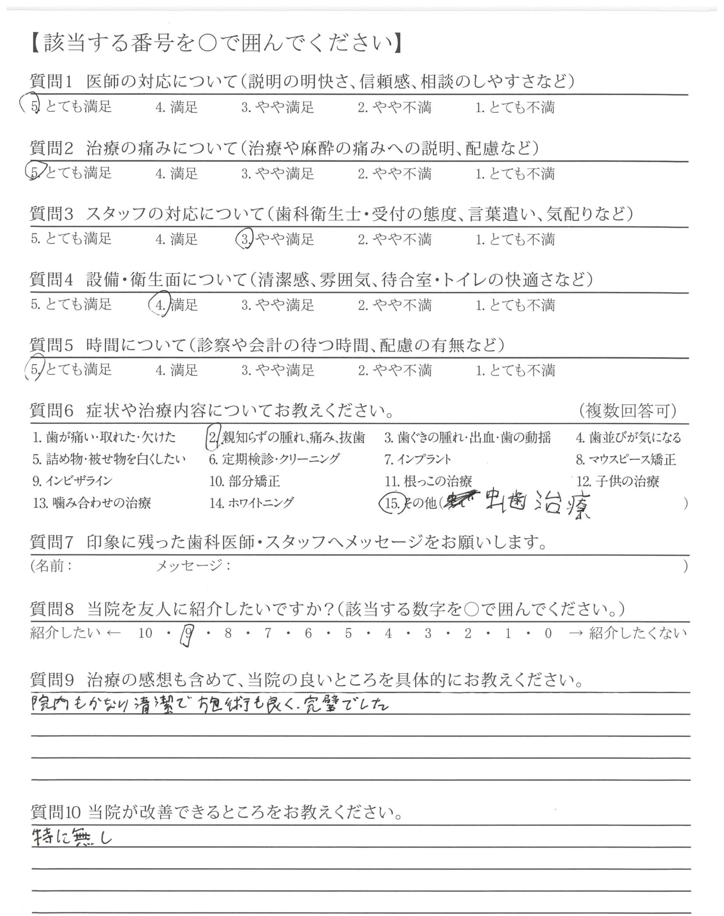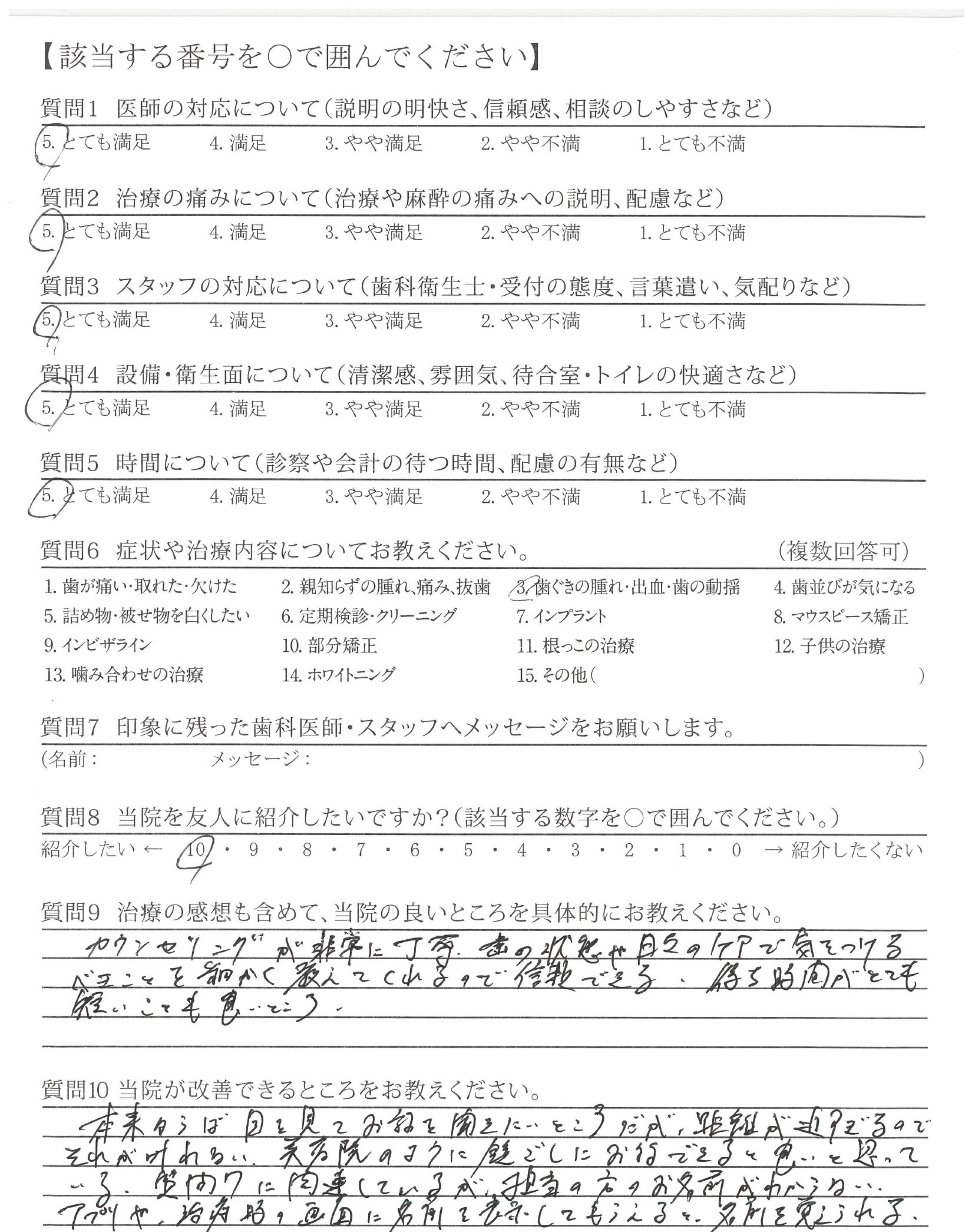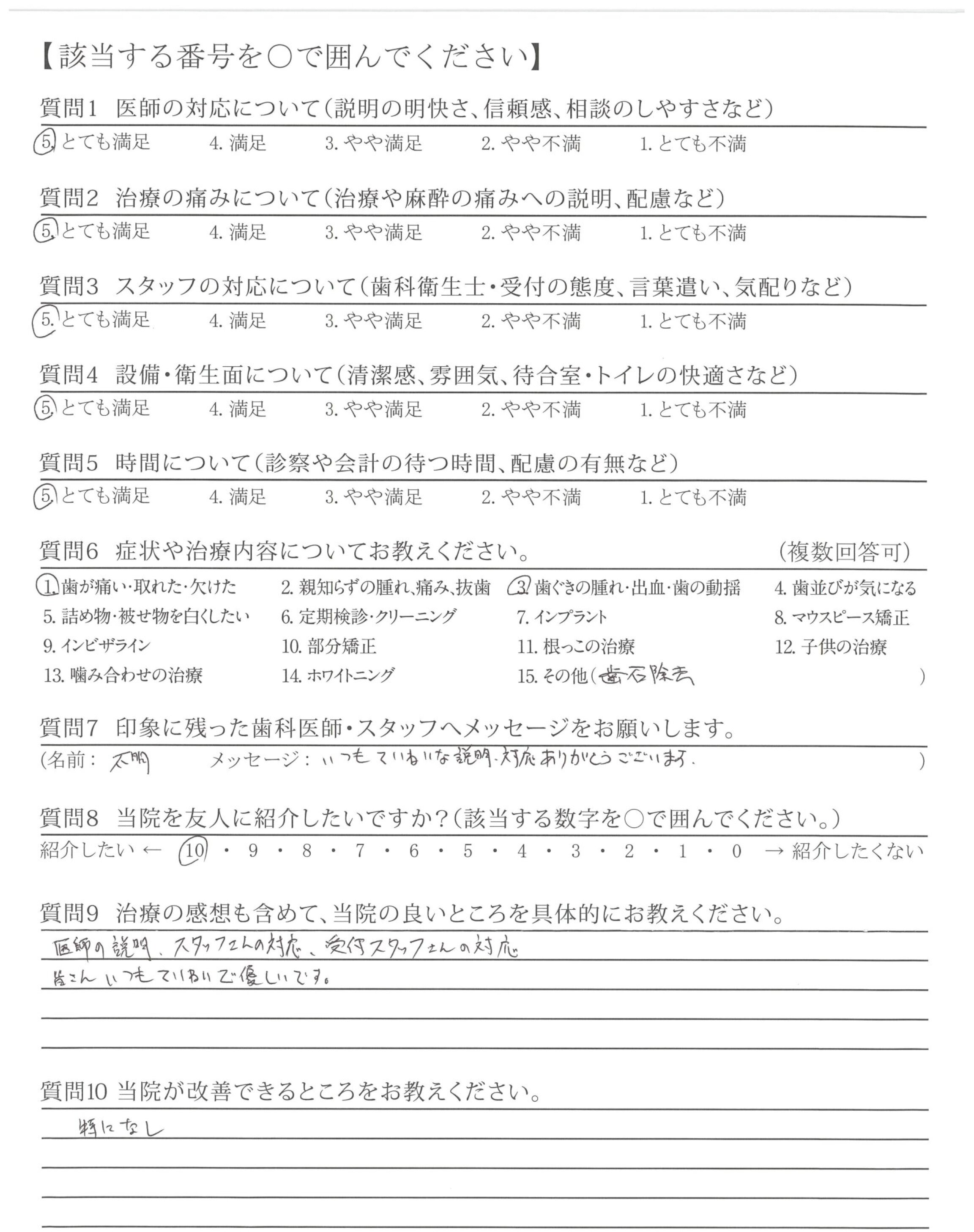 ・治療が的確で説明も的確ですが最後のかみ合わせや高さ、ひっかかりを聞いてほしい。