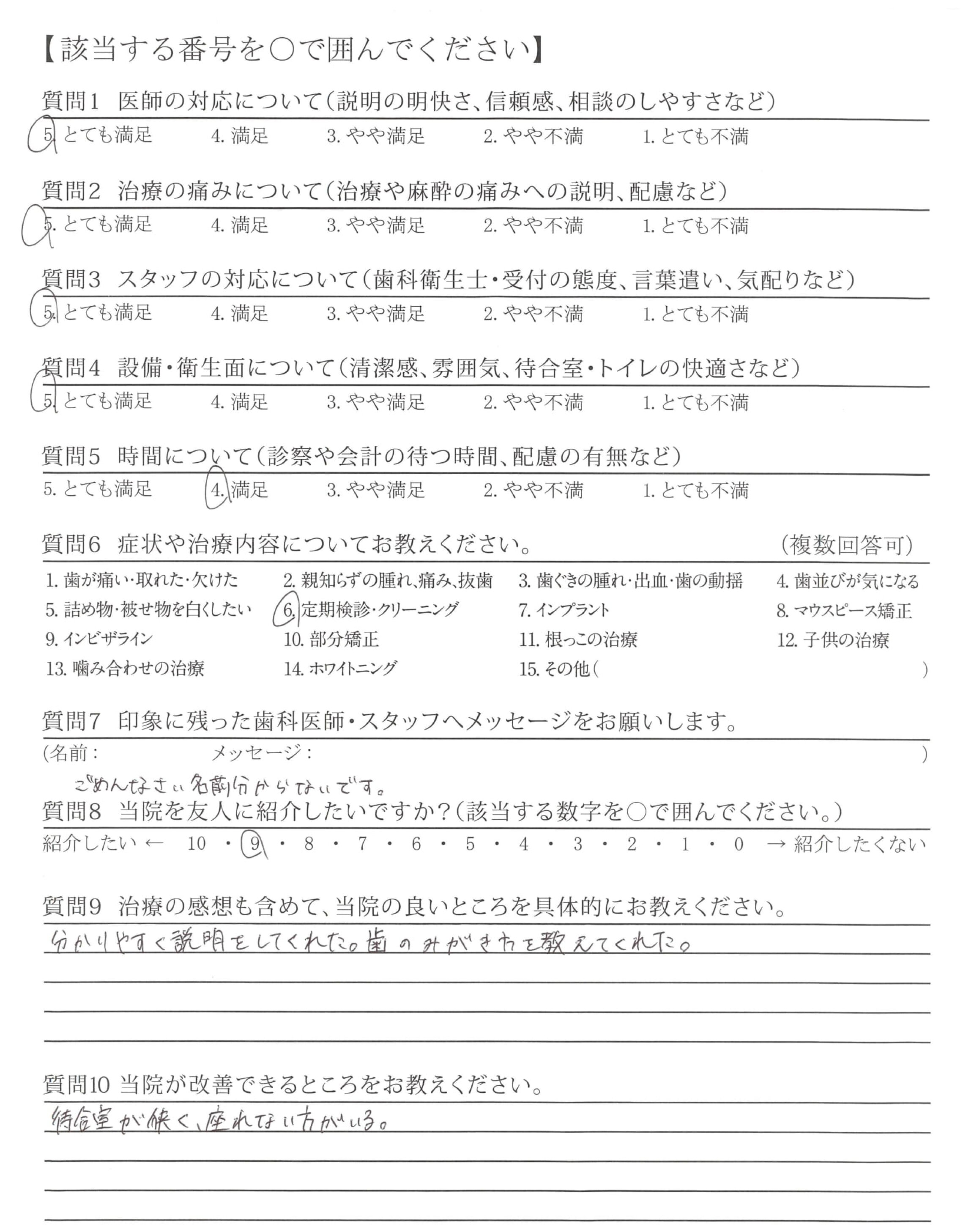 今後、継続治療の際は担当のお名前がレシート等に表記されるとありがたいです。