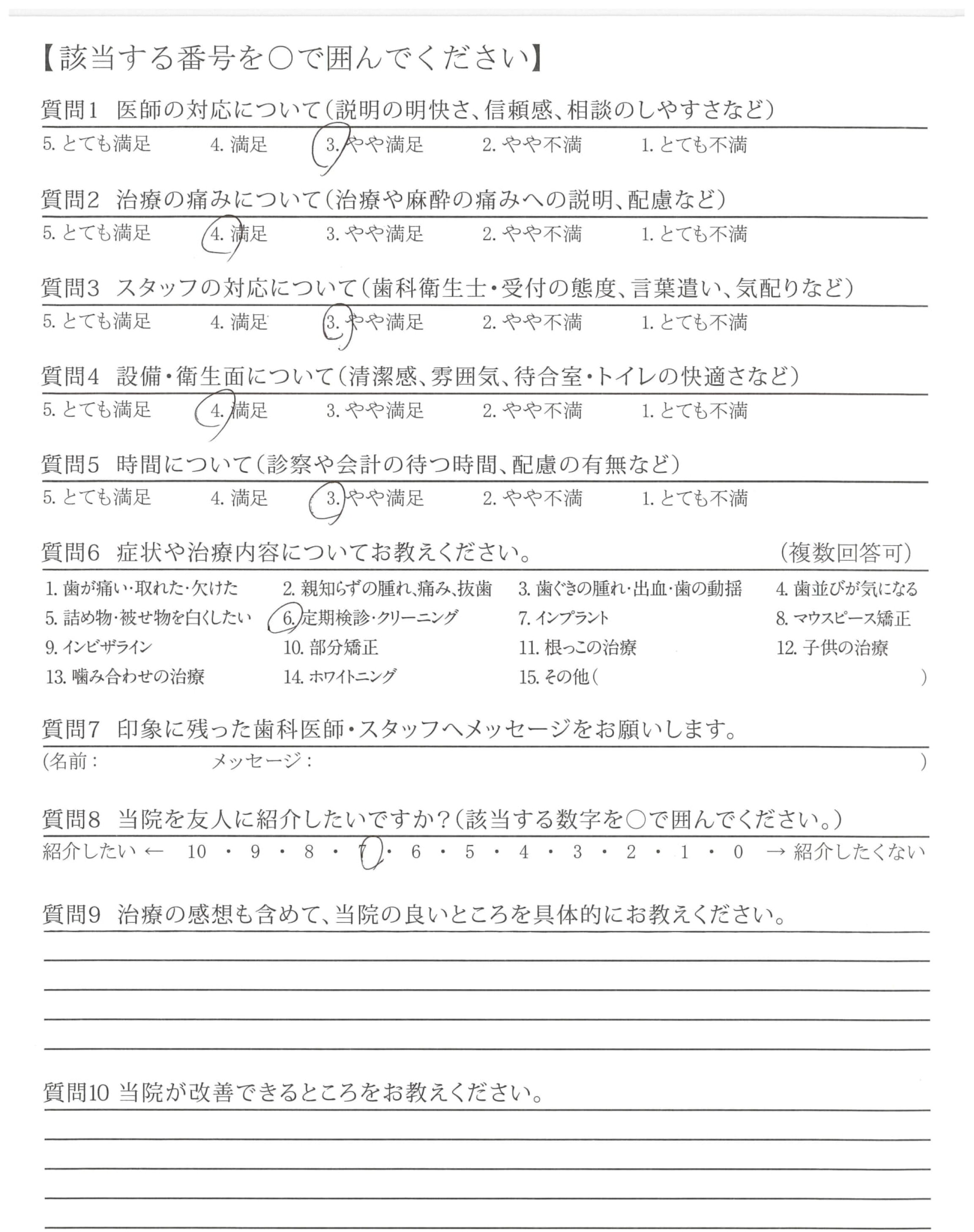 歯科医師の声が小さく聞きとりずらい時が時々あった。