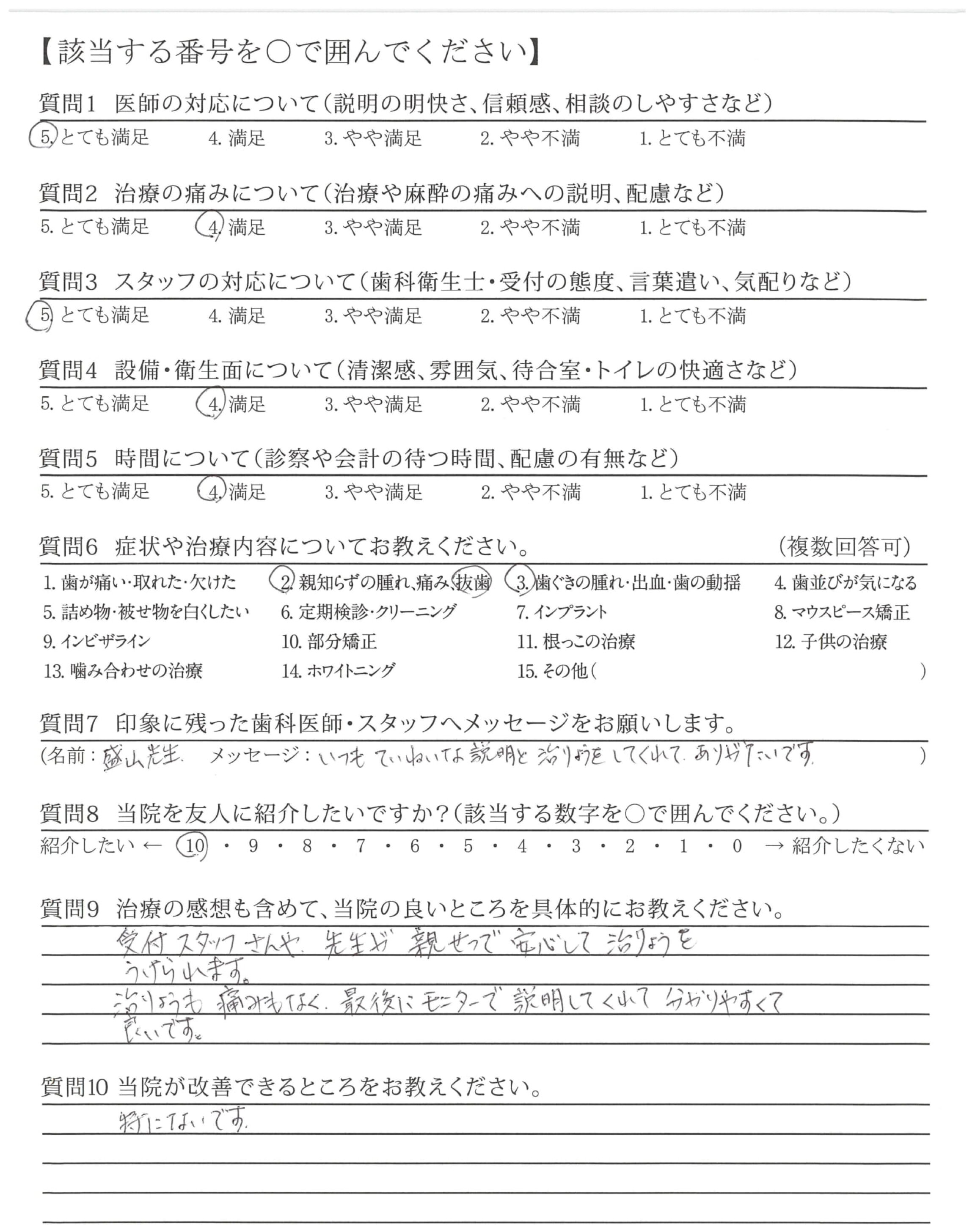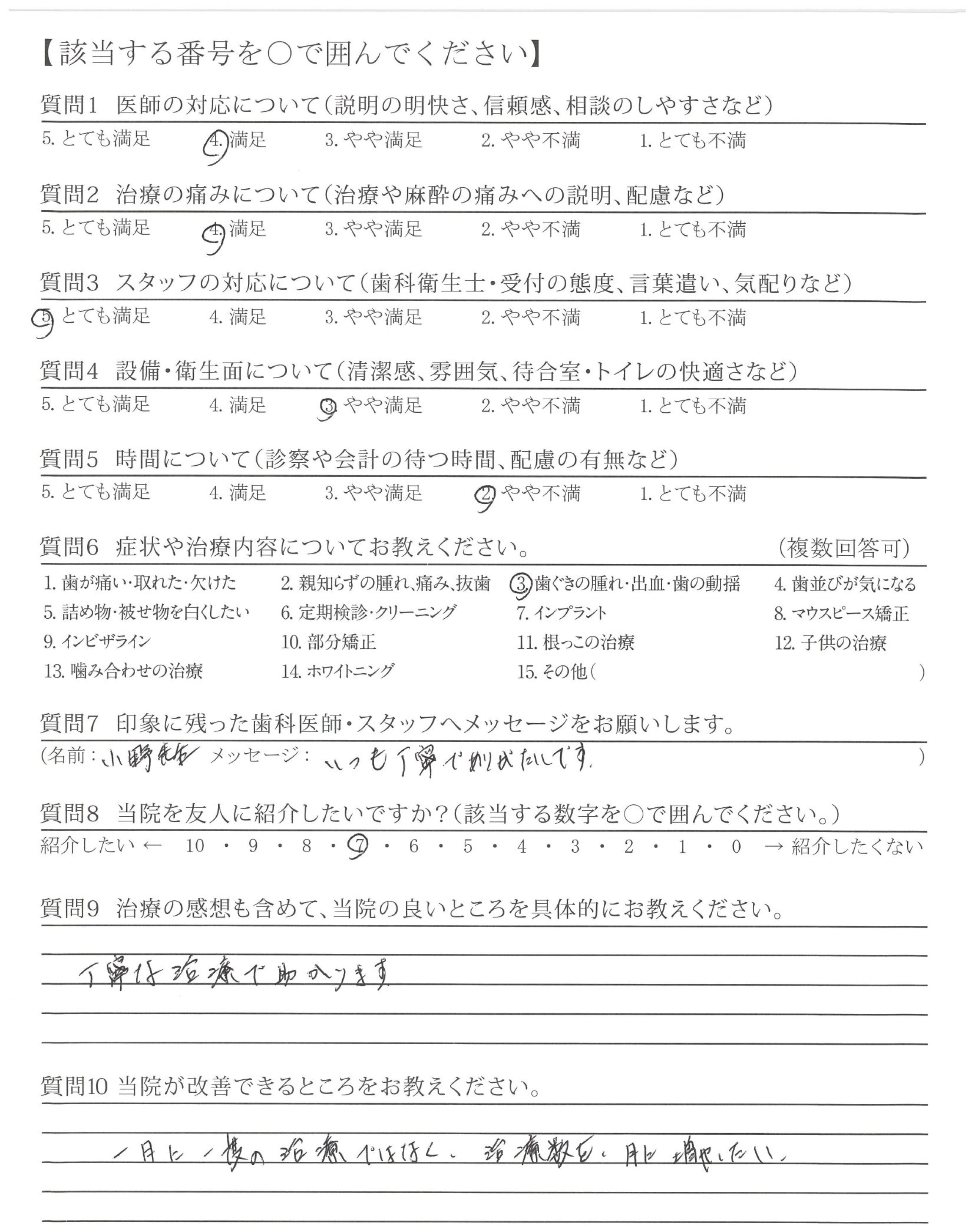 「歯科疾患管理に係る管理計画書継続用」によって口腔内の状況が確認でき、これからの治療を確認でき安心しました。