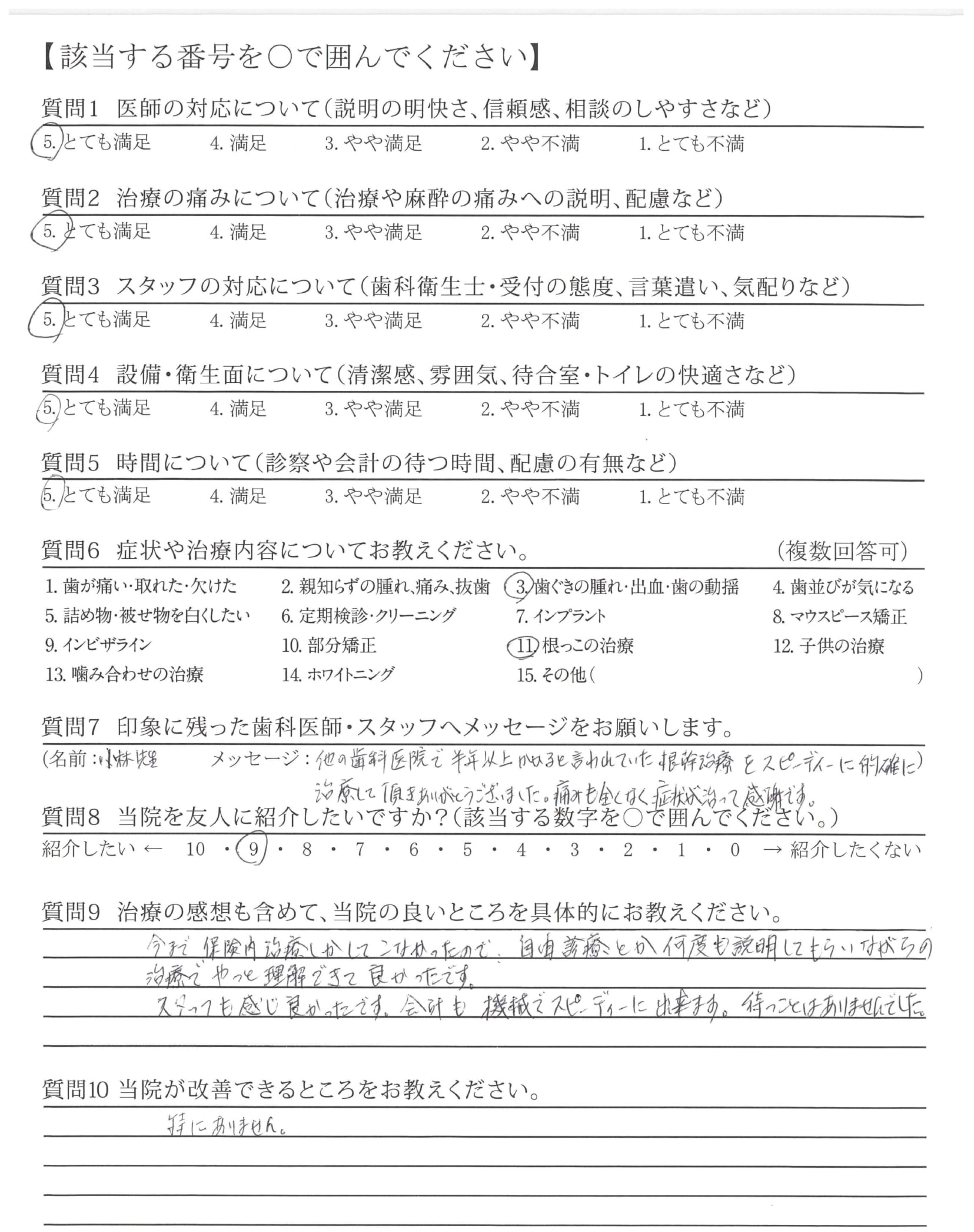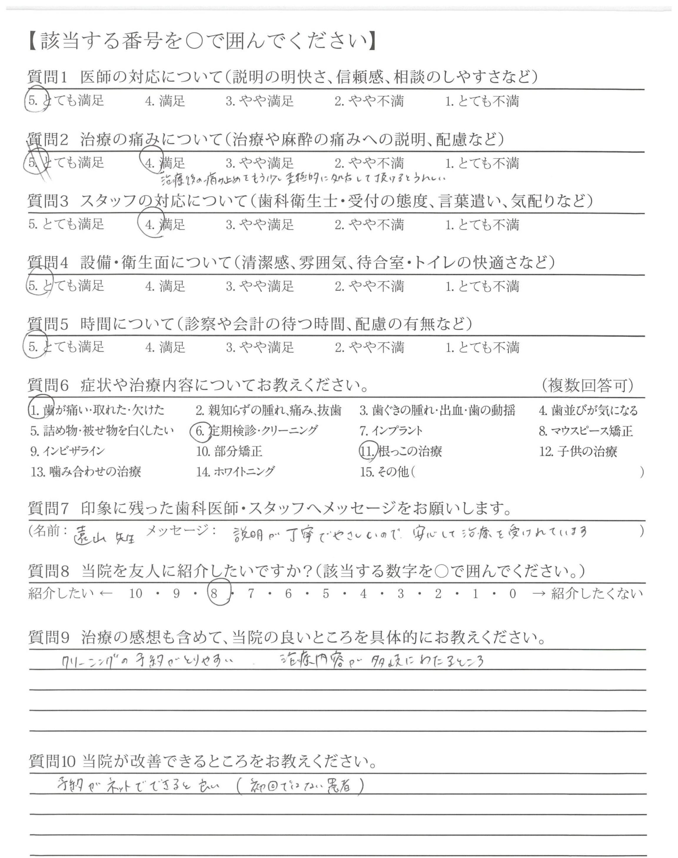 他の歯科医院で半年以上かかると言われていた根幹治療をスピーディーに的確に治療して頂きありがとうございました。痛みも全くなく症状が治って感謝です。