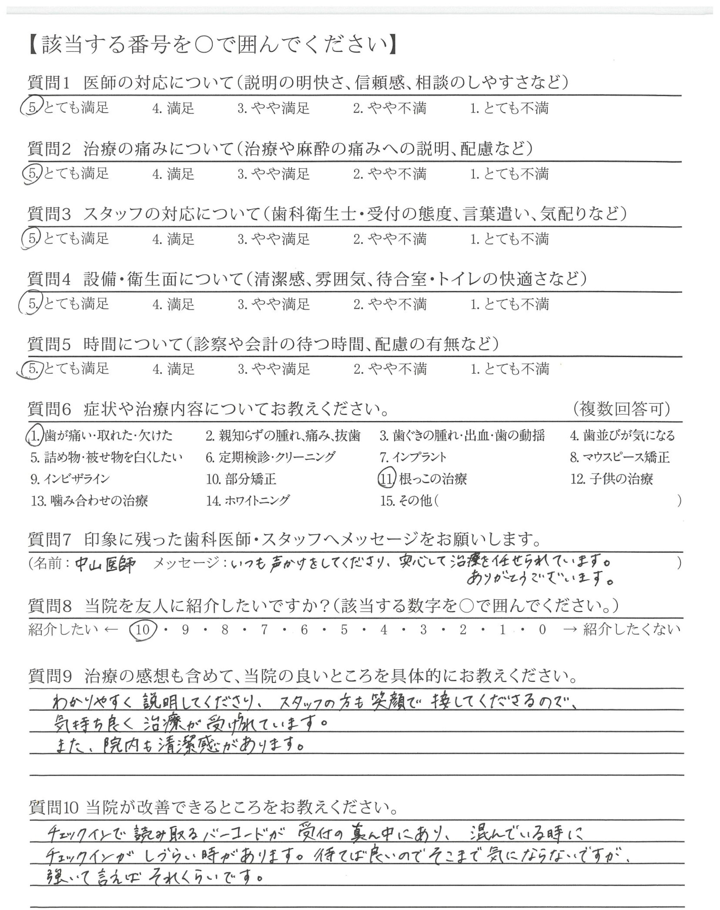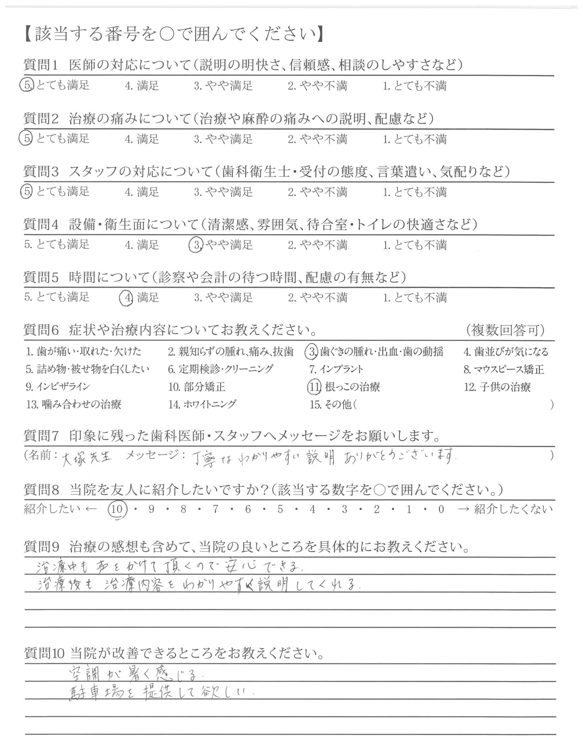 いつも声かけをしてくださり、安心して治療を任せられています。ありがとうございます。