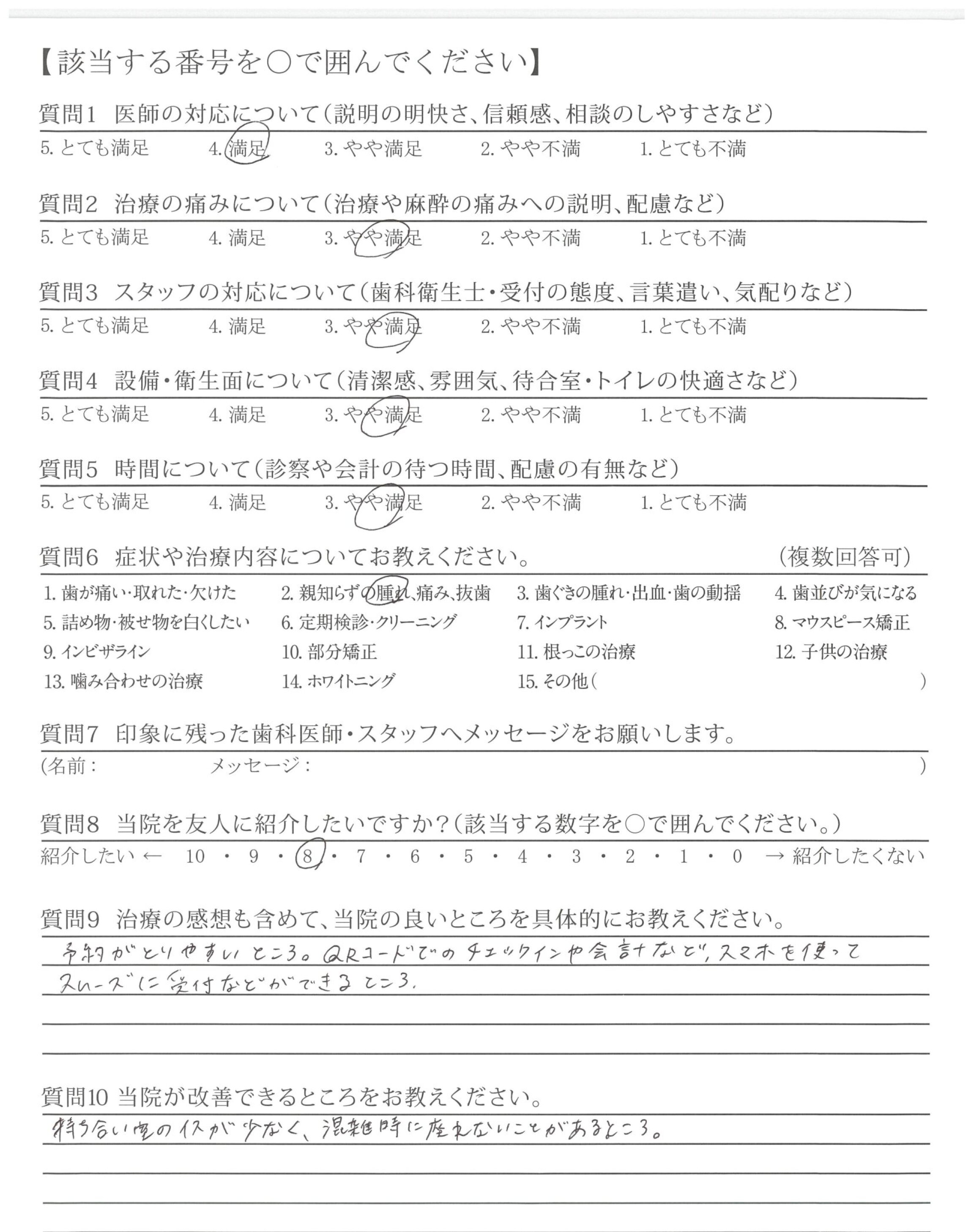 いつも丁寧な治療ありがとうございます。麻酔が一番、嫌いな私が頑張れたのは先生のおかげです