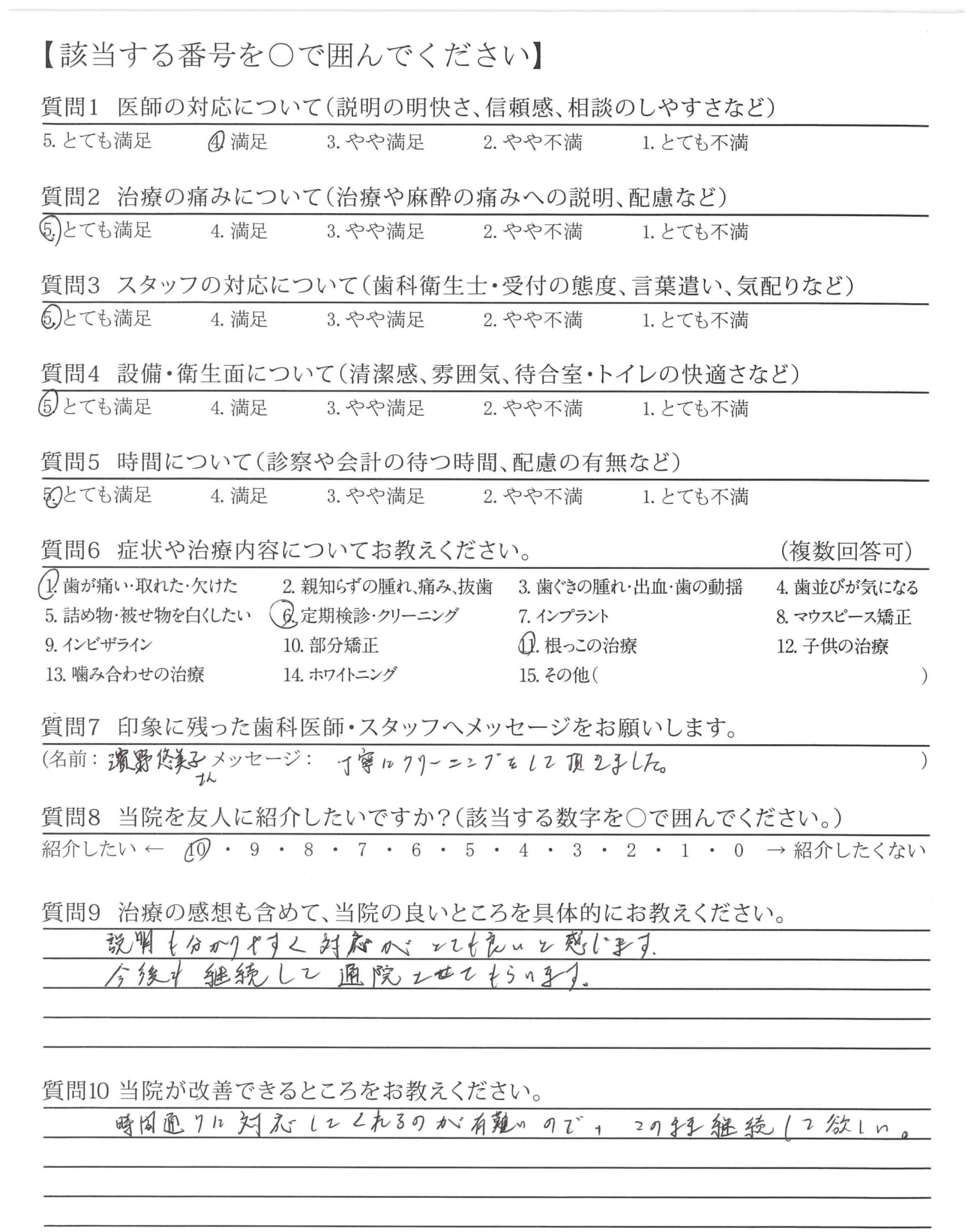 いつもご説明が丁寧で、安心して通わせていただいています。思い切って通い慣れた所から変えて良かったです。