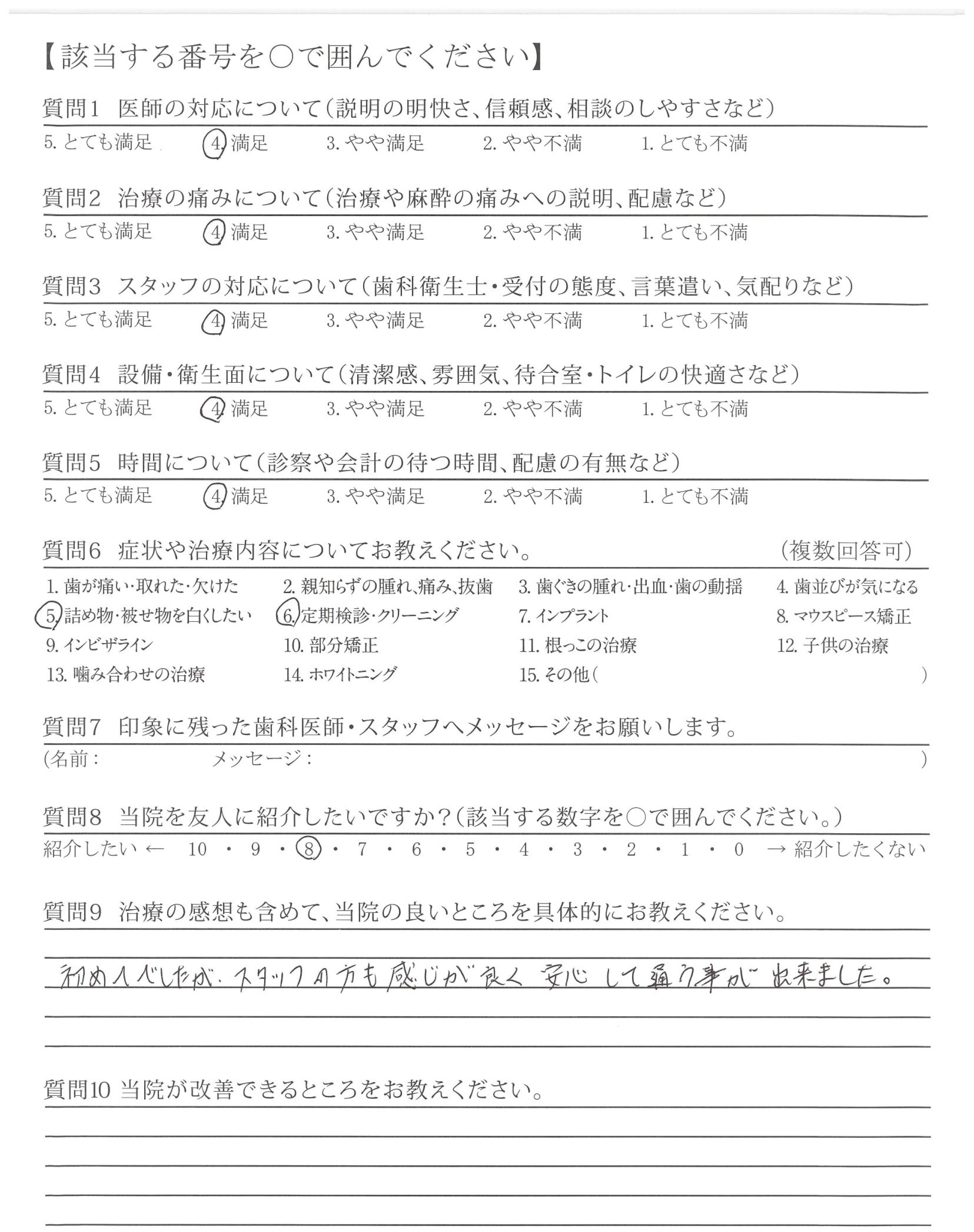 治療も痛みはなく今までの歯医者さんのイメージがすごく変わった感じがして、ここなら定期的な検診も受けても良いかと思いました。