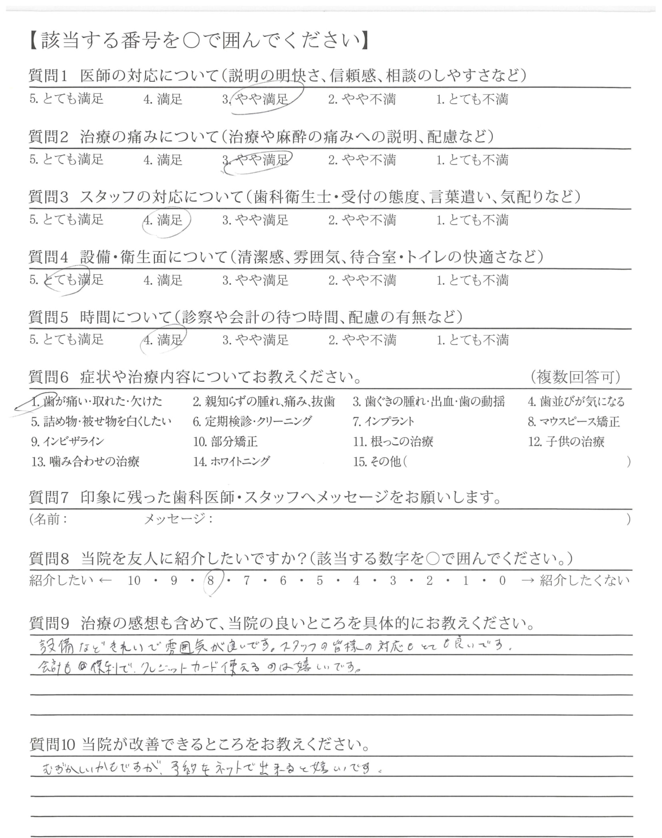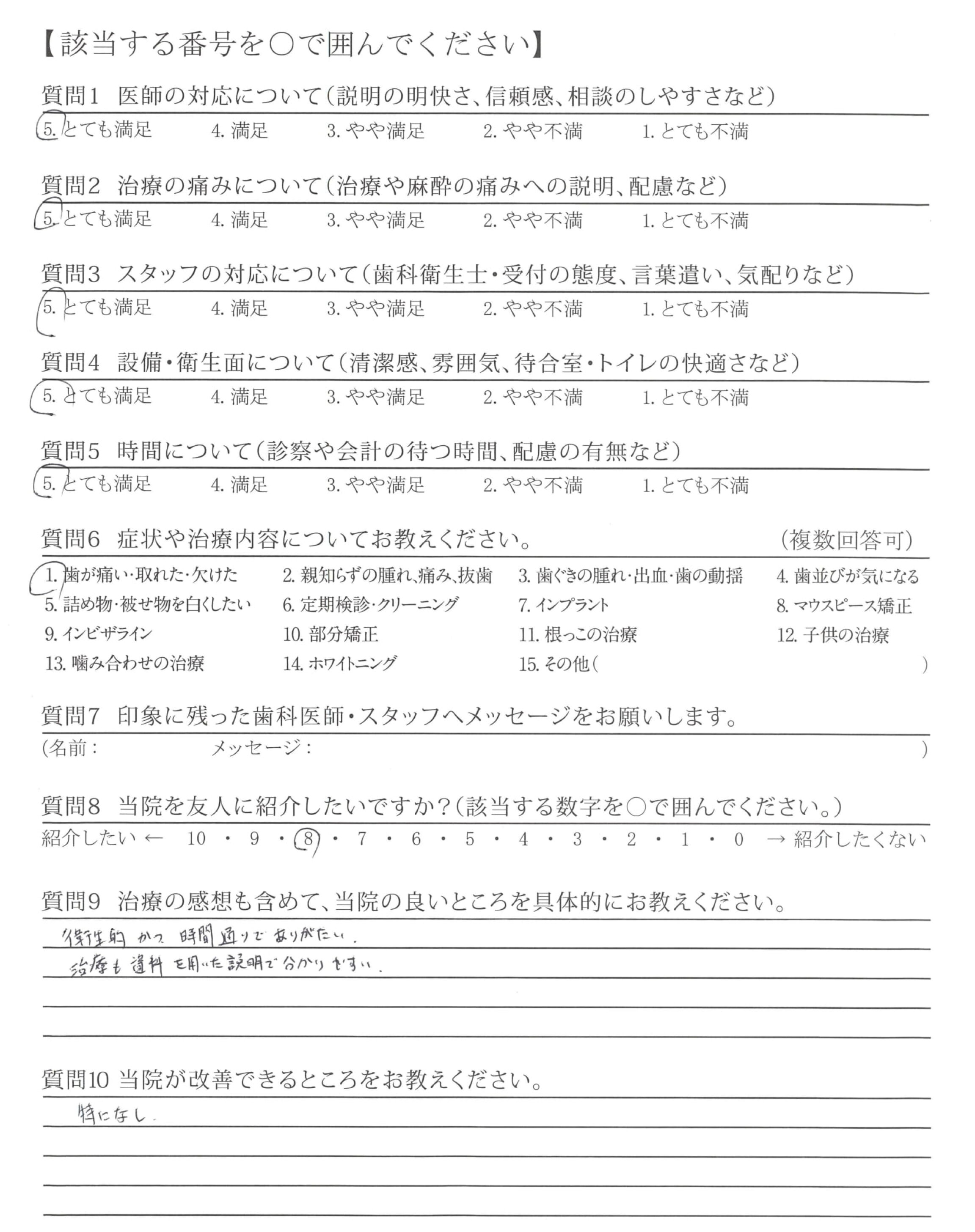 ・治療が早くて痛みもなく、とても安心できた。