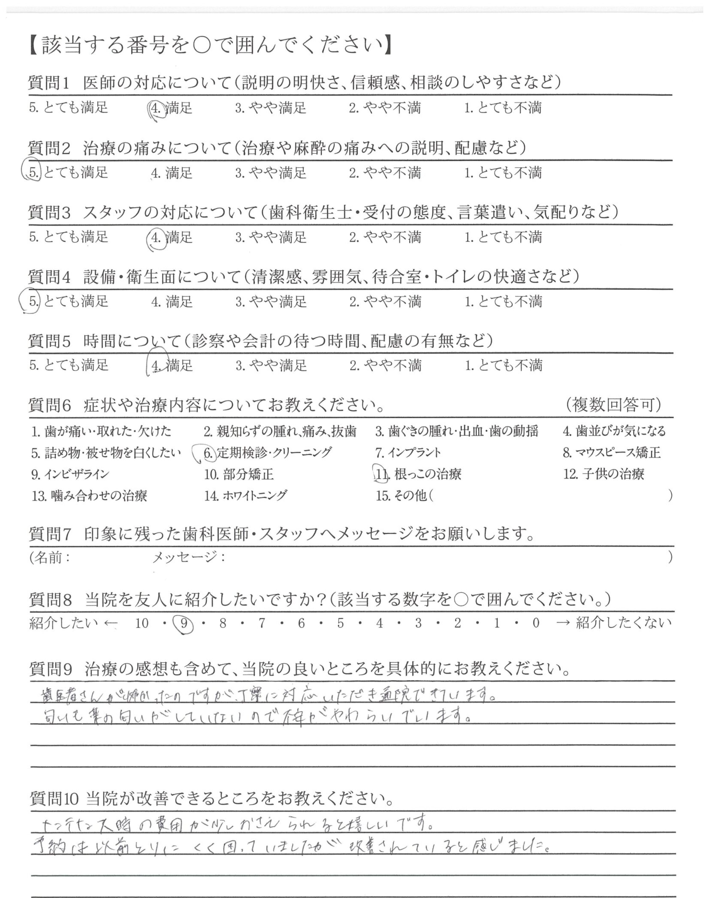 いつも痛みに弱い私に声かけや2回に分けて対応して下さりとても感謝しております。ありがとうございます。