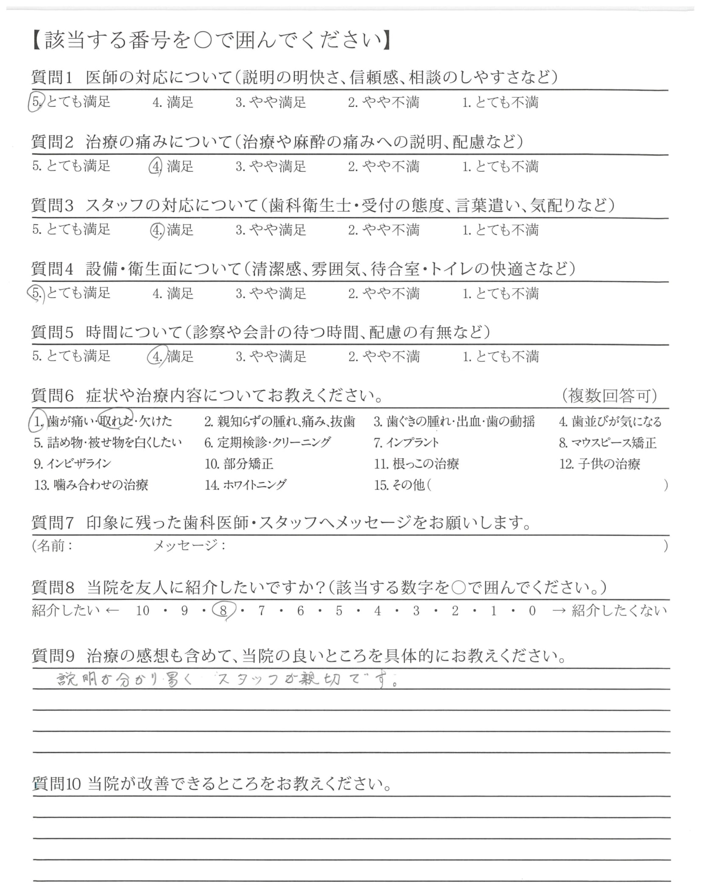 治療はとてもまんぞくのいくものでした。