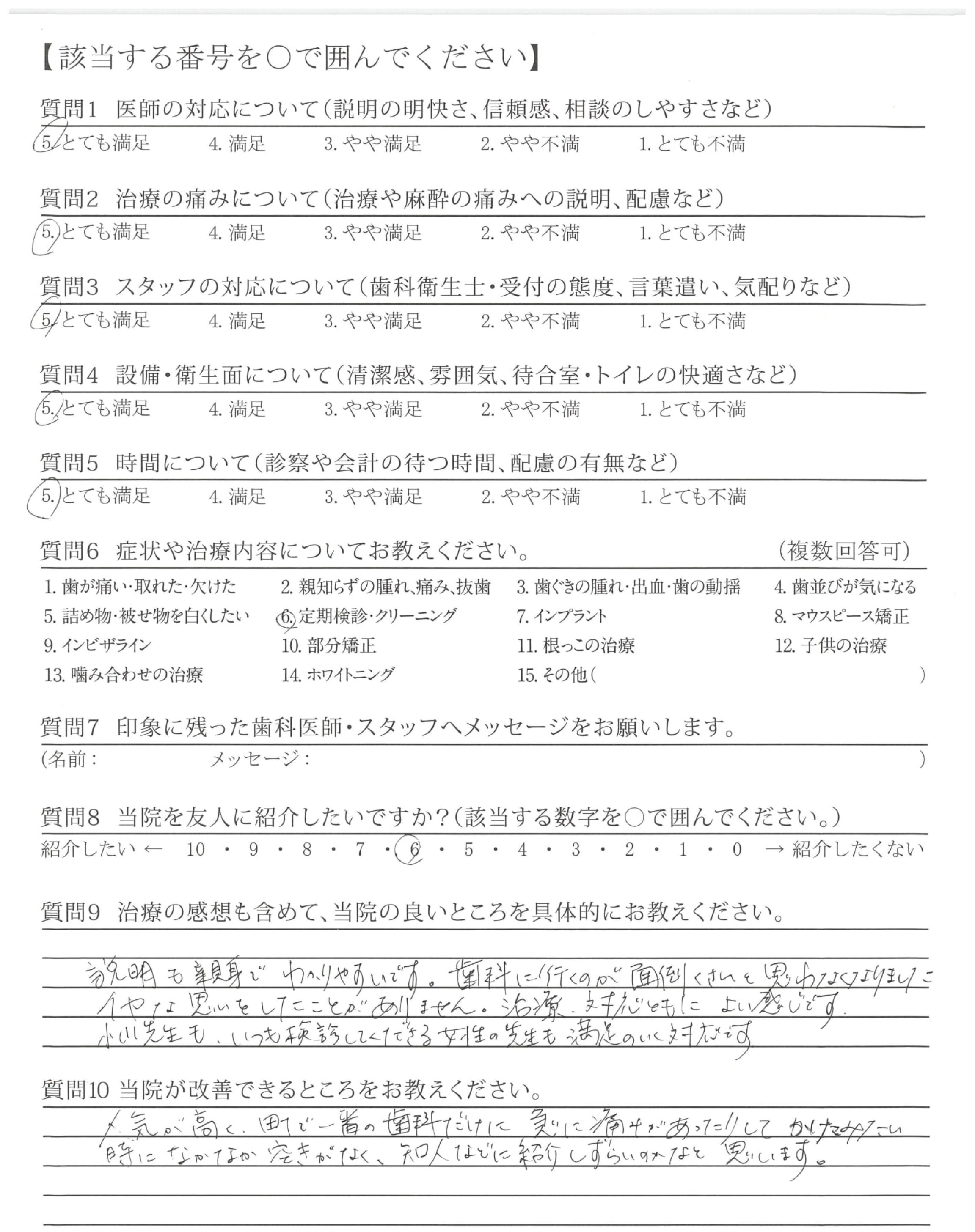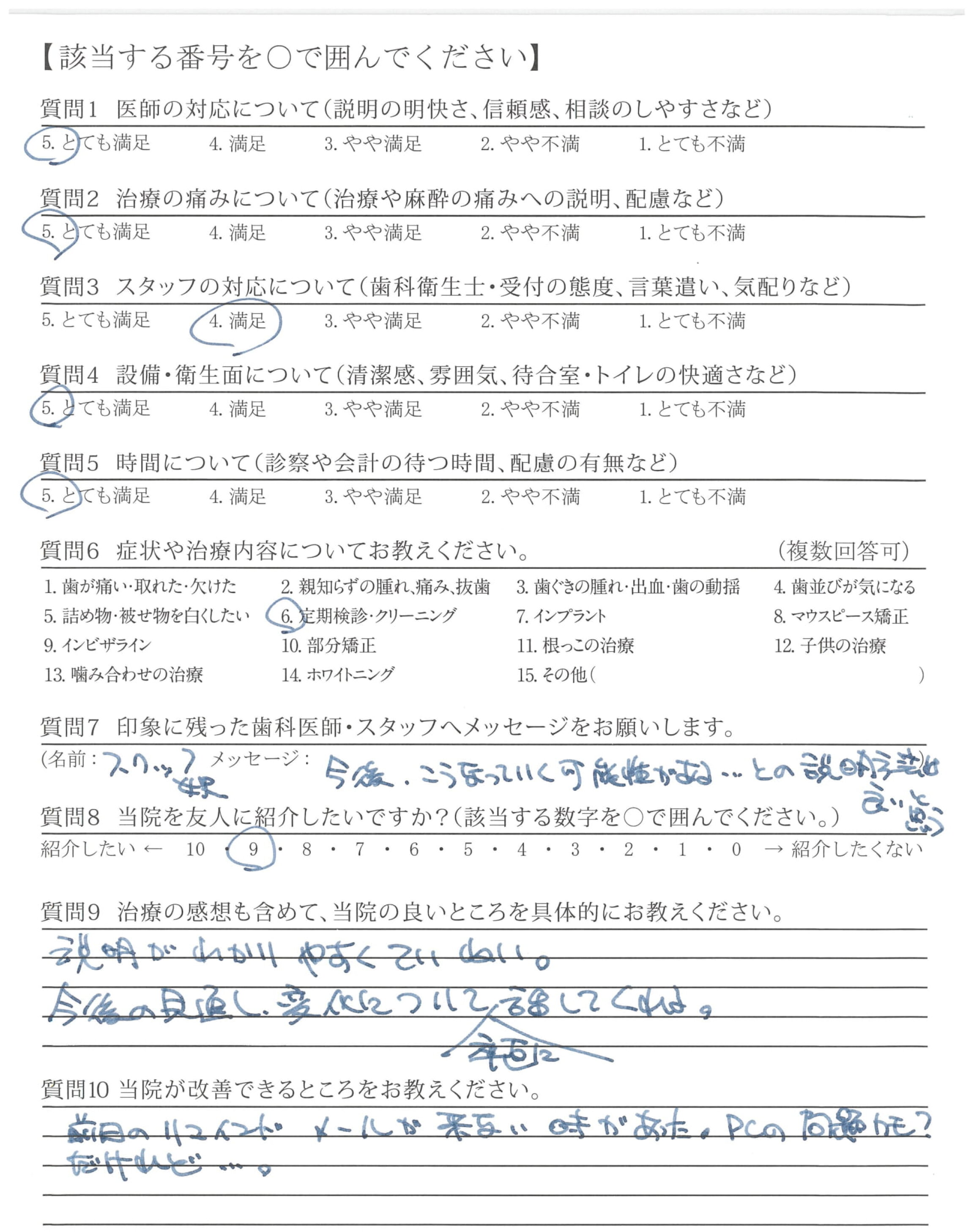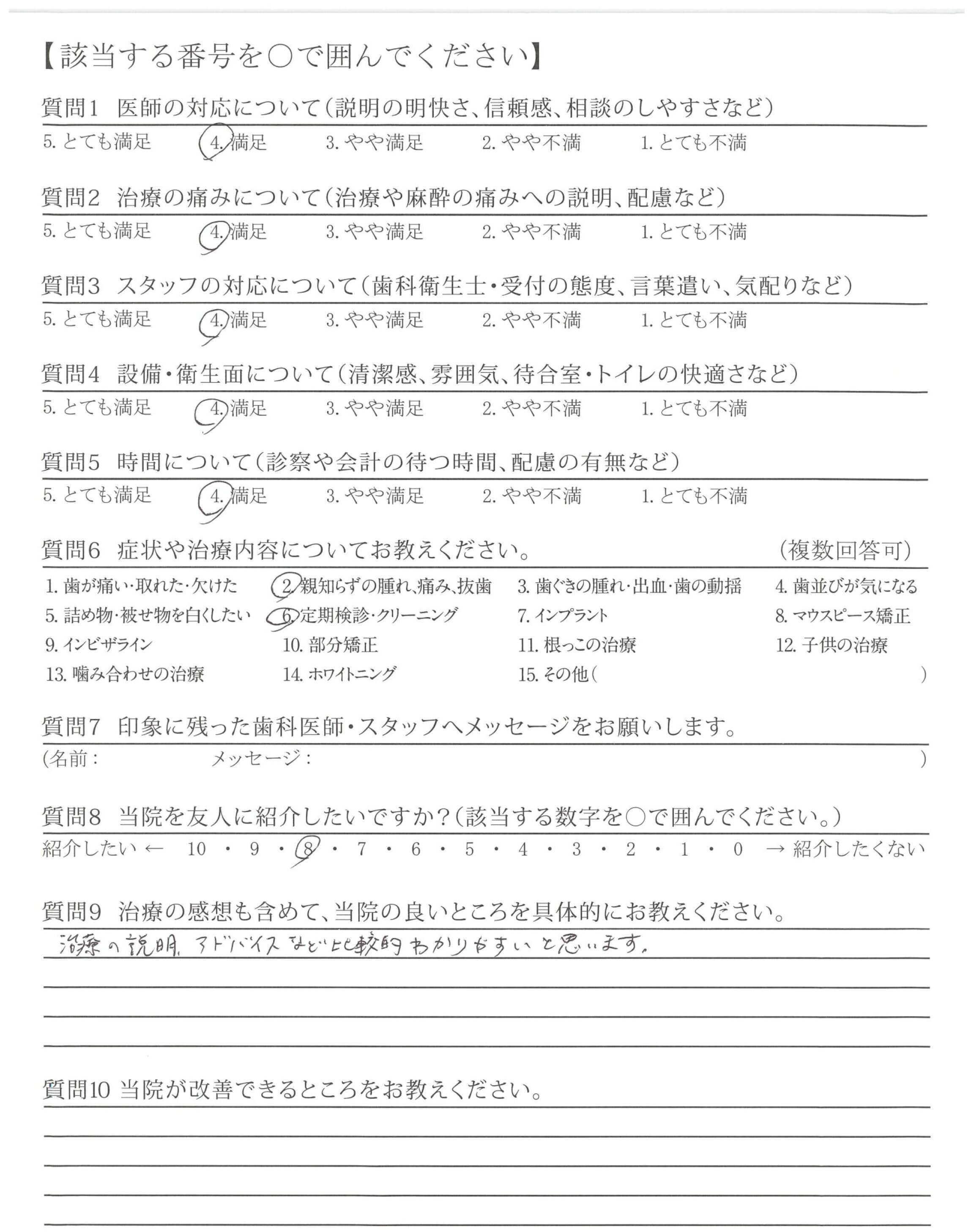 質問にわかりやすく答えてくれて安心感があります。はみがきがしっかりできていると言われるとほっとします。