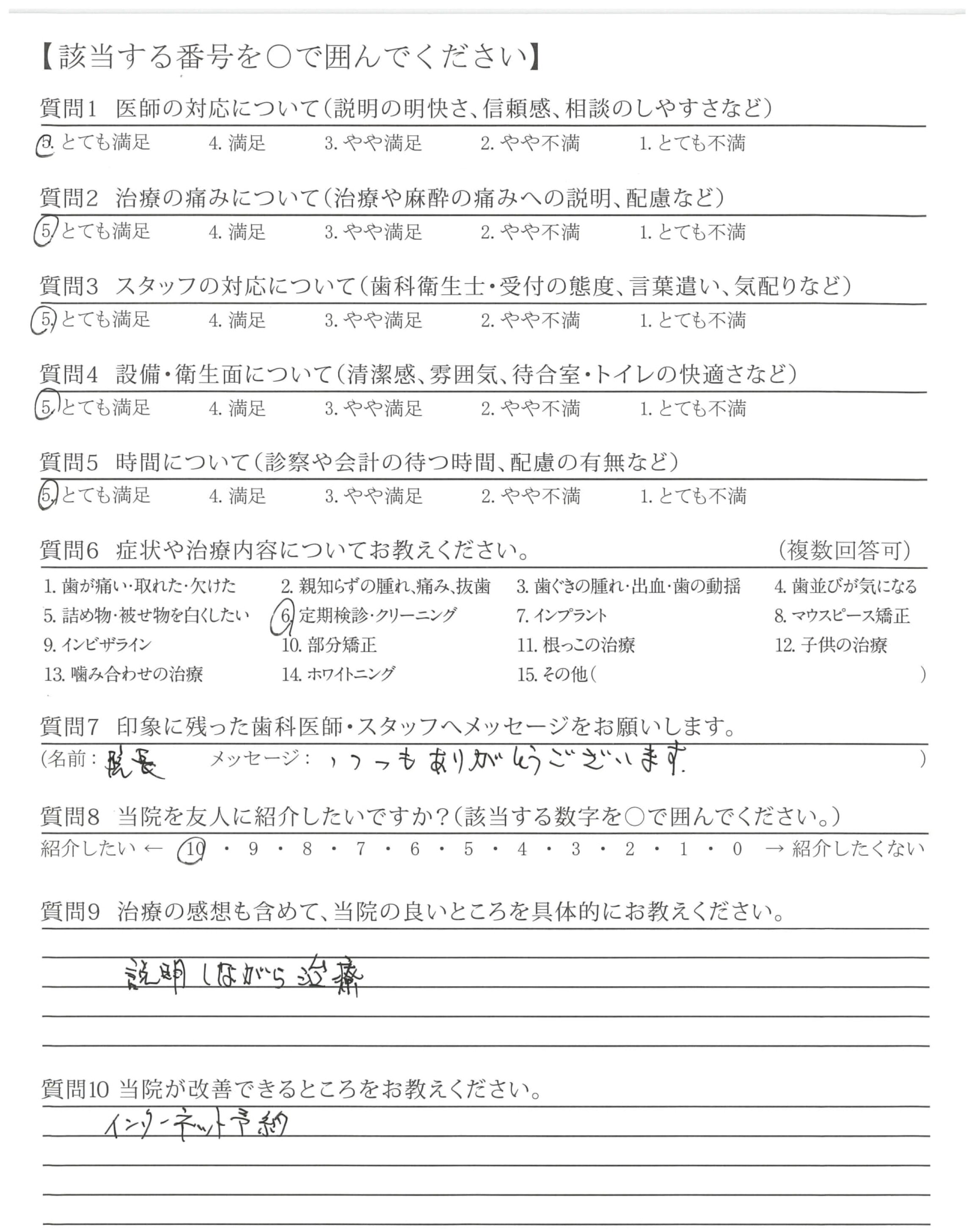 説明も親身でわかりやすいです。歯科に行くのが面倒くさいと思わなくなりました。イヤな思いをしたことがありません。