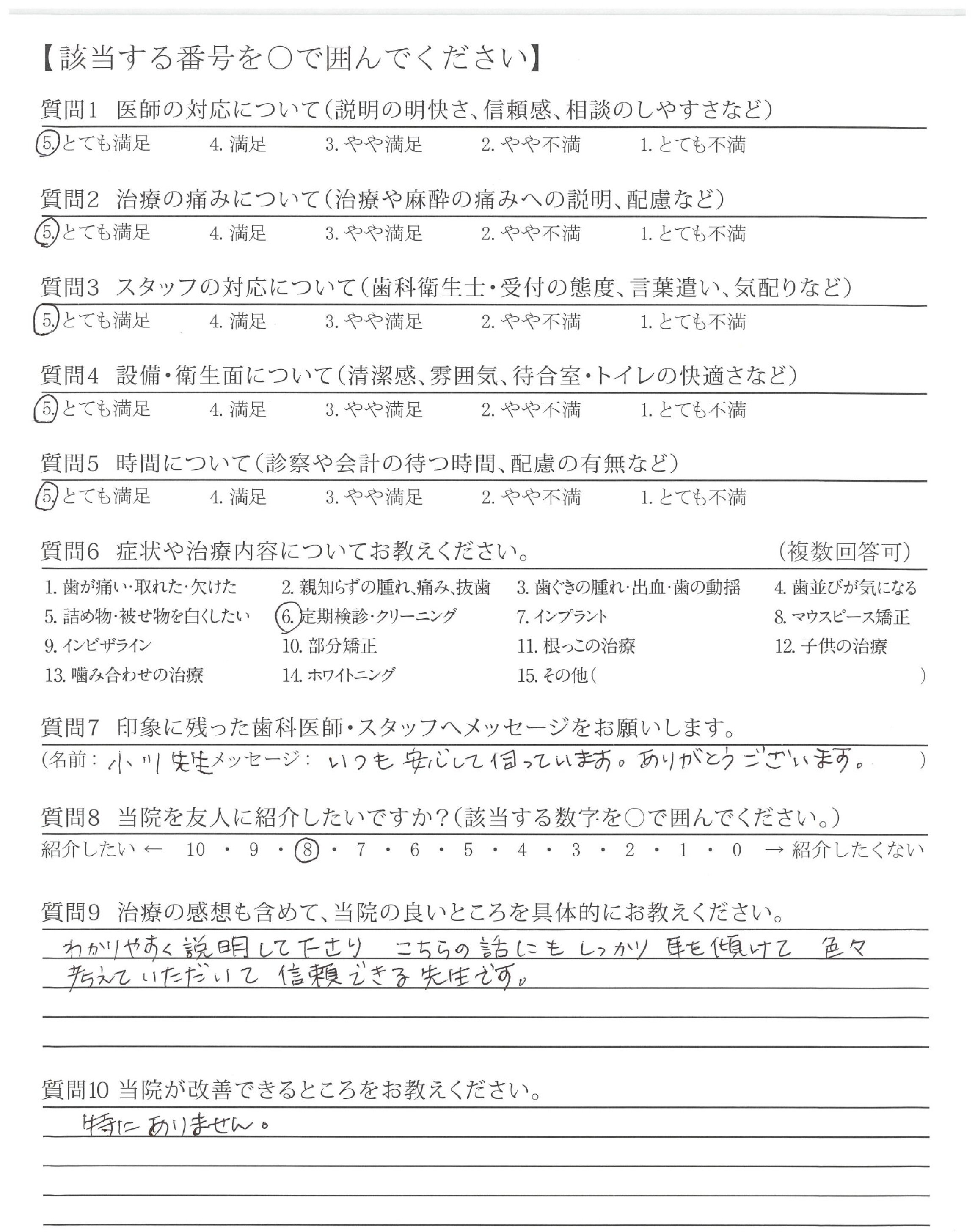 小川先生も、いつも検診してくださる女性の先生も満足のいく対応です。