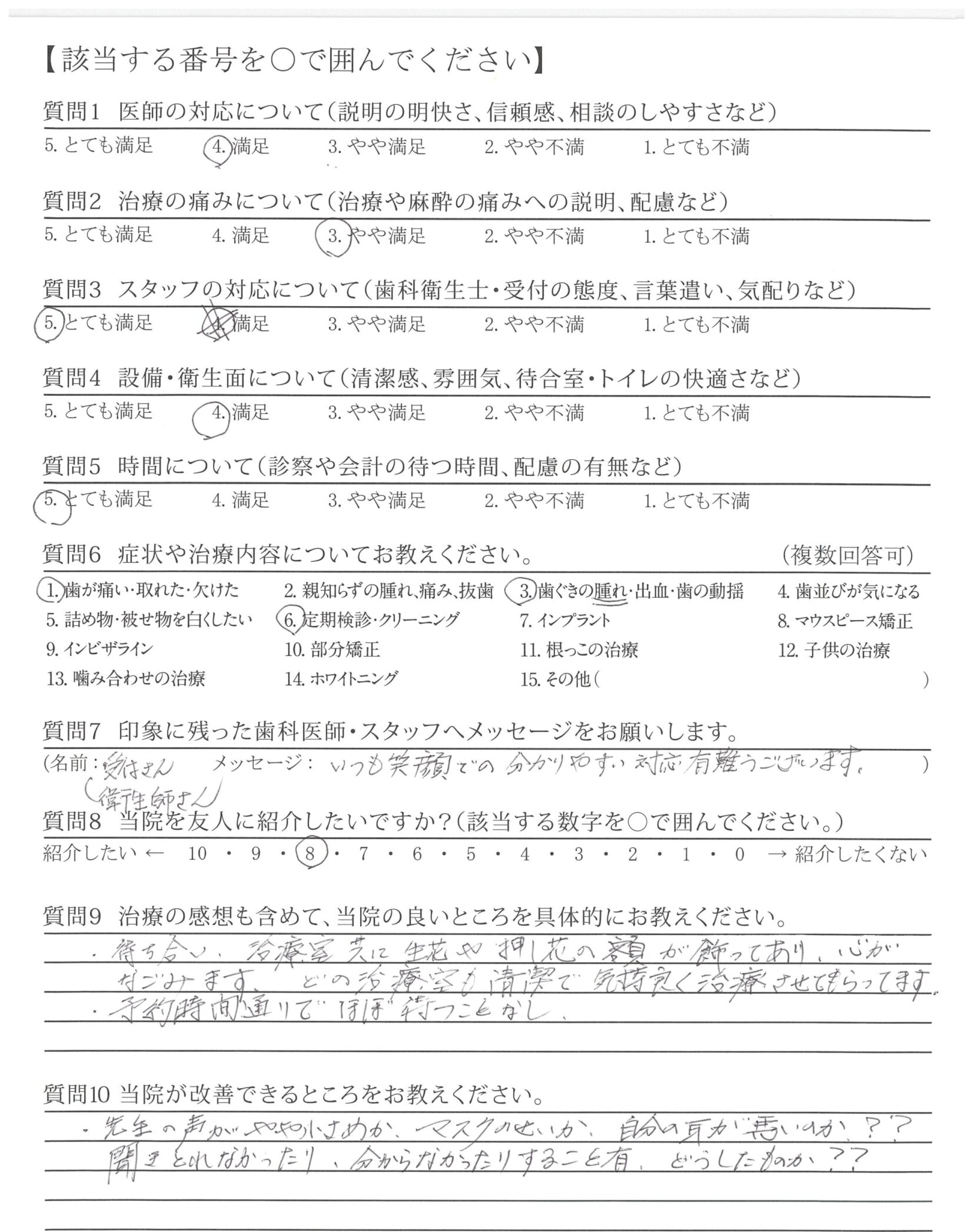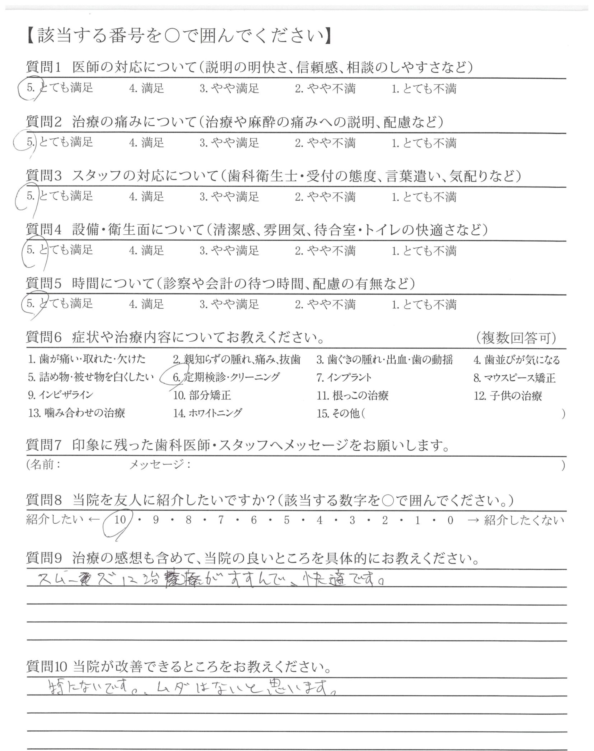 治療はご配慮いただき大変満足しています。これからも宜しくお願い致します。