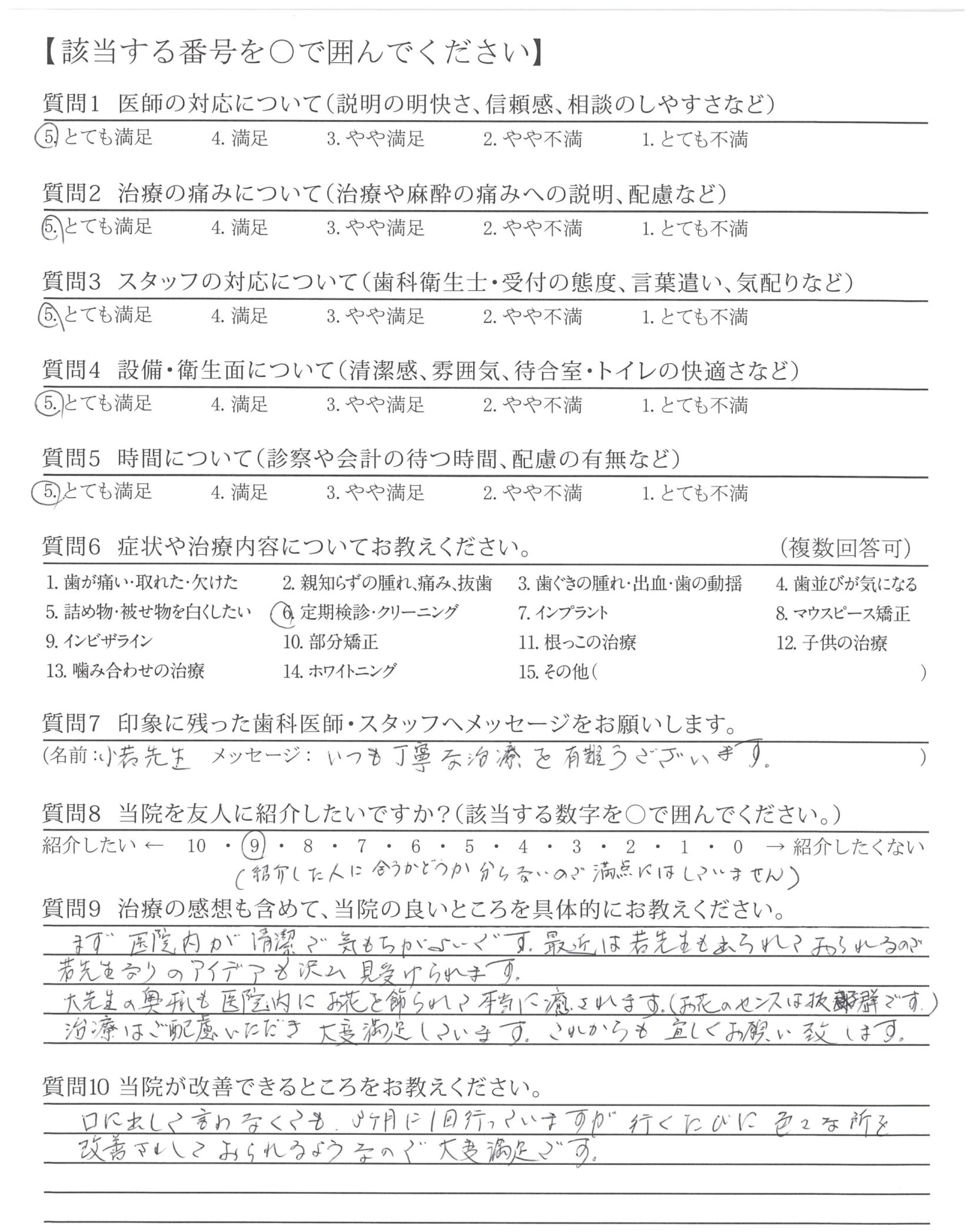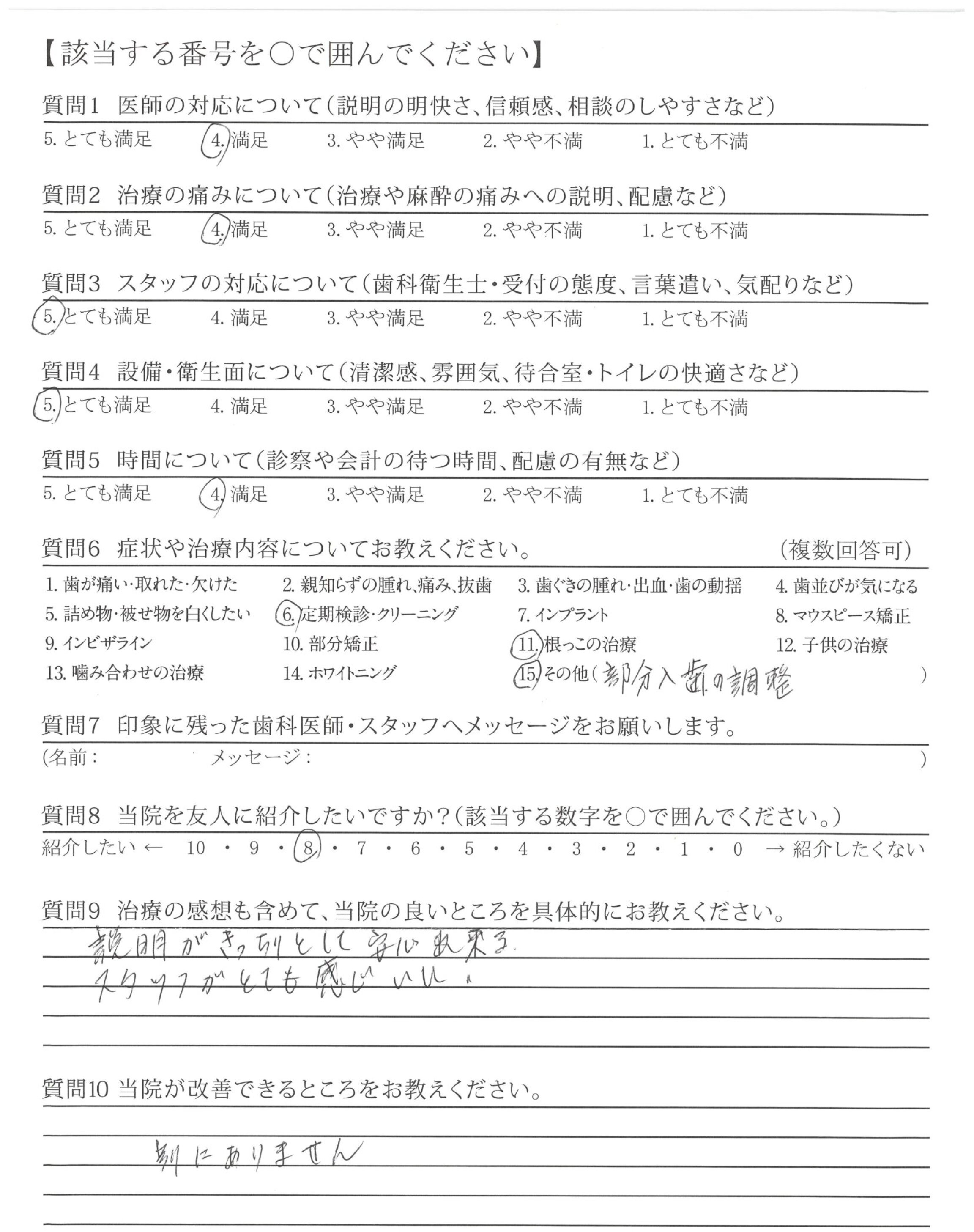 口に出して言わなくても、3ヶ月に1回行っていますが行くたびに色々な所を改善されておられるようなので大変満足です。