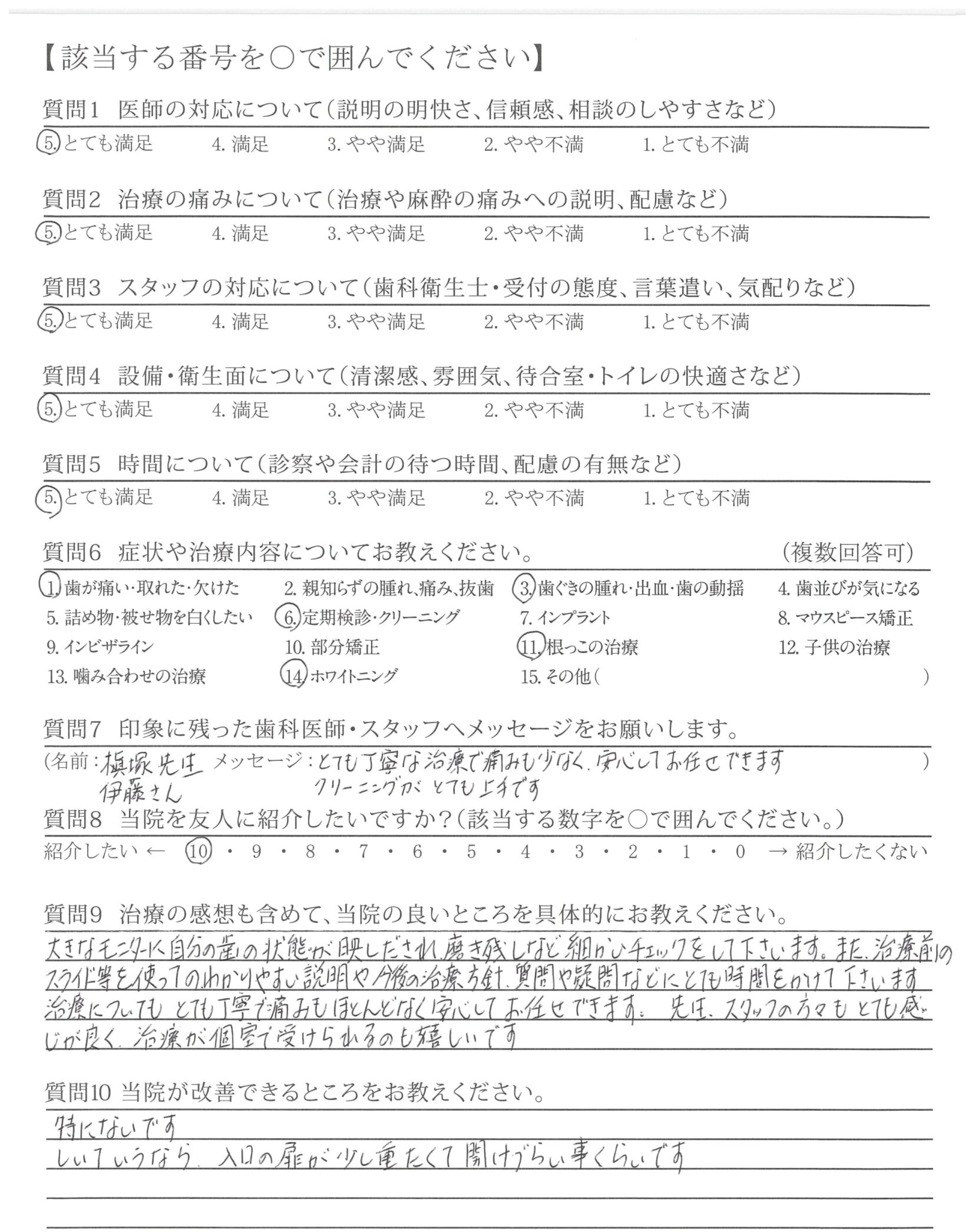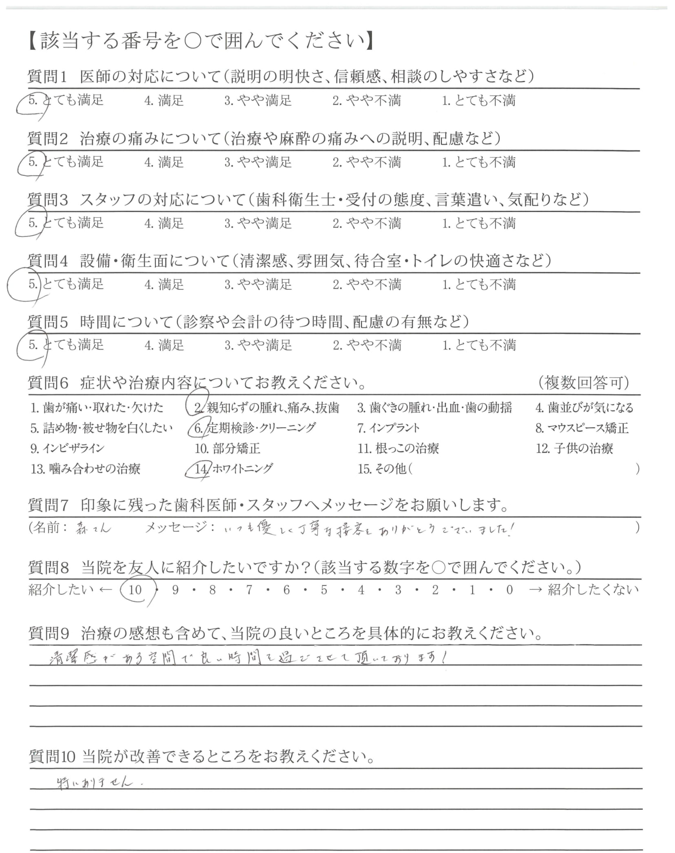 いつも大変お世話になり、丁寧に説明・治療して頂きありがとうございます。