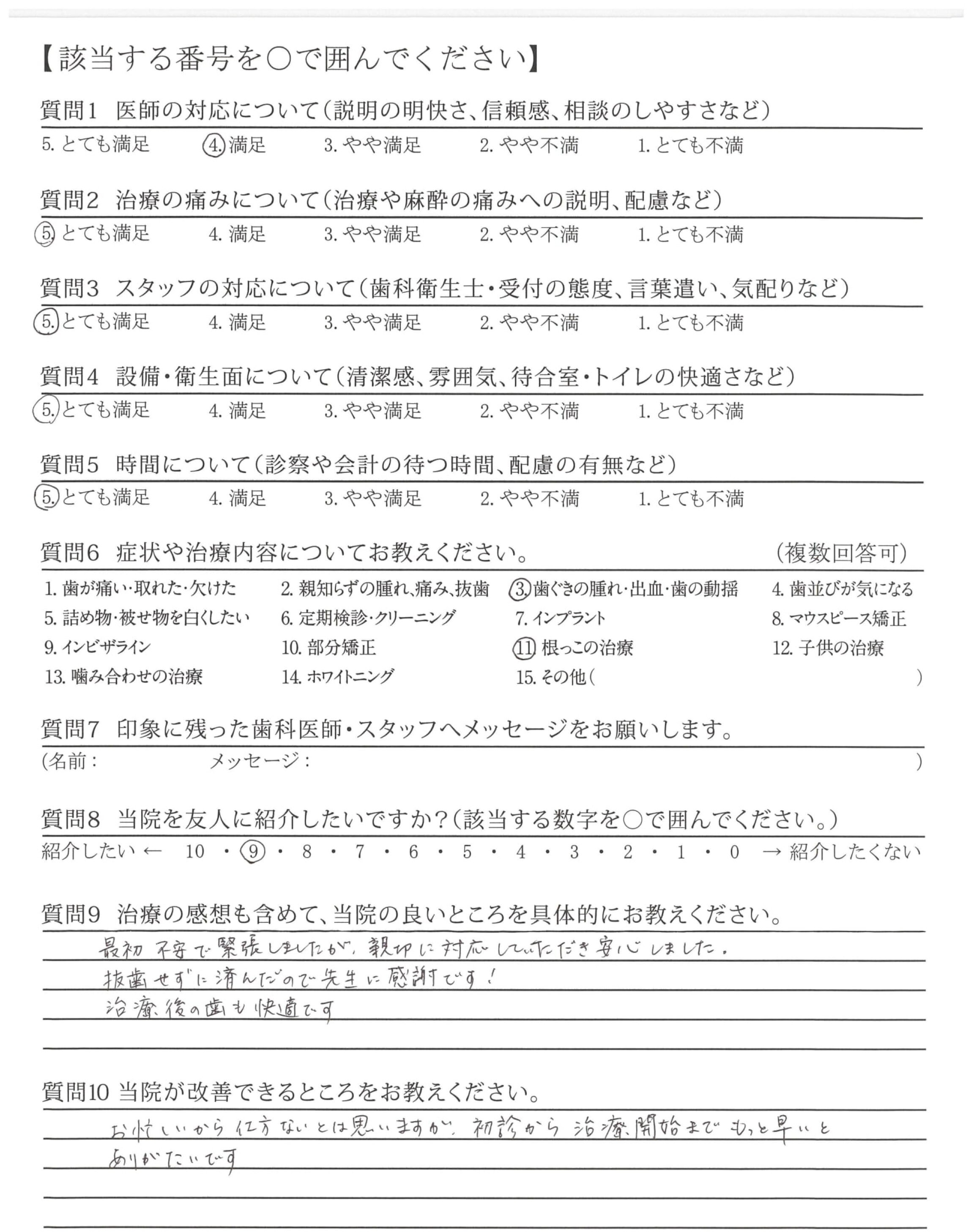 私の疑問にも答えて頂きまして安心できました。丁寧な治療ありがとうございます。