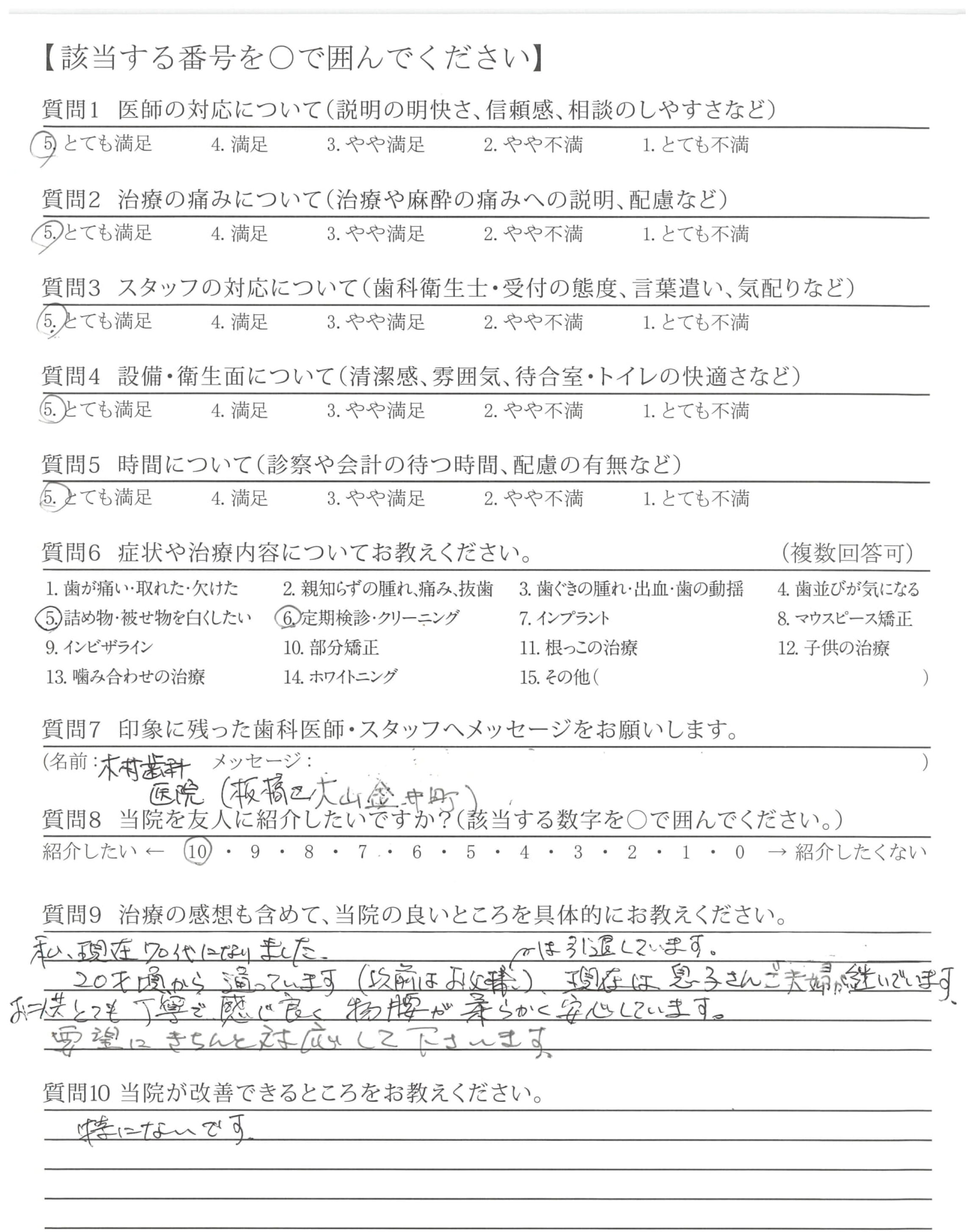 当サイトに掲載しているアンケートは、第三者機関である日本歯科医療評価機構が医院の協力を得て直接患者さんへ調査を行ったもので、医院では操作のできない客観的な評価です。毎週患者さんから届くアンケート結果を集計し、このページを更新しています。