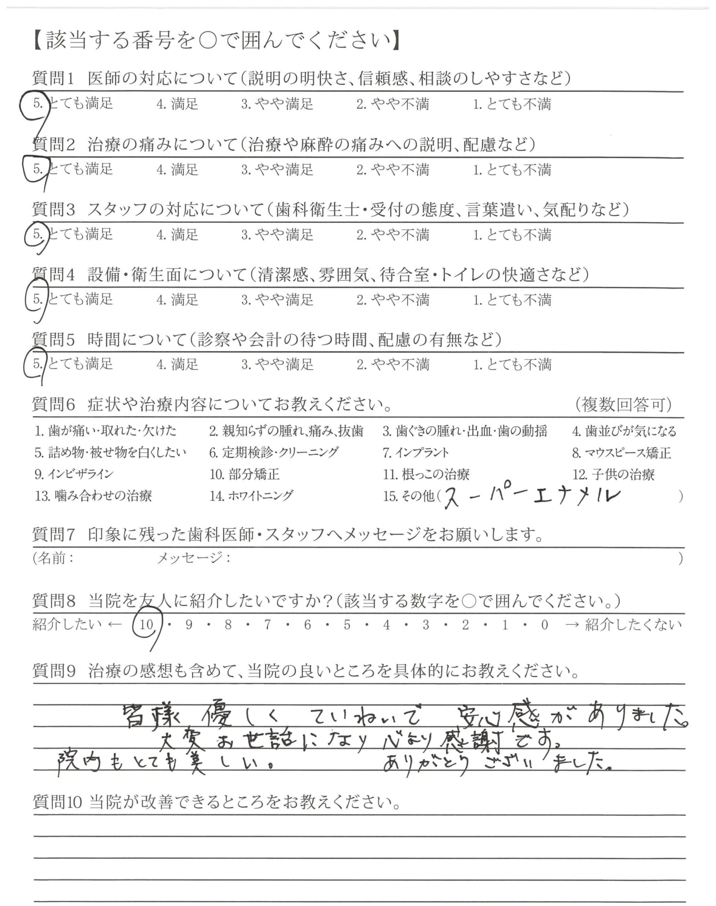 スーパーエナメルの説明を細かく行ってくれたので、不明点や不安を感じずに施術できた。