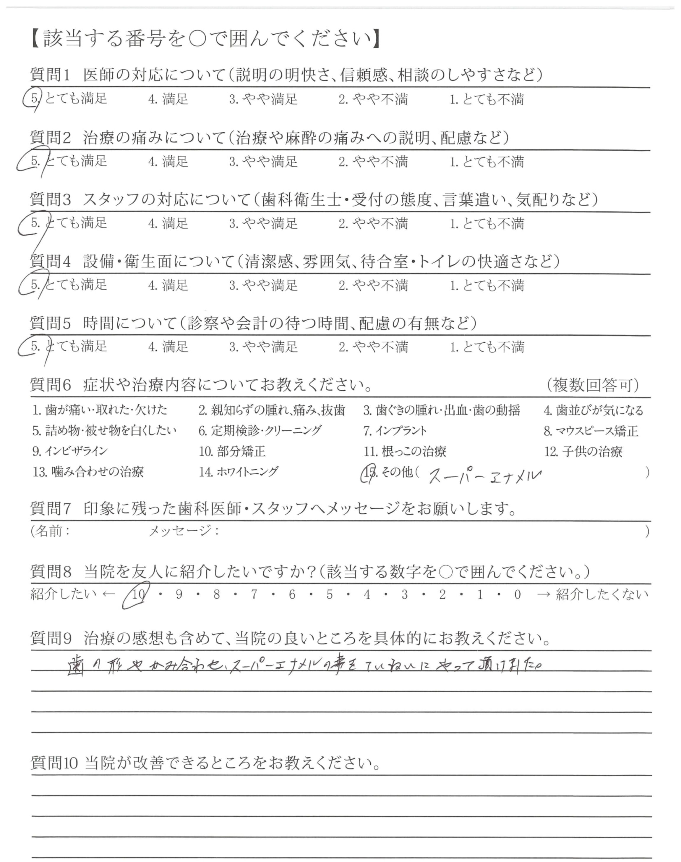 歯の形やかみ合わせ、スーパーエナメルの事をていねいにやって頂けました。