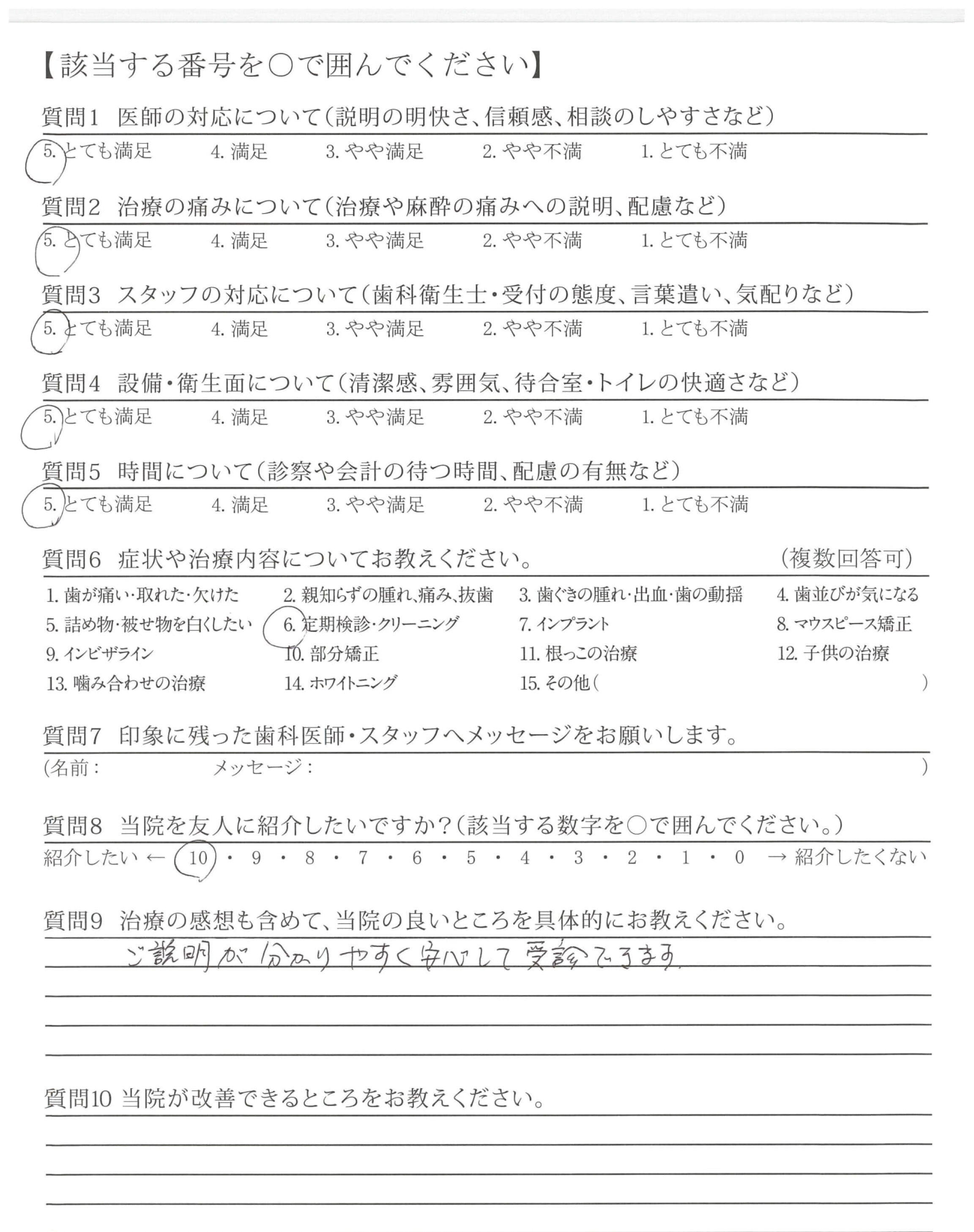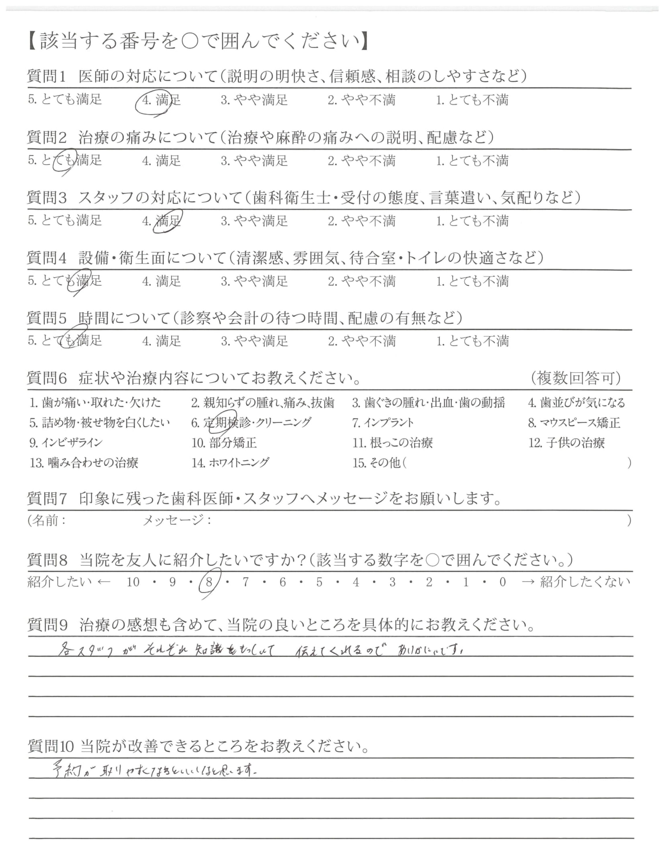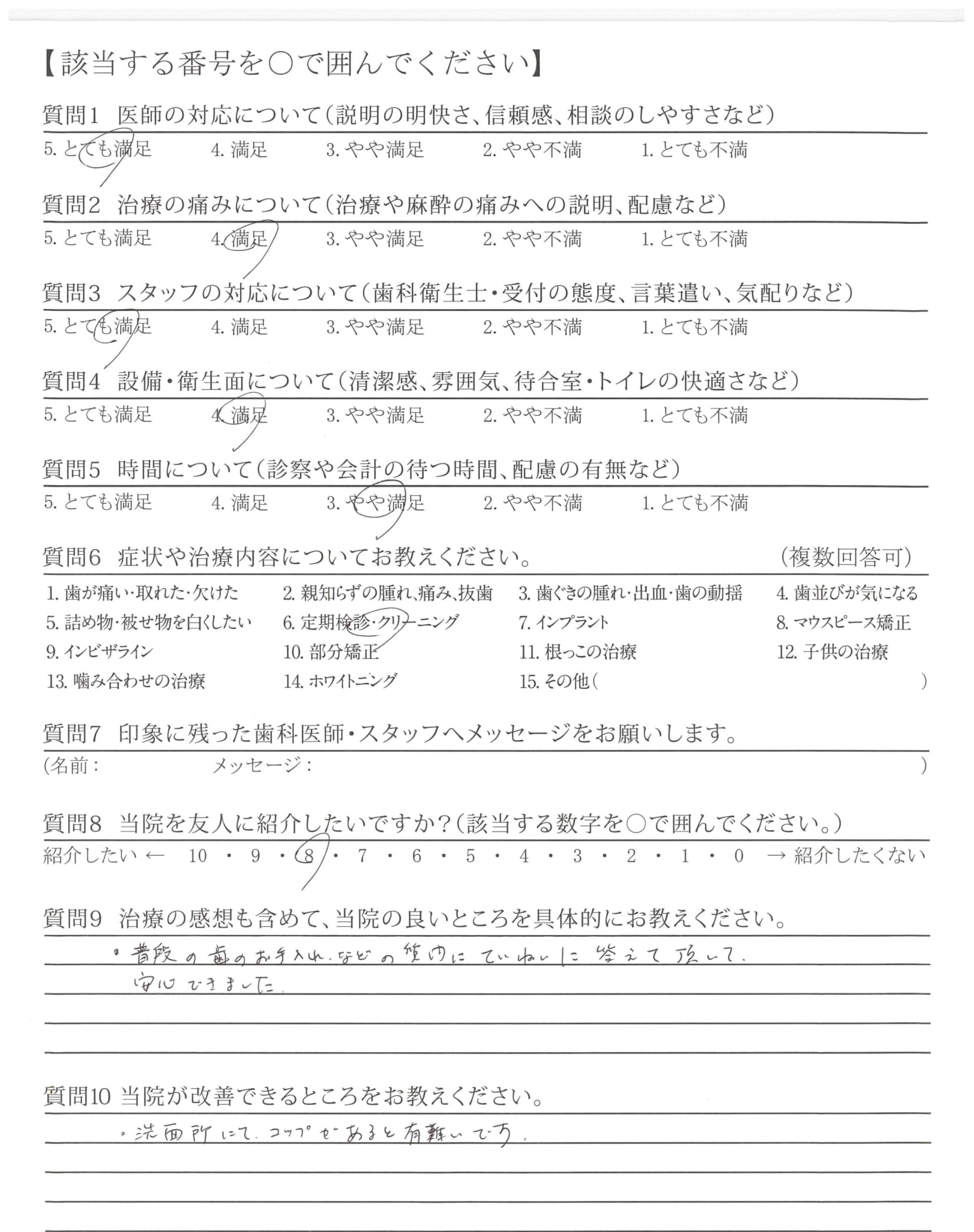 ・普段の歯のお手入れ、などの質問にていねいに答え頂いて、安心できました。