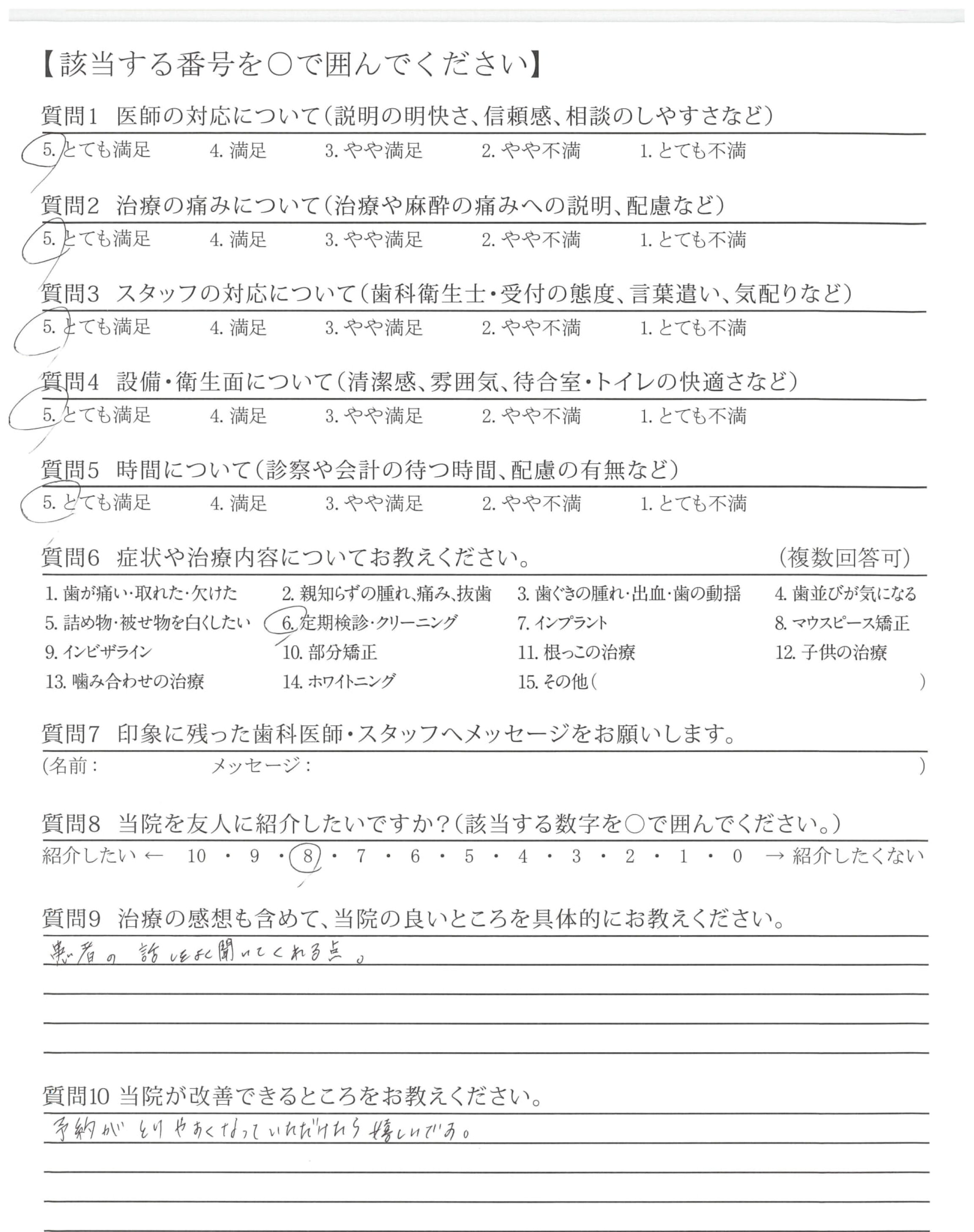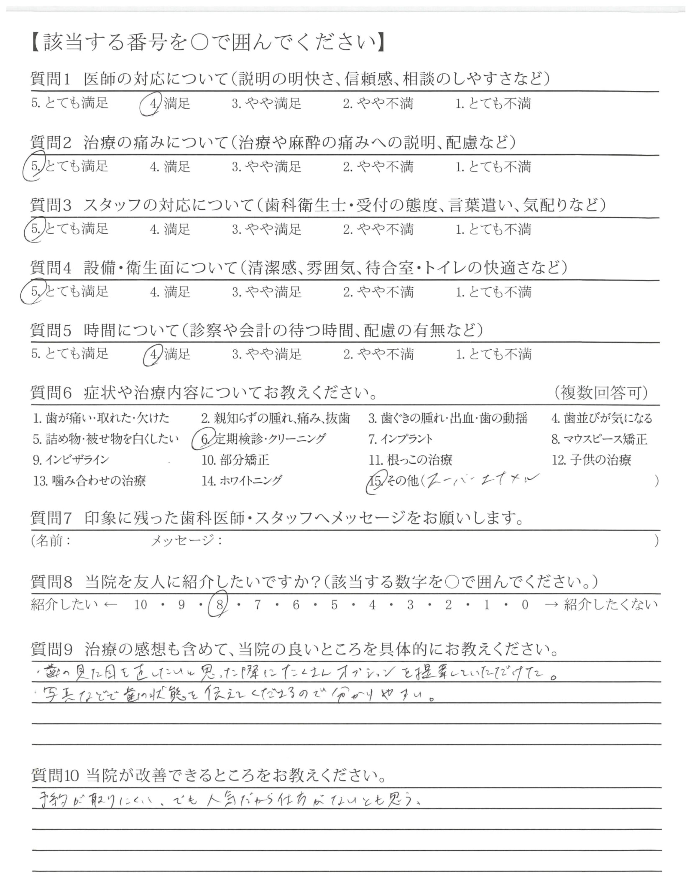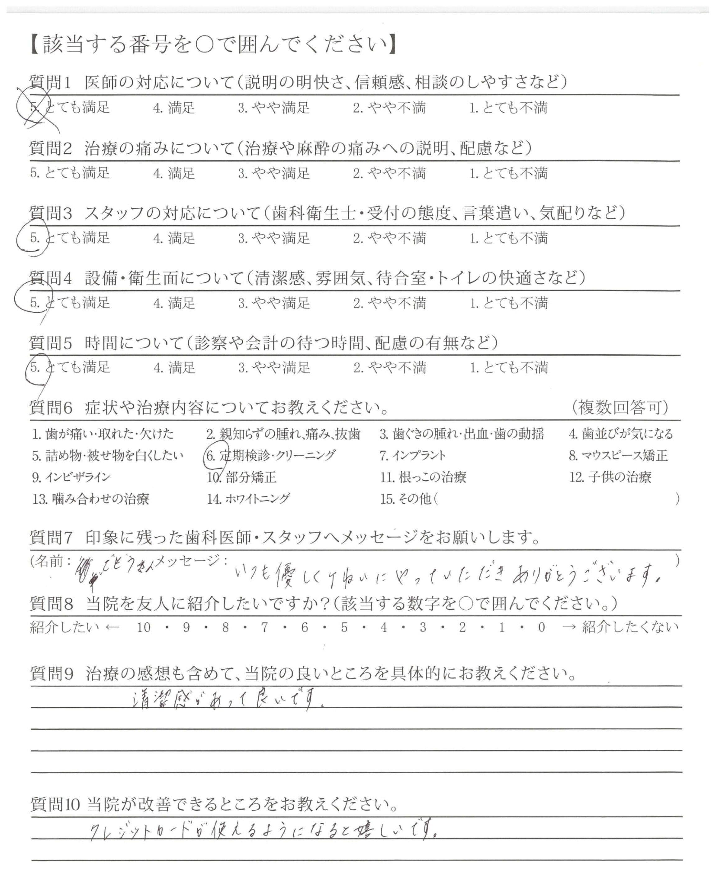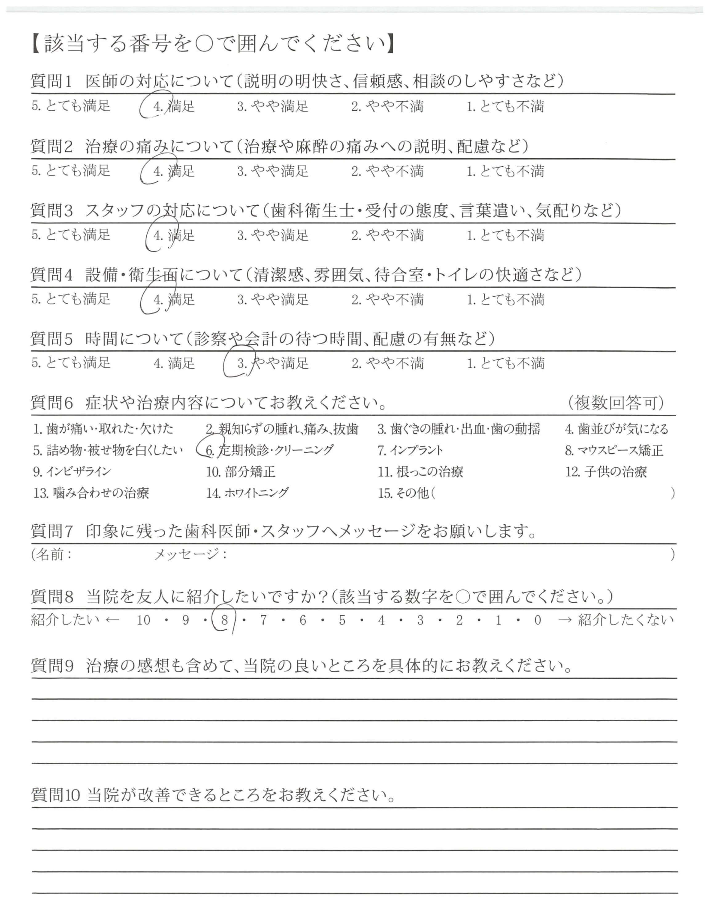 ・普段の歯のお手入れ、などの質問にていねいに答え頂いて、安心できました。
