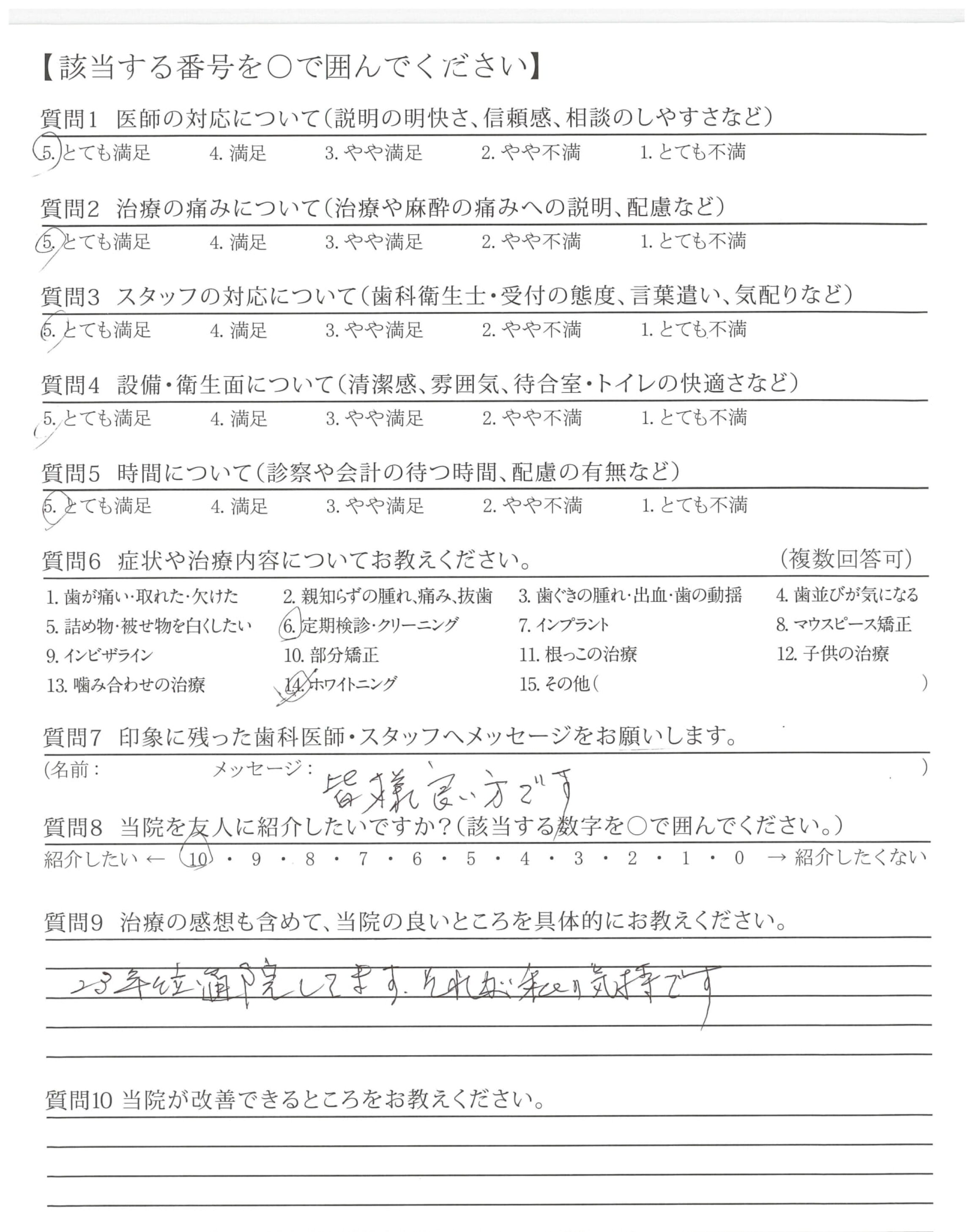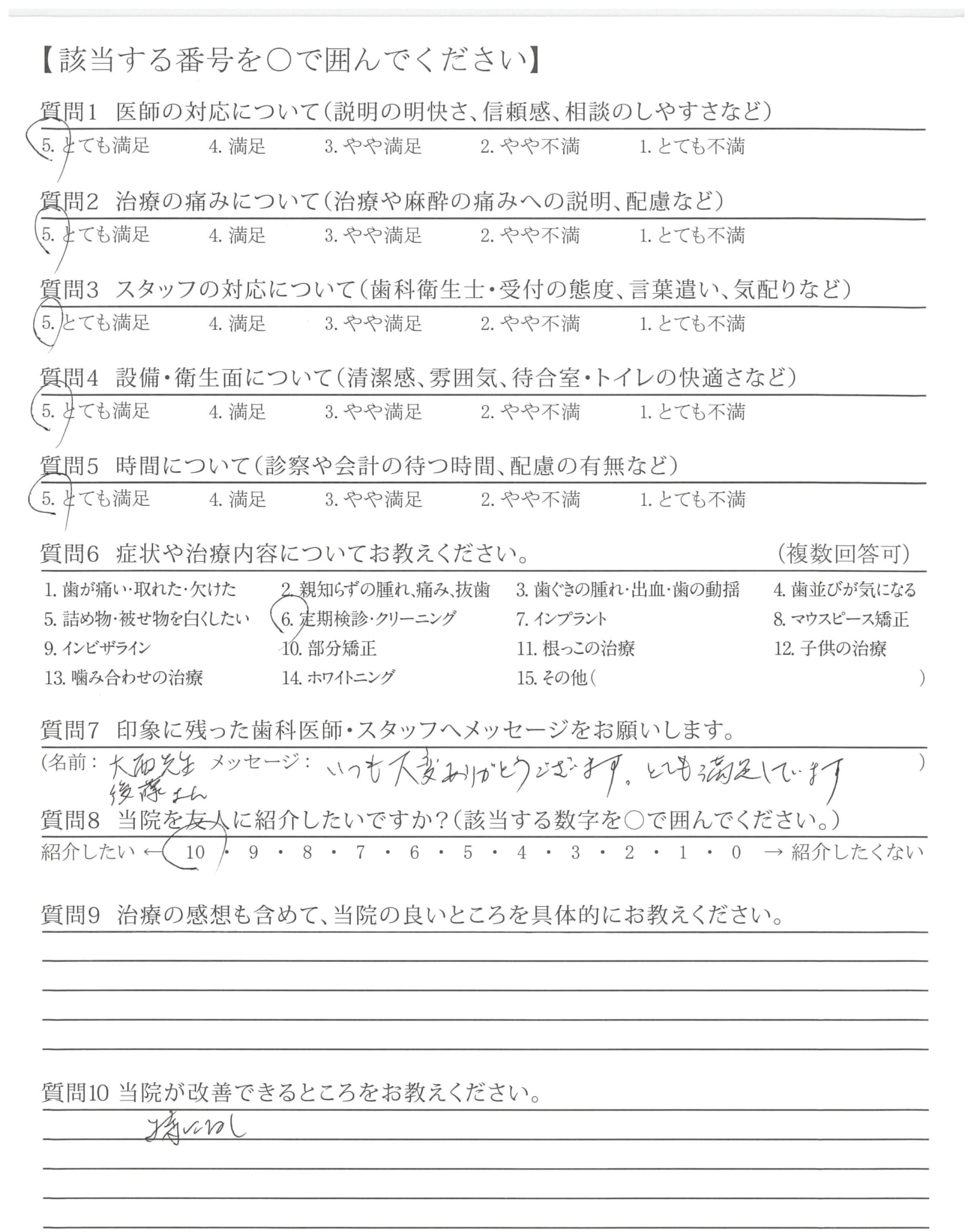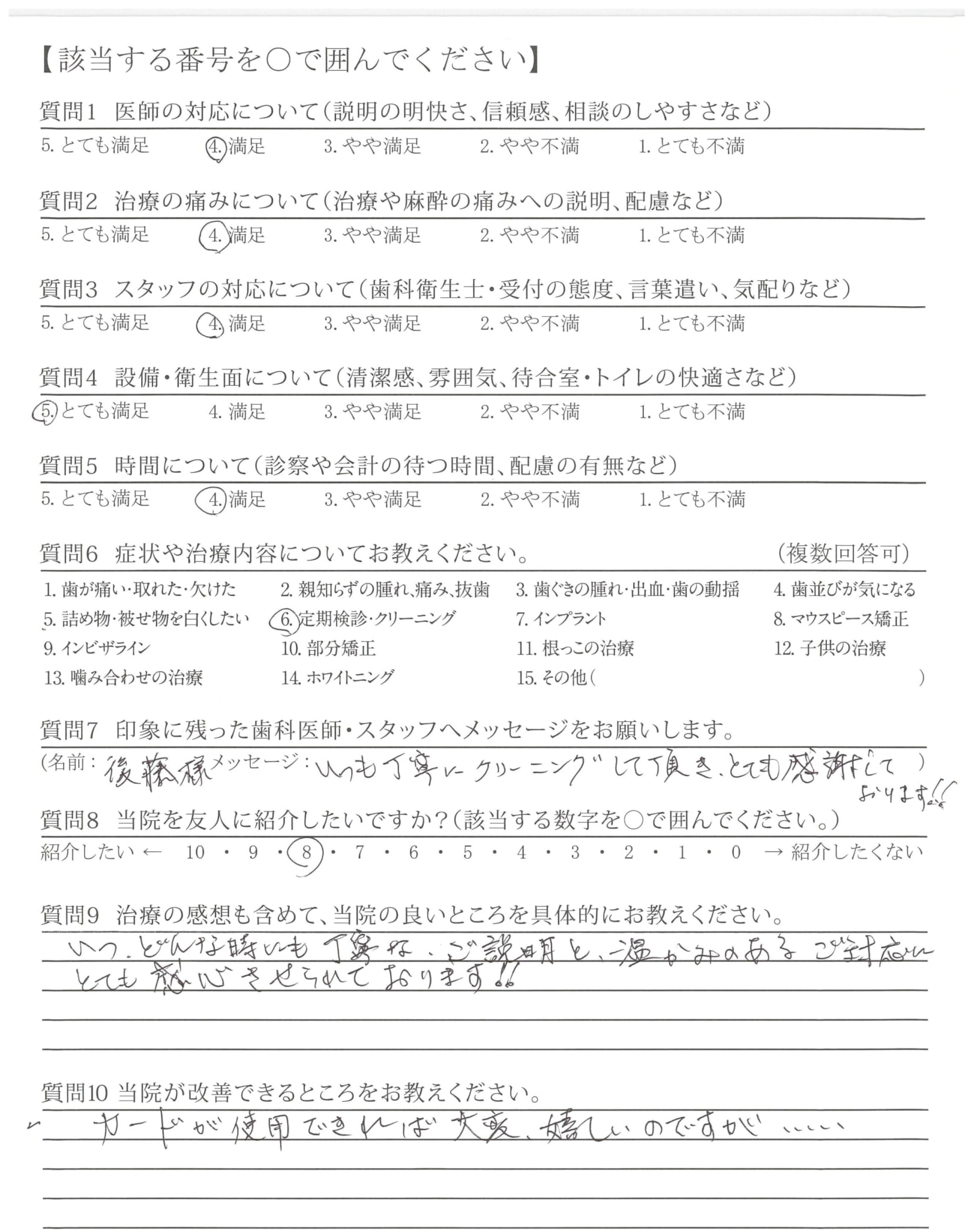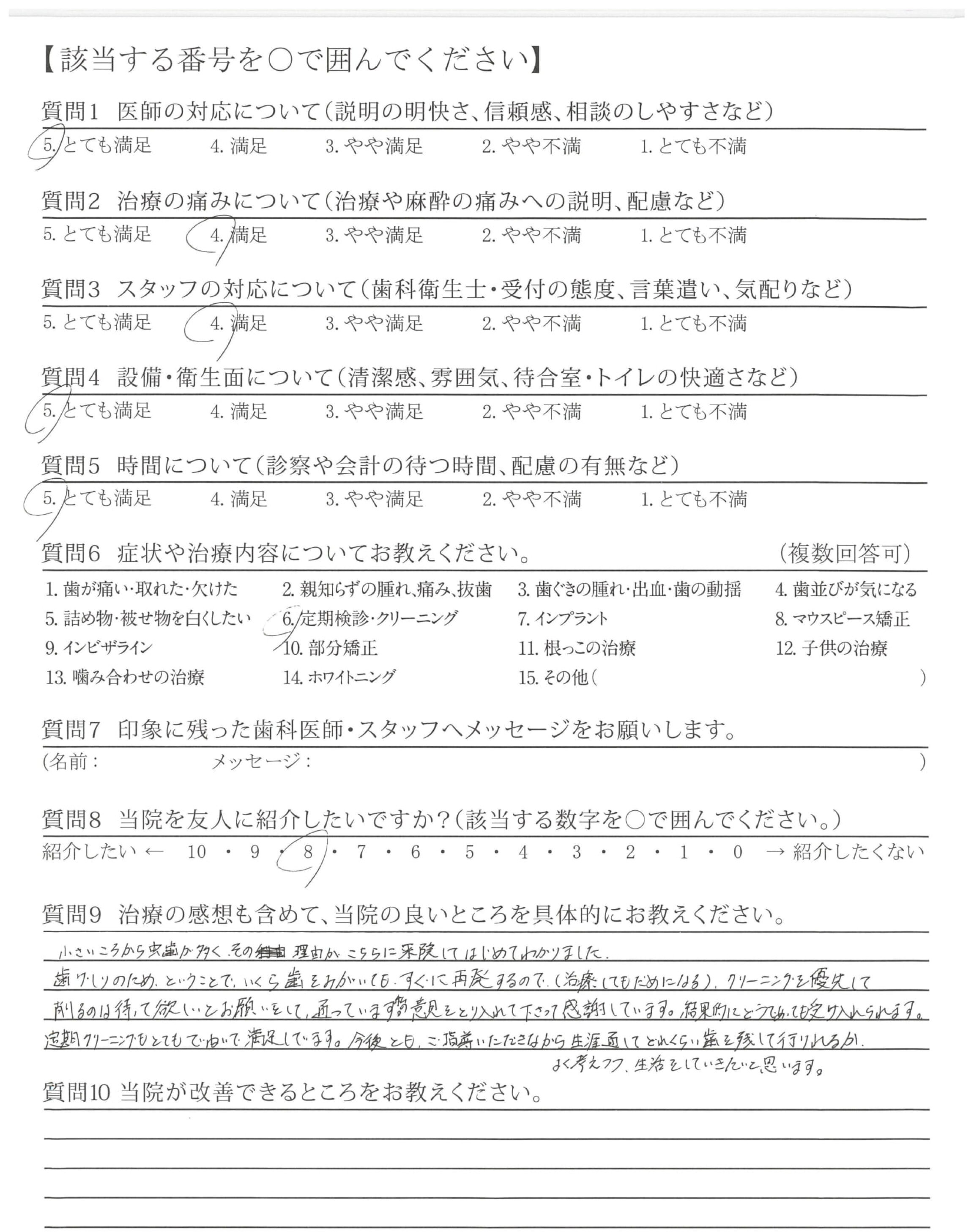 今後とも、ご指導いただきながら生涯通してどれくらい歯を残して行けれるかよく考えつつ、生活をしていきたいと思います。