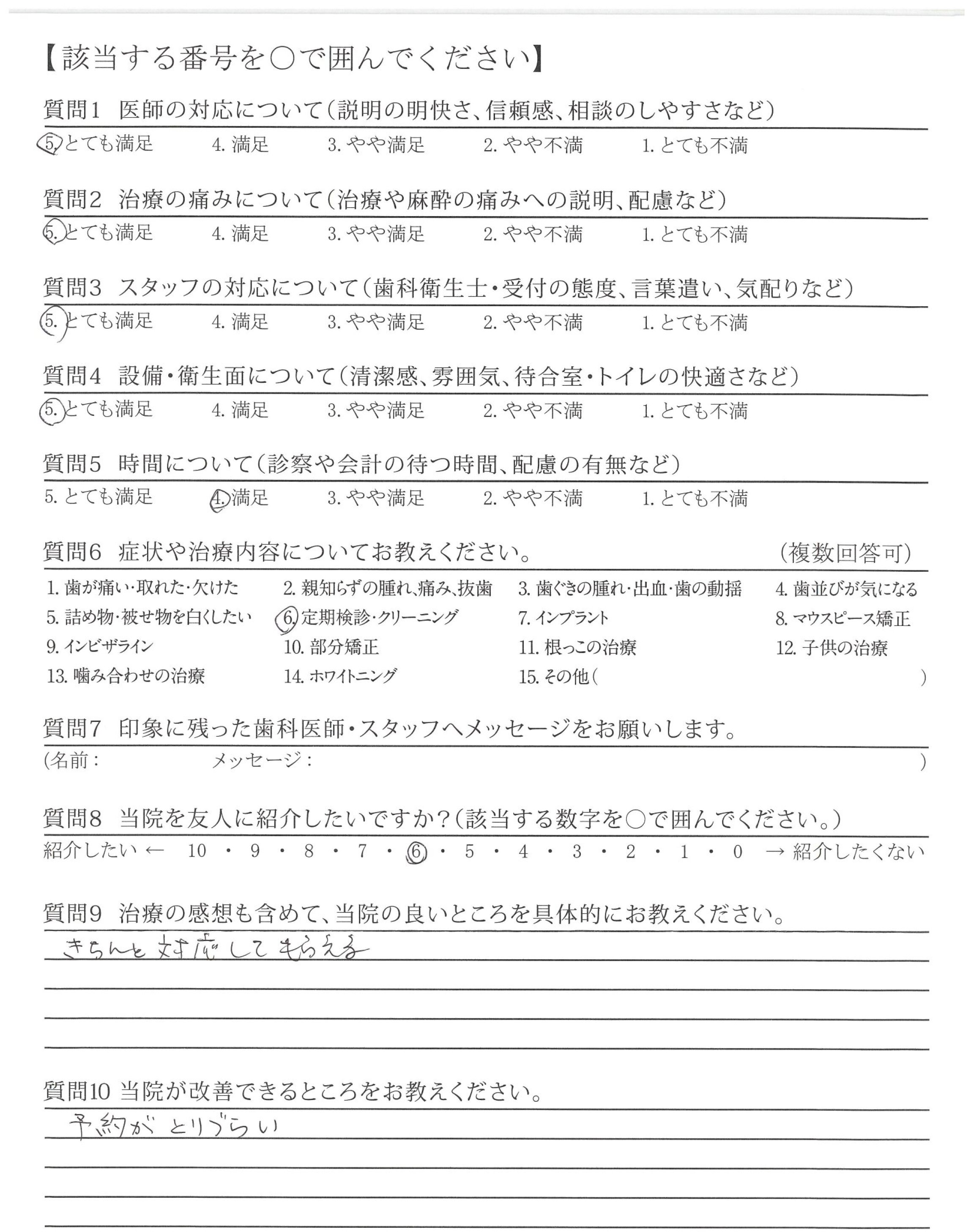 知人を紹介したのですが、初診のあと、治療の予約日が取りにくいということで、当院での治療をあきらめたそうです。