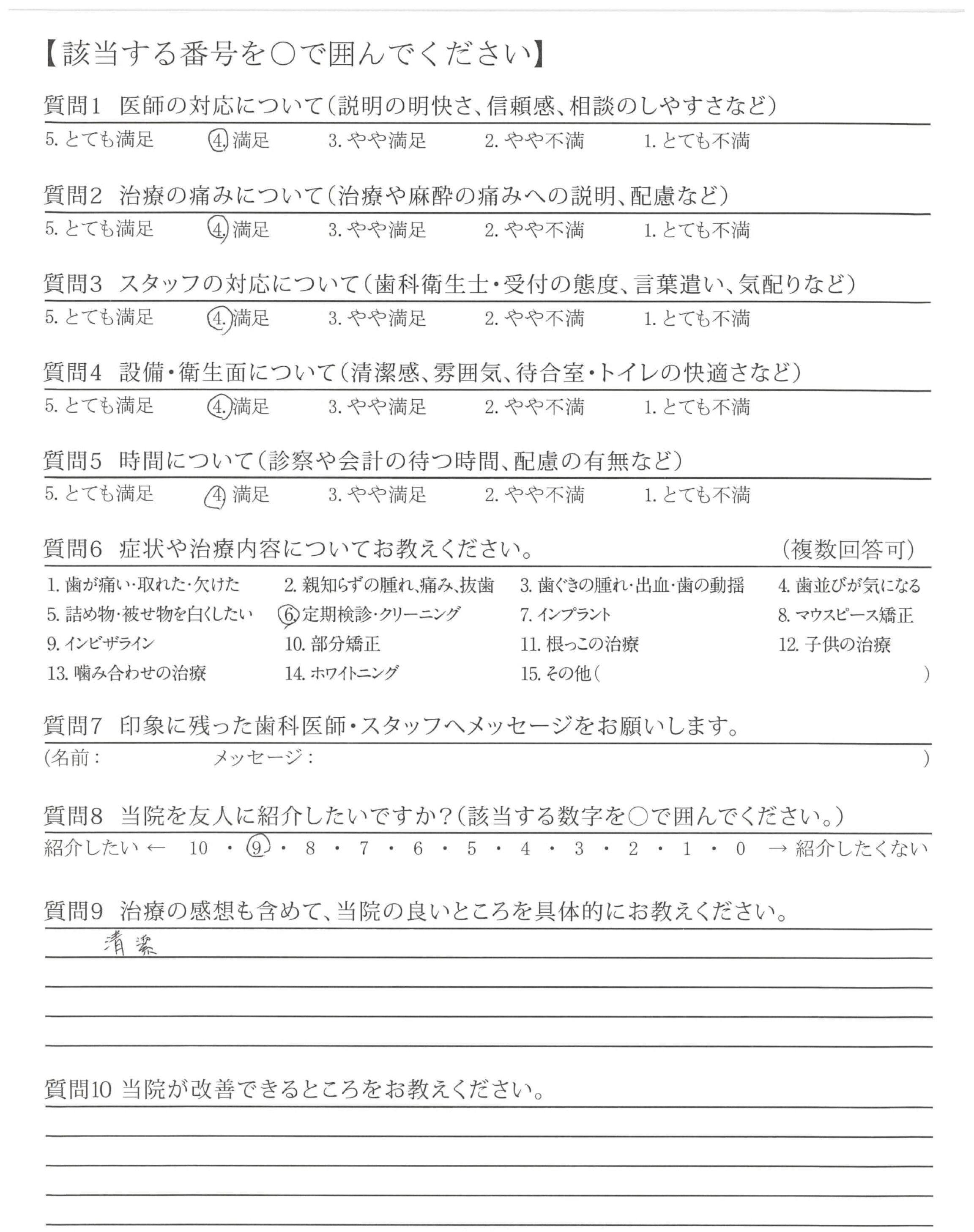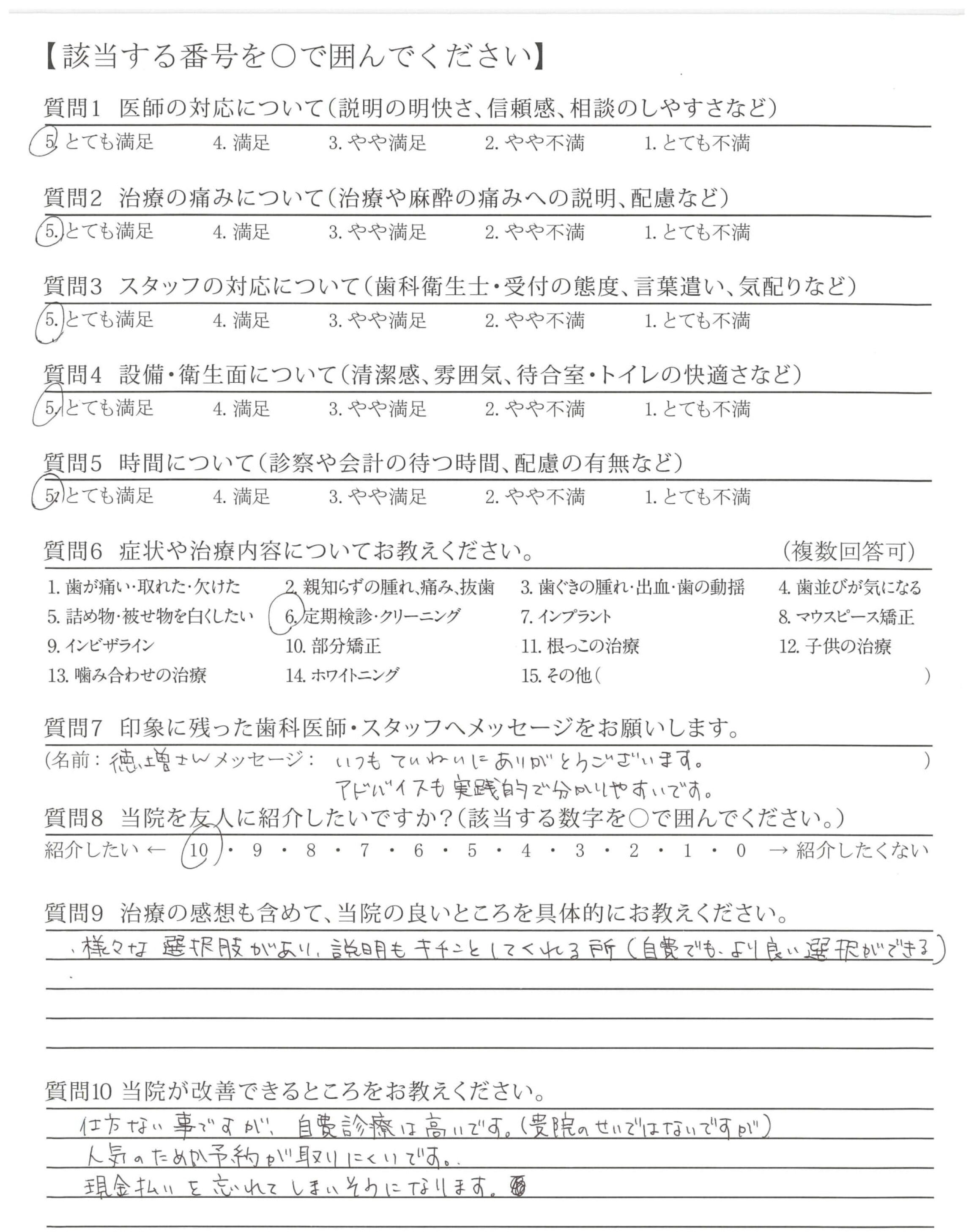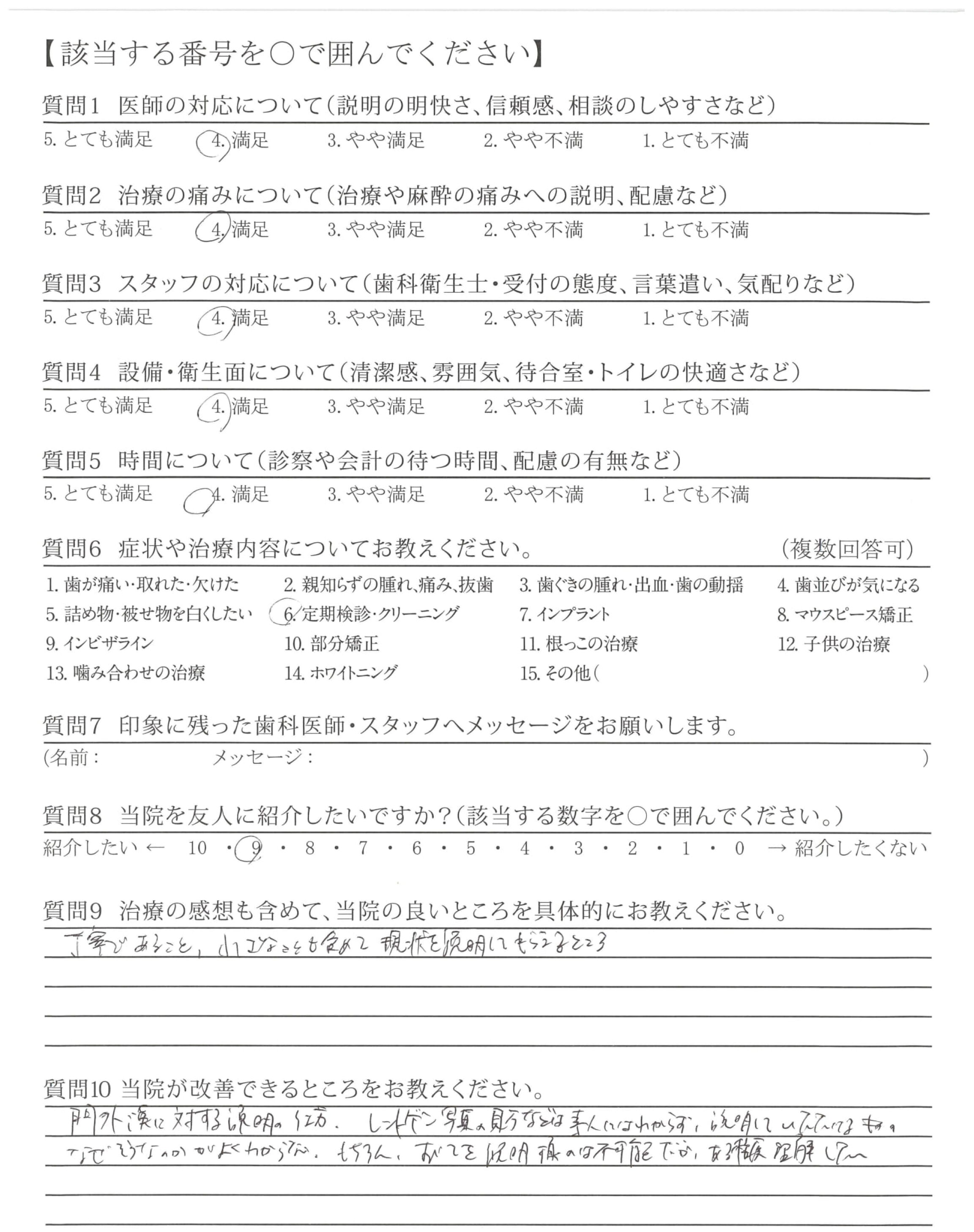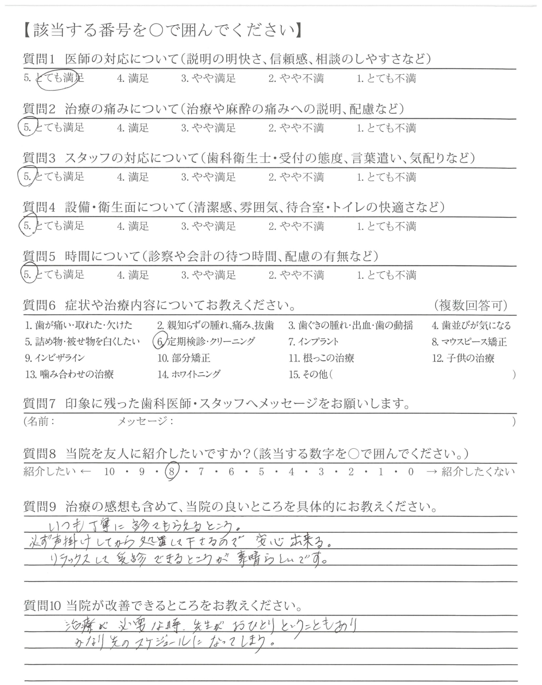 クリーニングも丁寧にやっていただけて、直した方が良いところをしっかり教えてもらえる