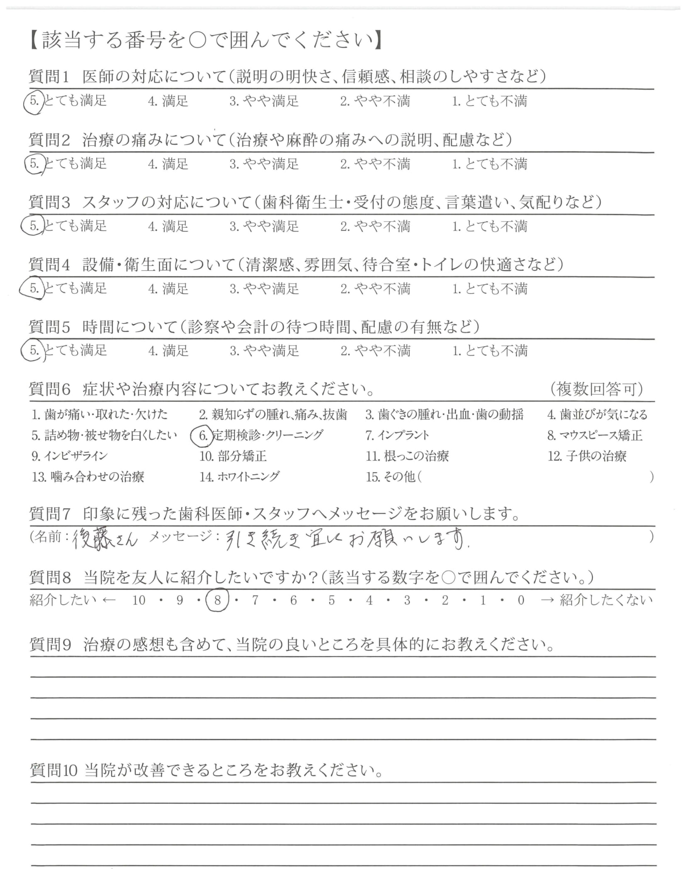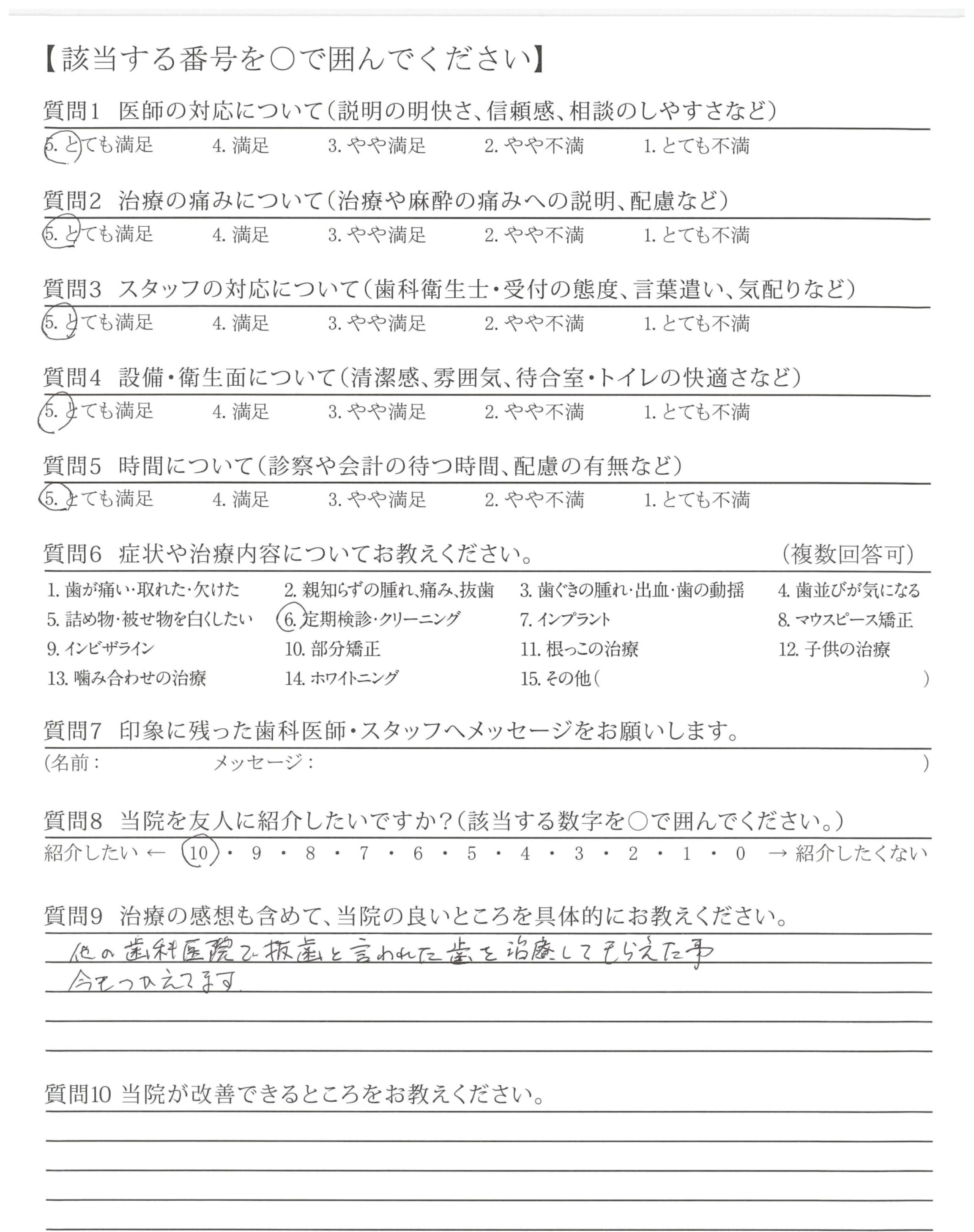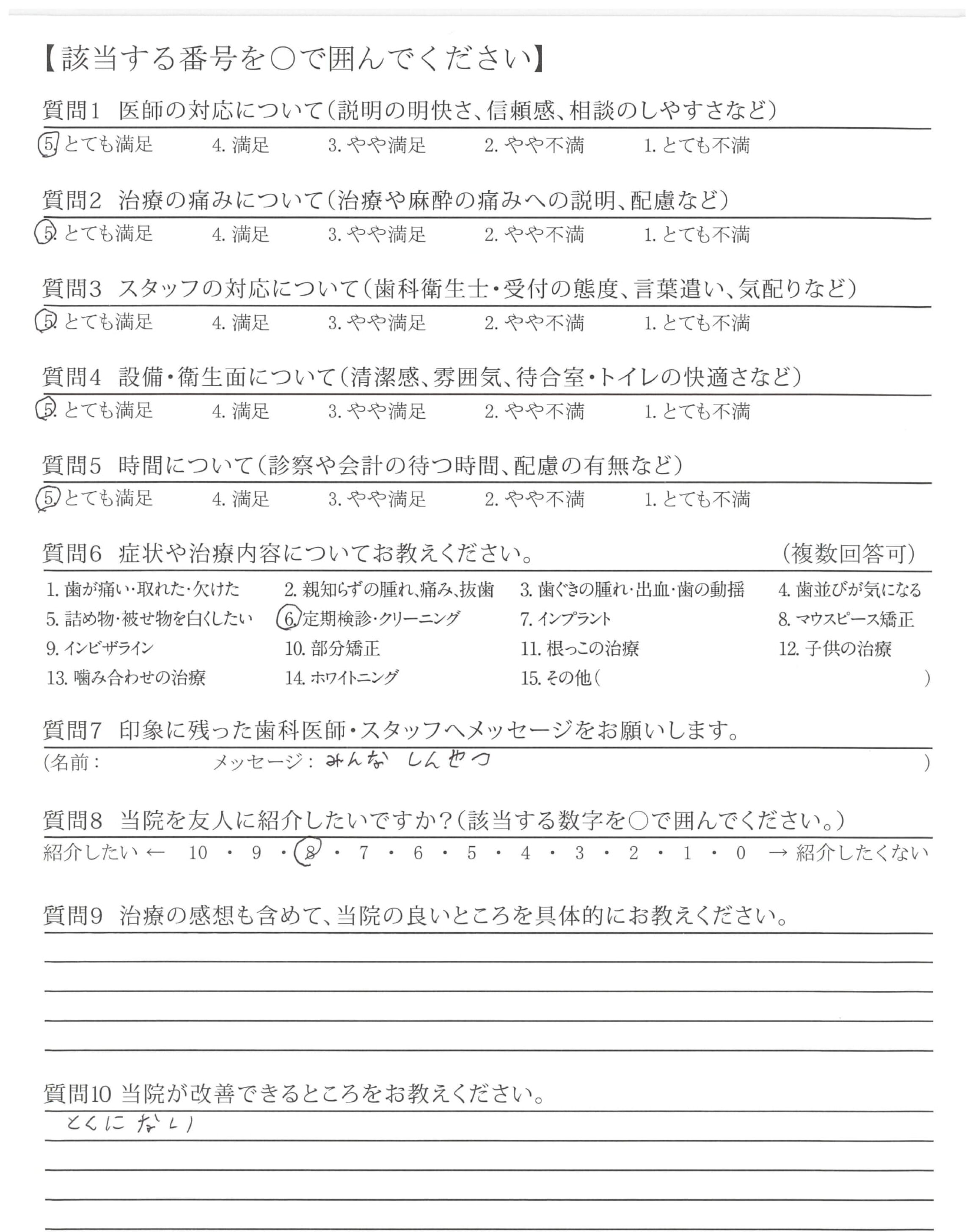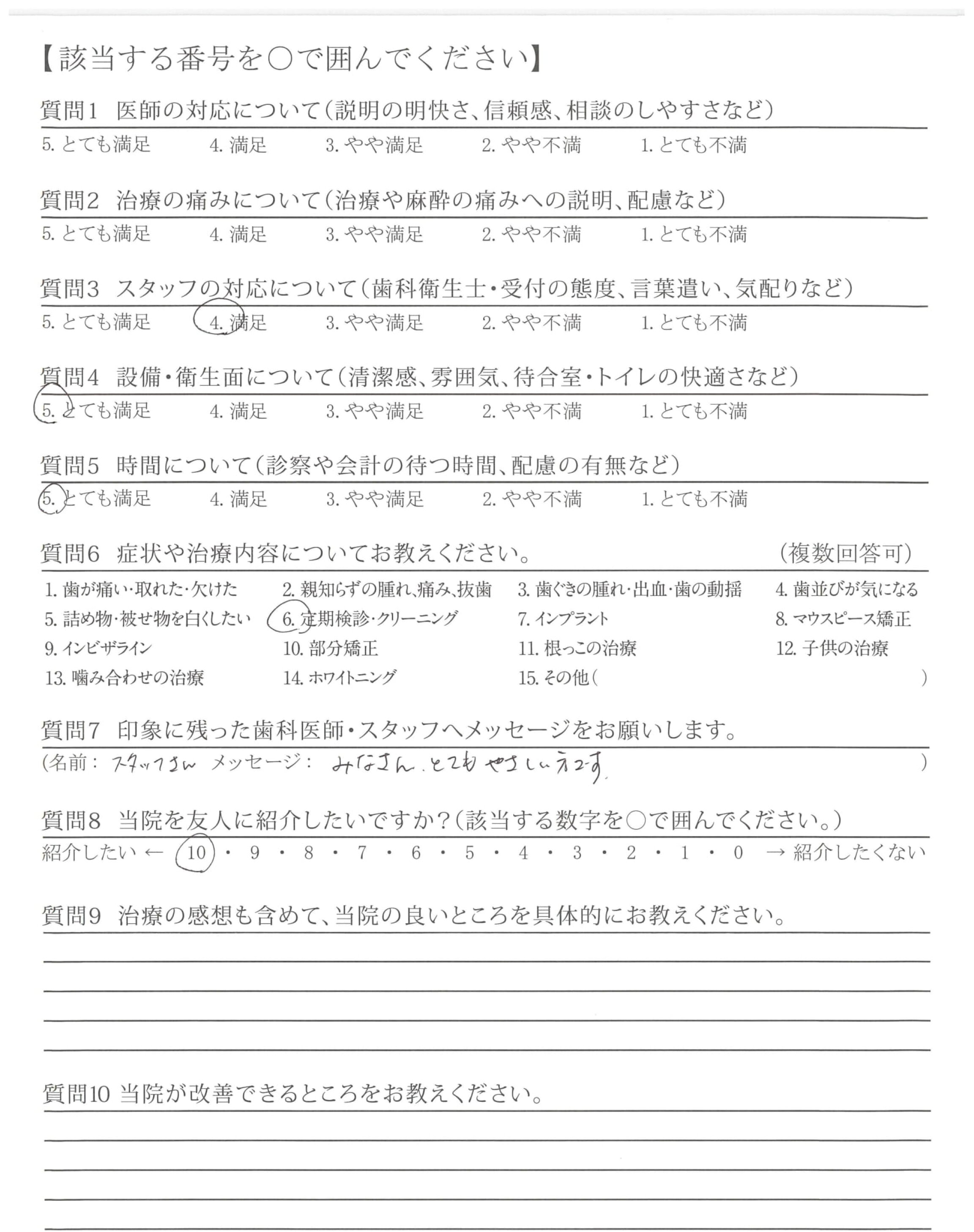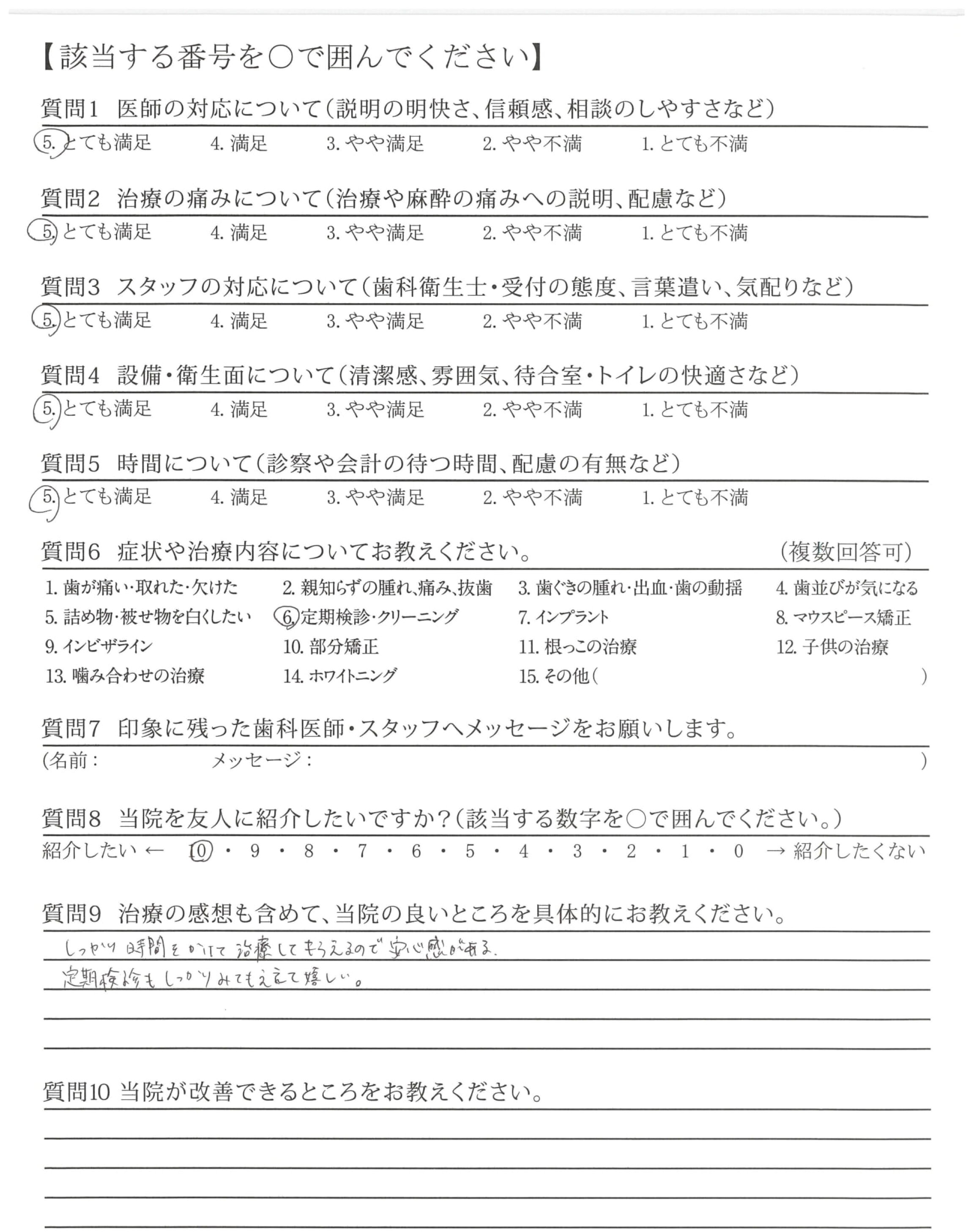 クリーニングも丁寧にやっていただけて、直した方が良いところをしっかり教えてもらえる