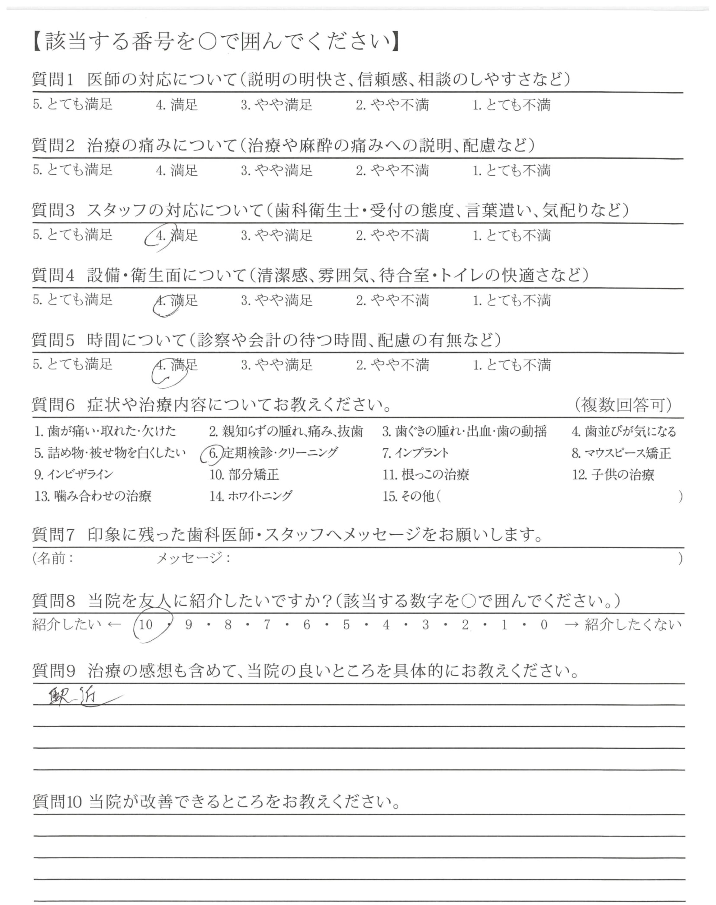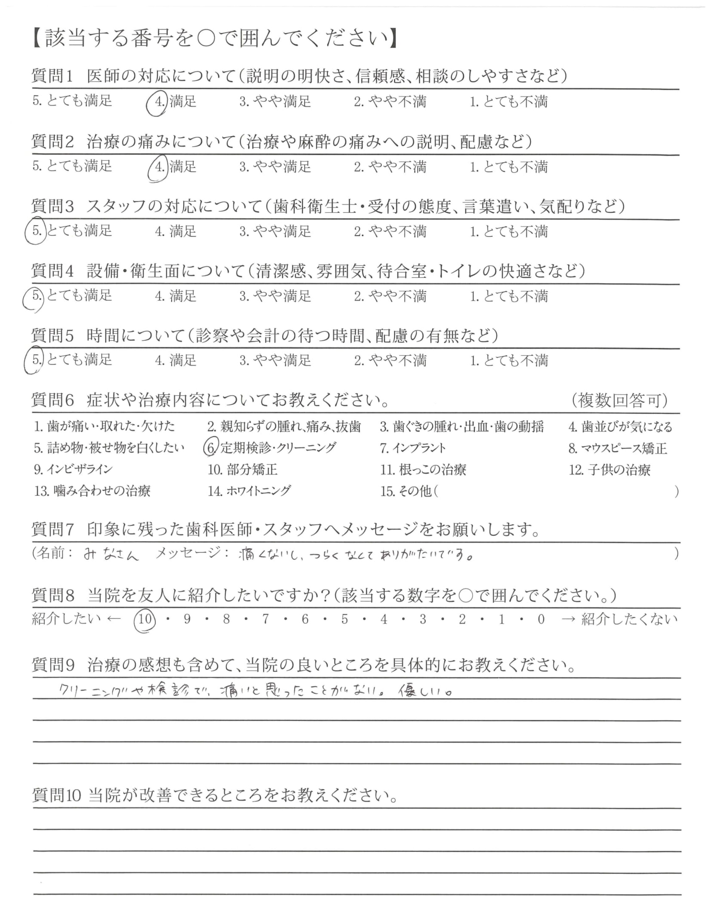 | 治療の痛みへの配慮 | ![]() ![]() ![]() ![]() 4.69 |