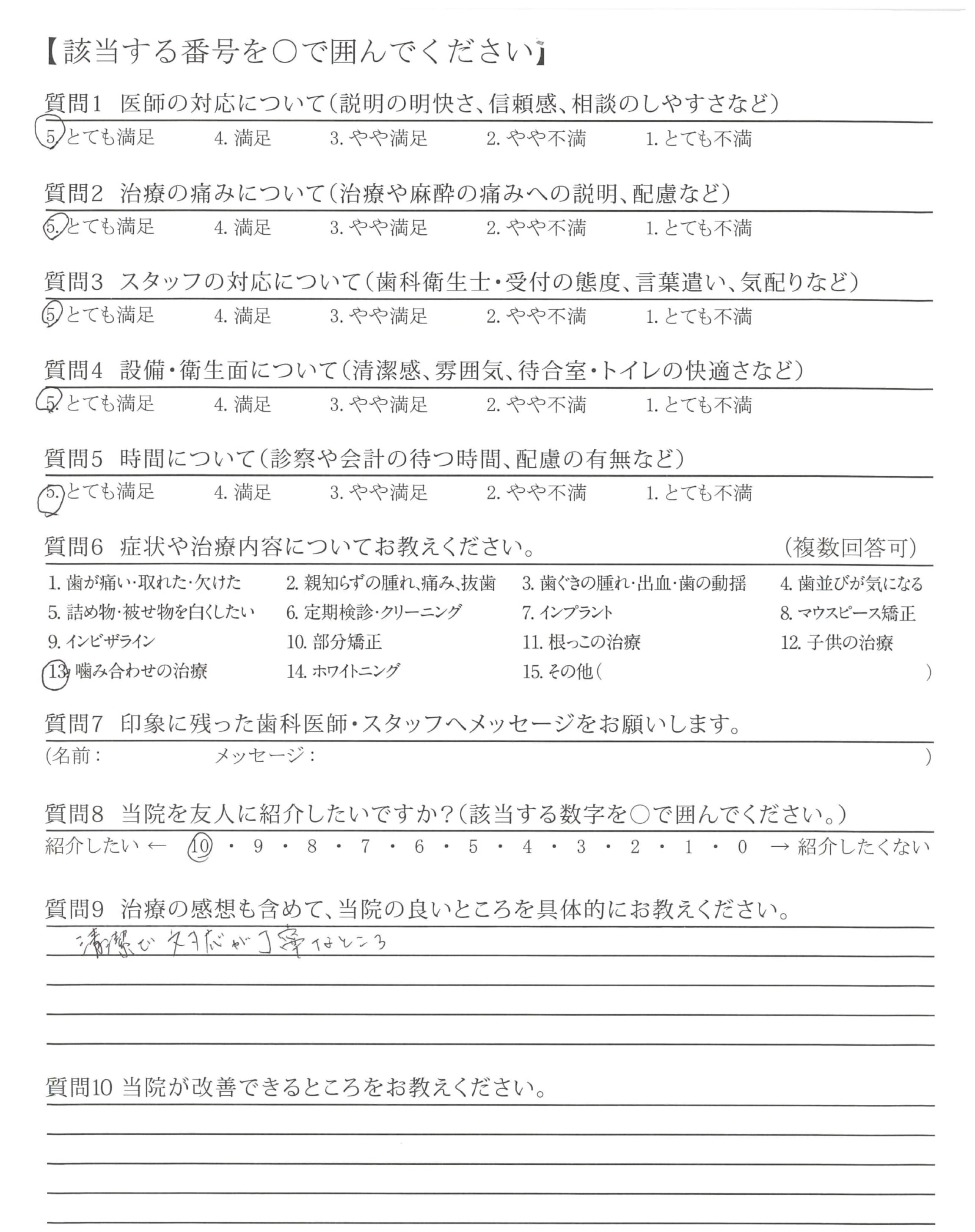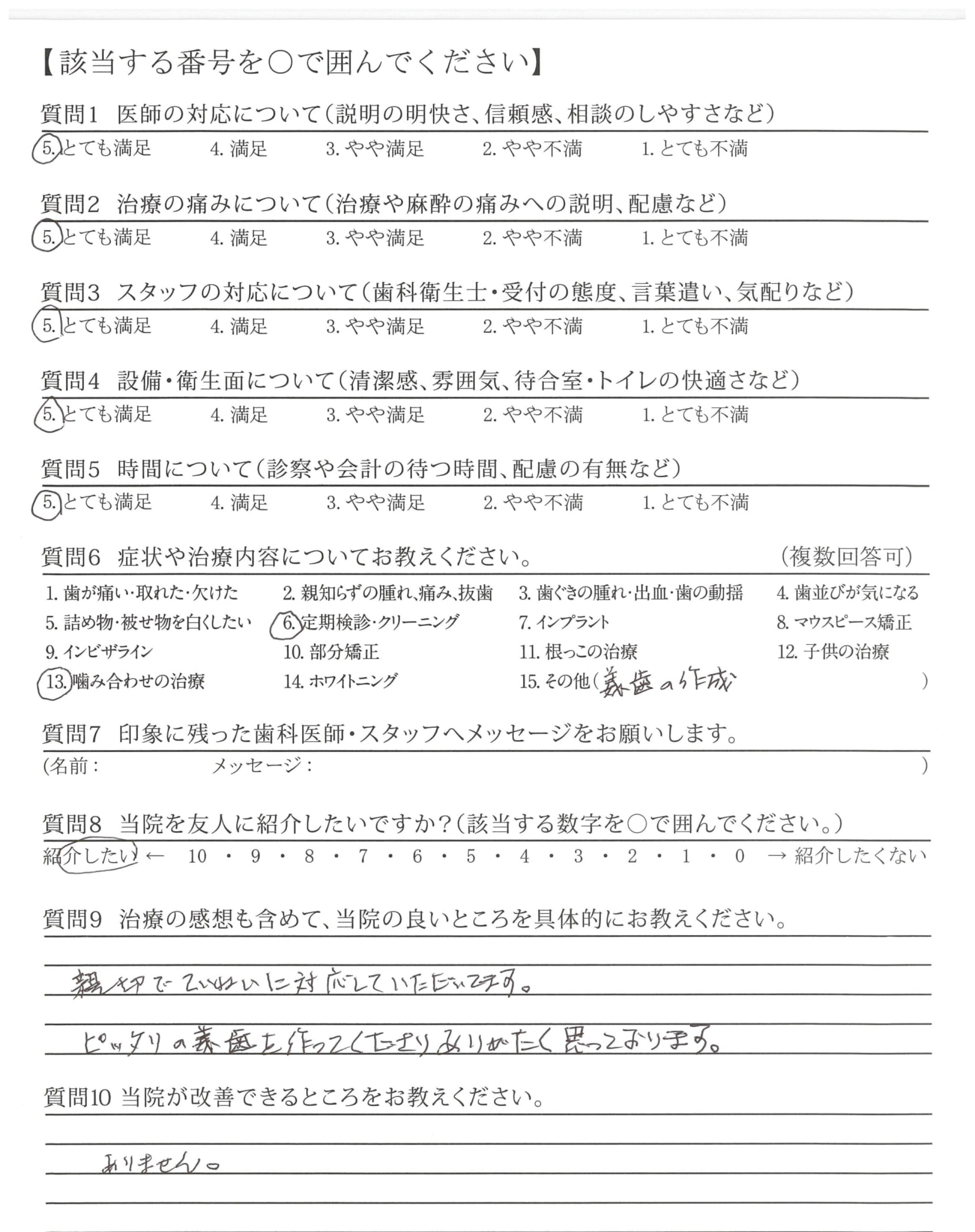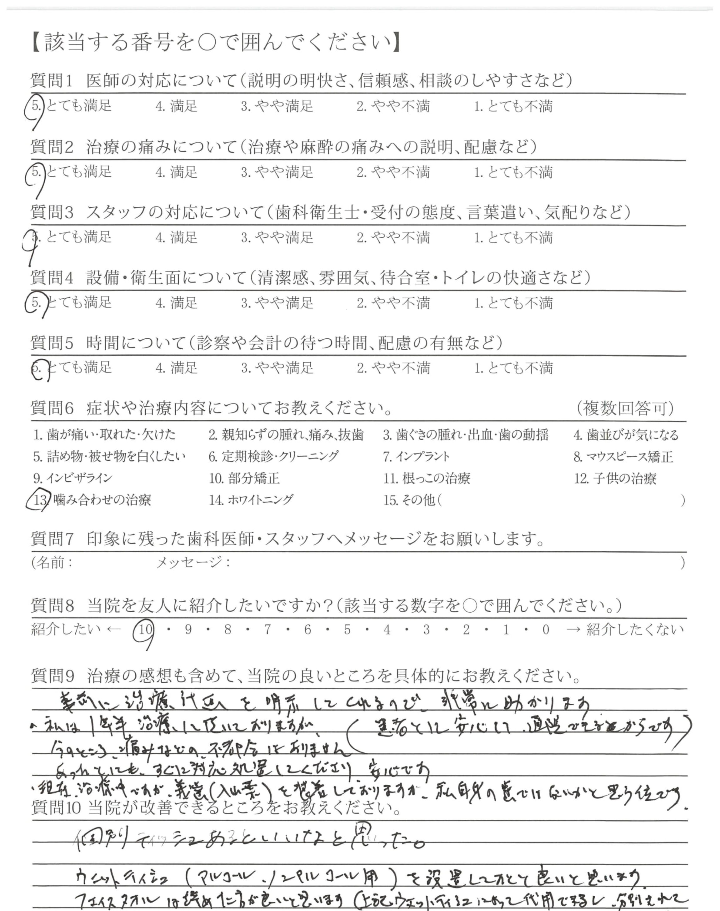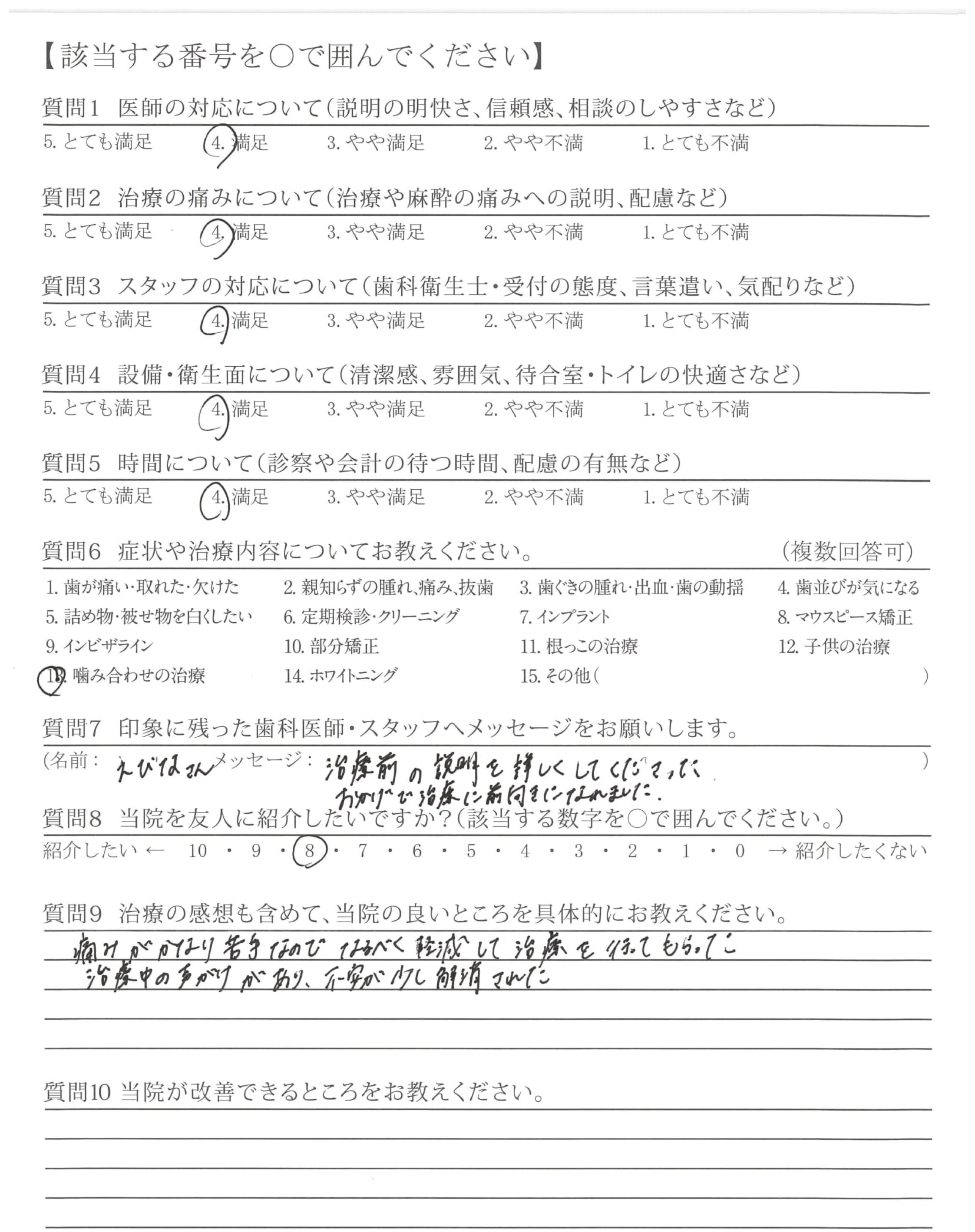 ・長期間不具合があり、とても複雑な治療だったと思いますが、順序立てて、きっちりと治療していただき、とても感謝しております。
