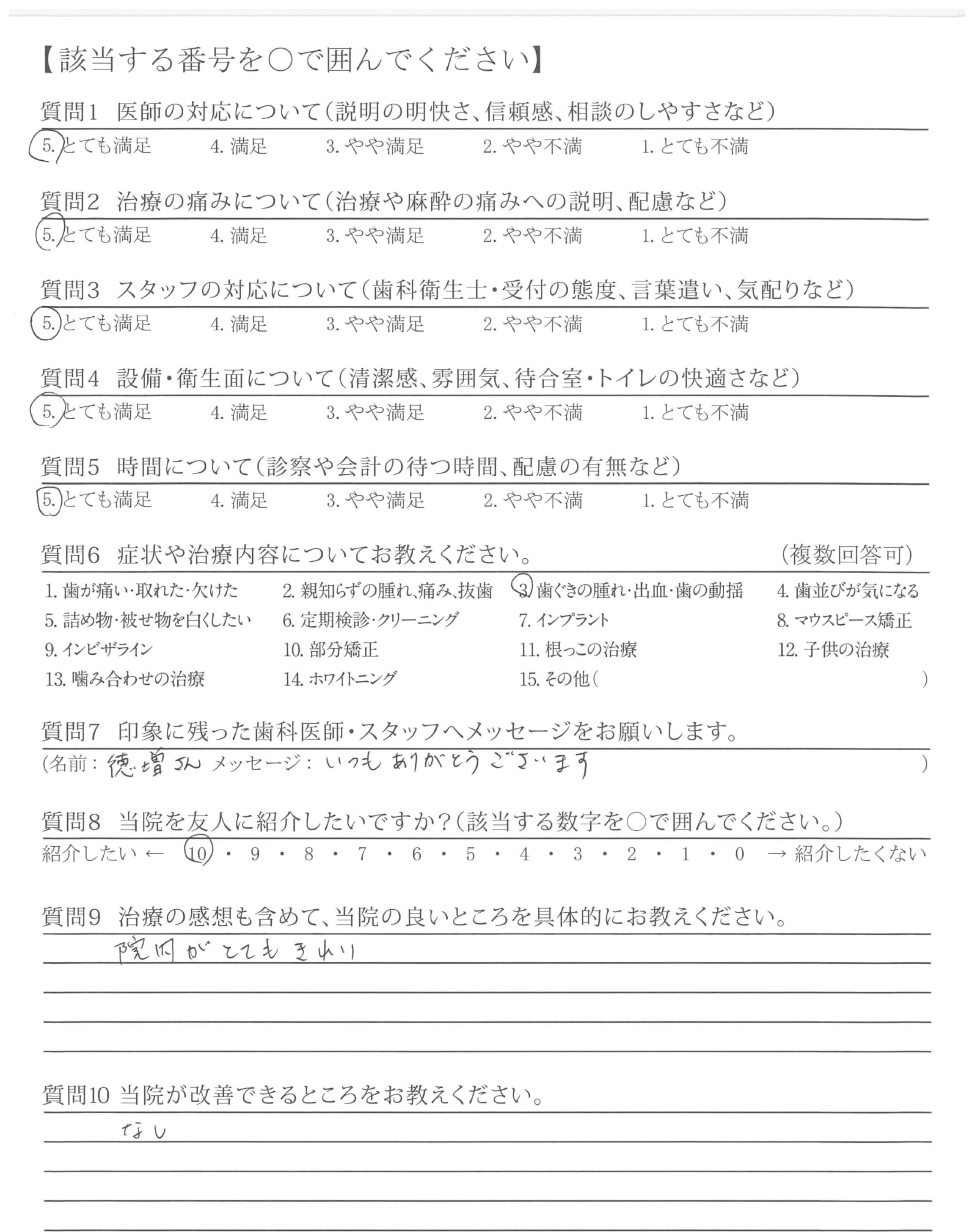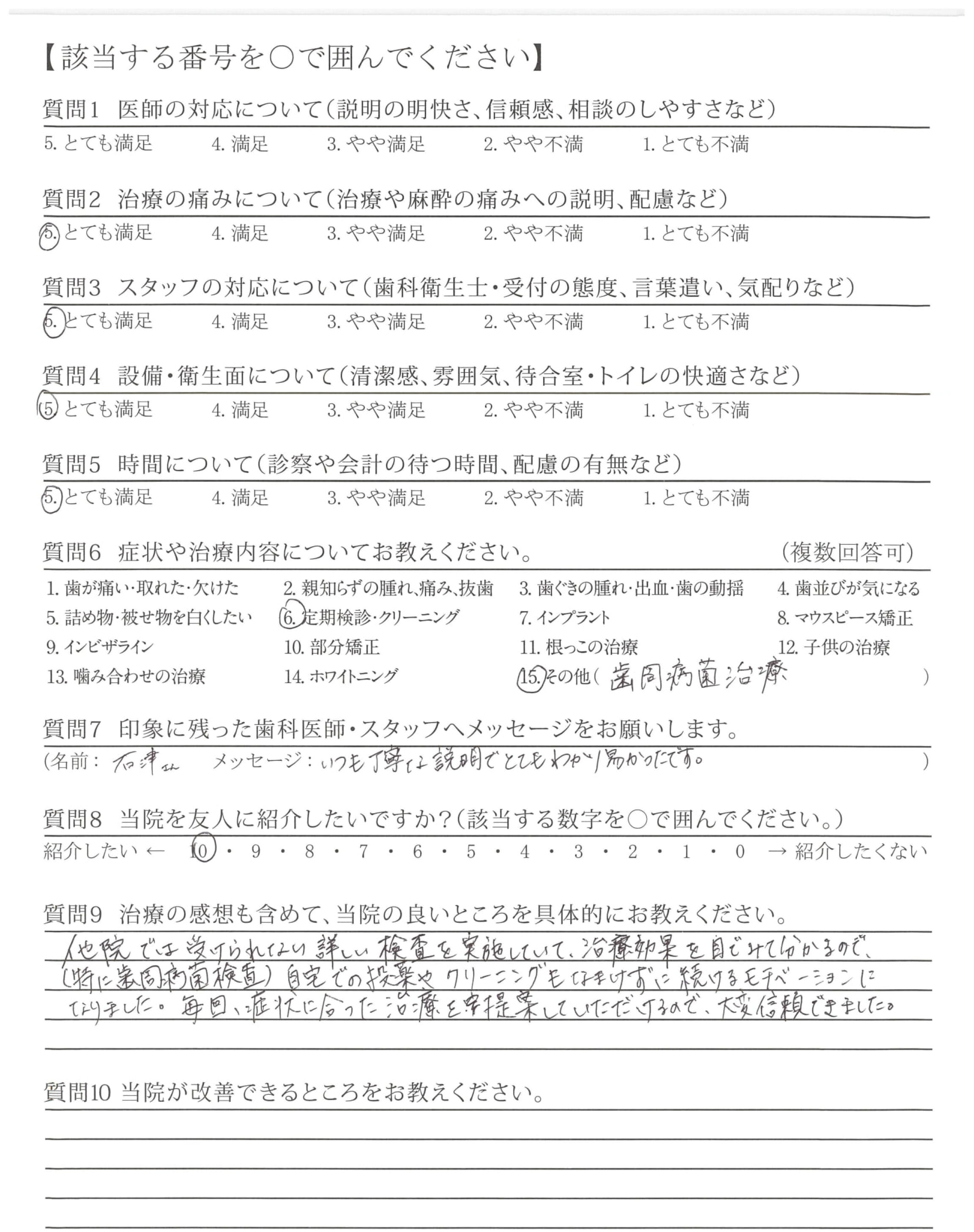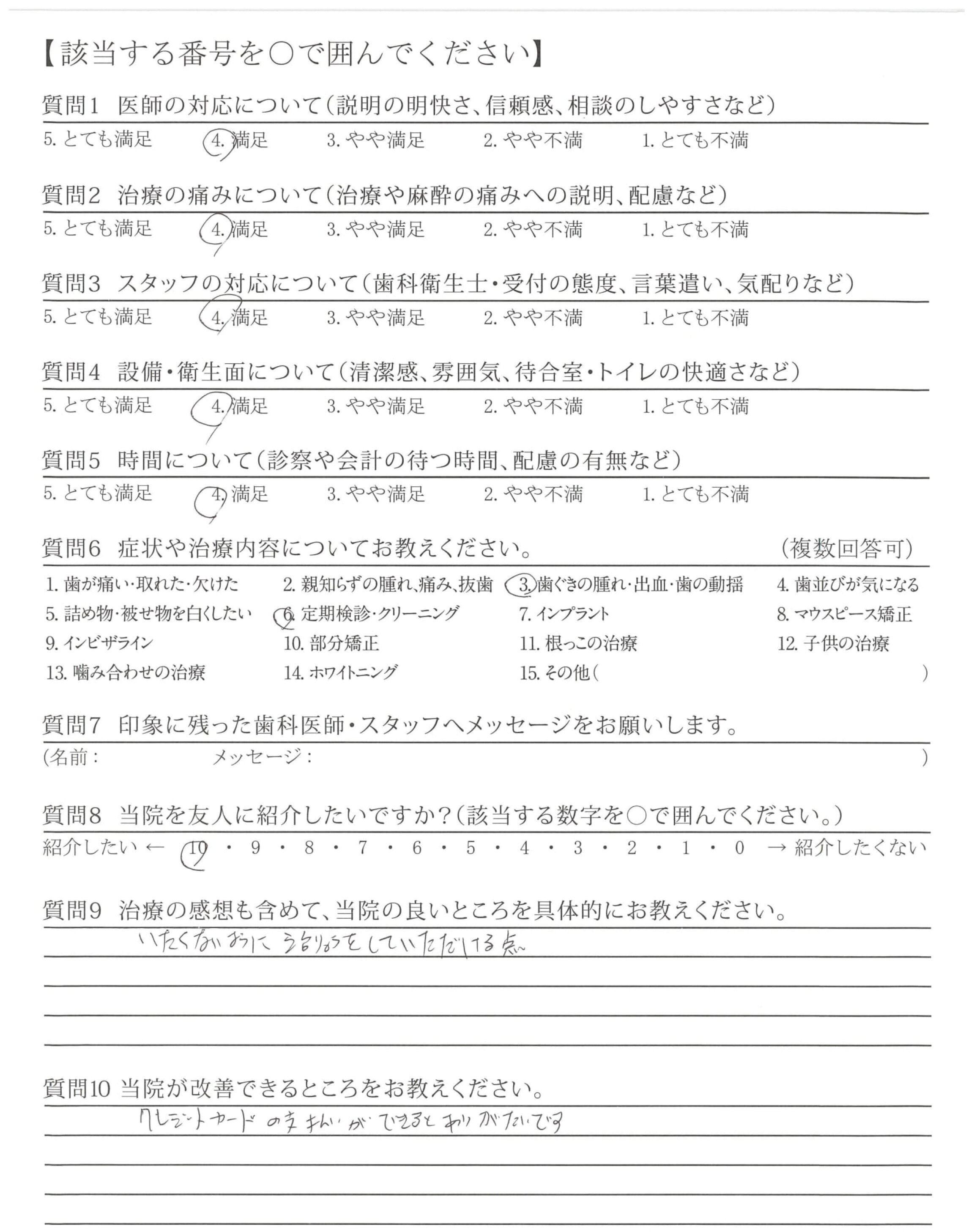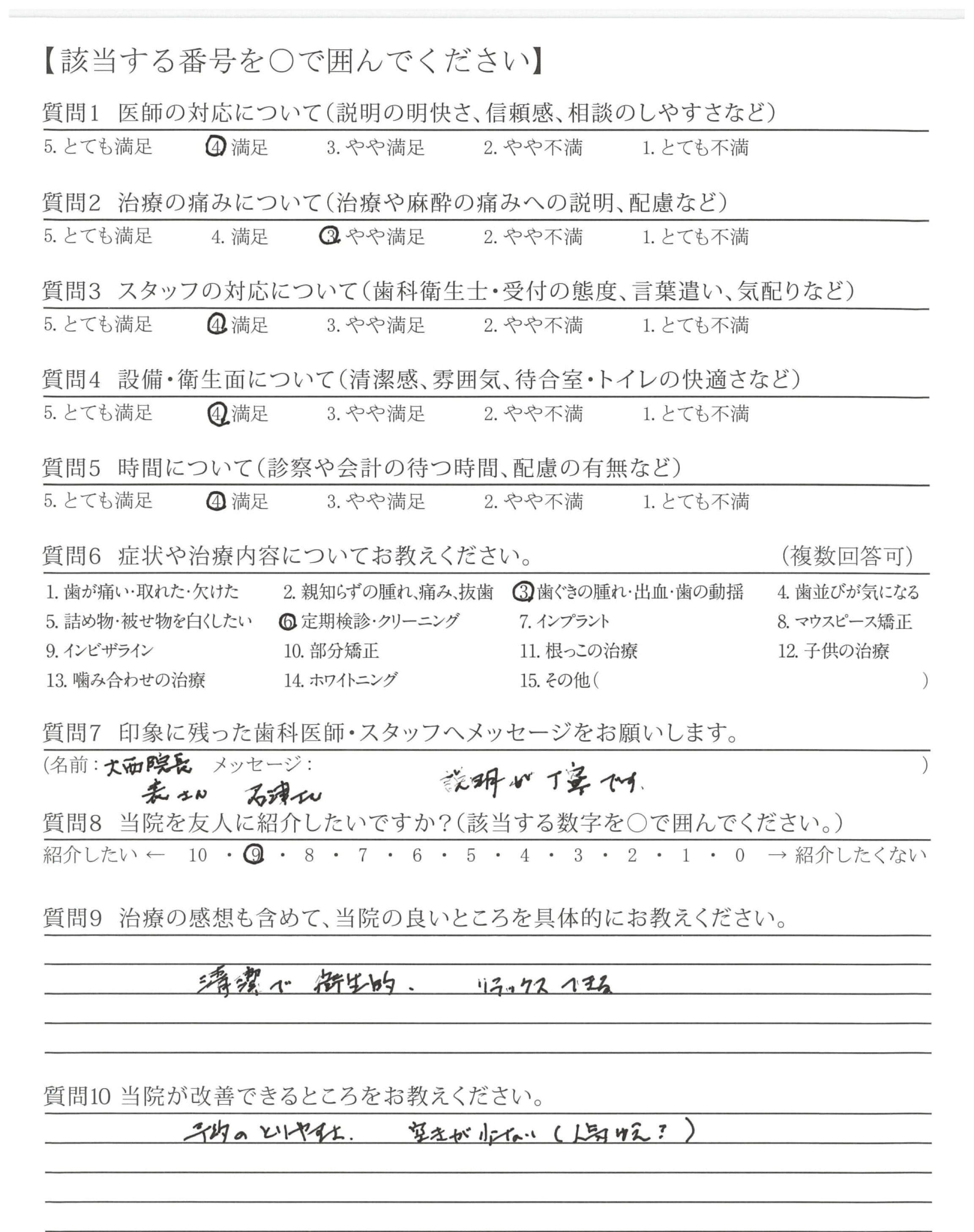 口臭外来治療時から一貫して各種治療で大変お世話になり、ありがとうございます。