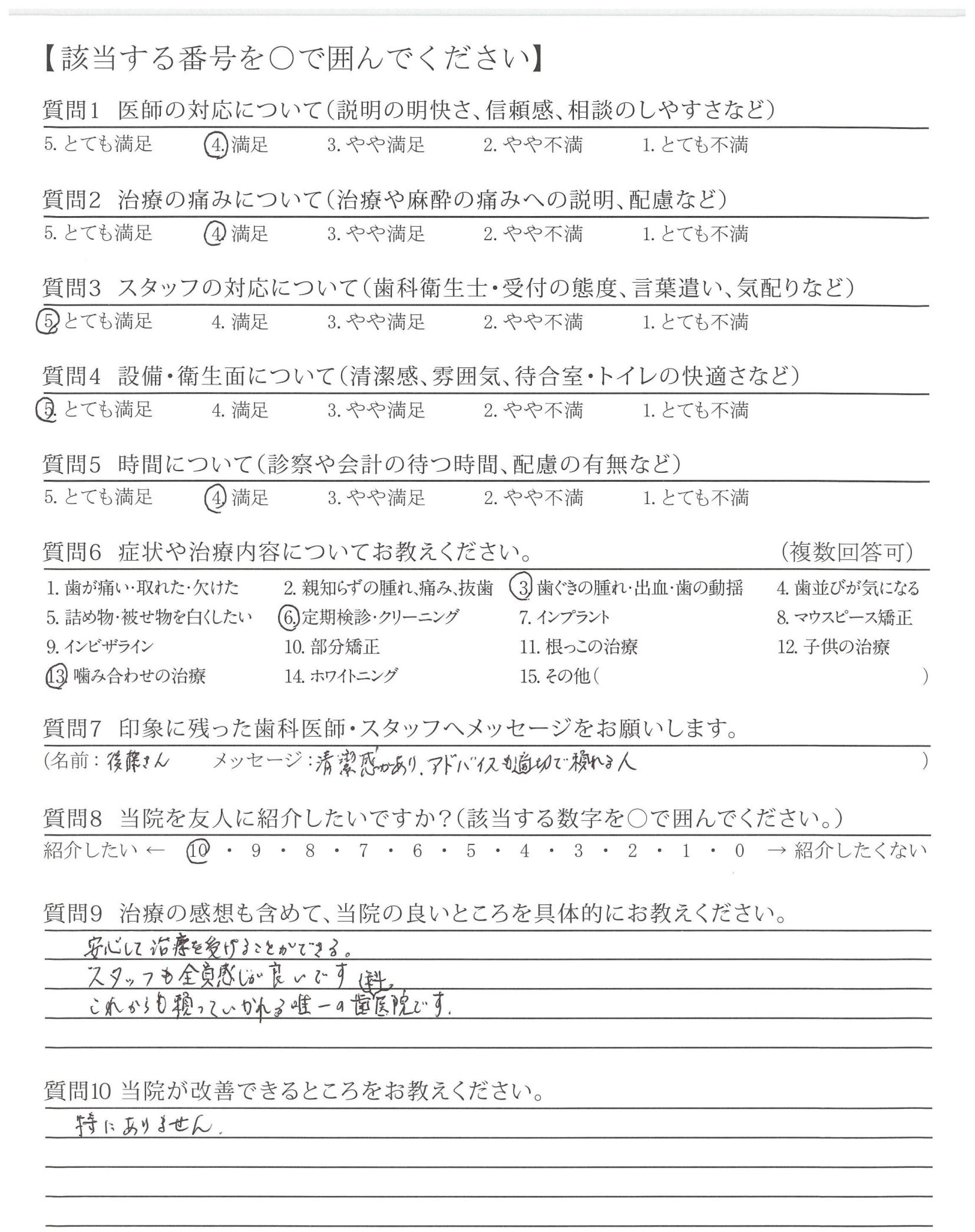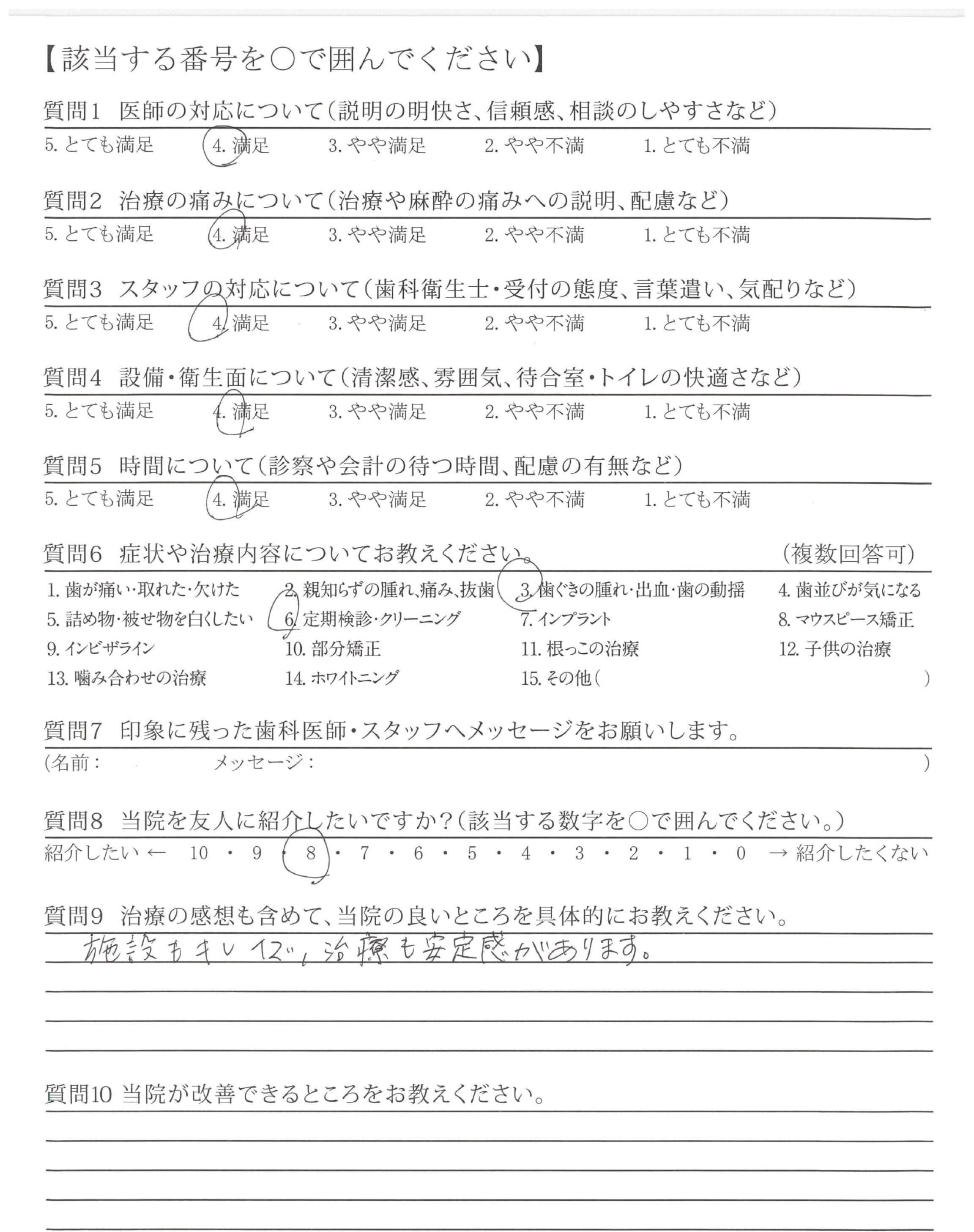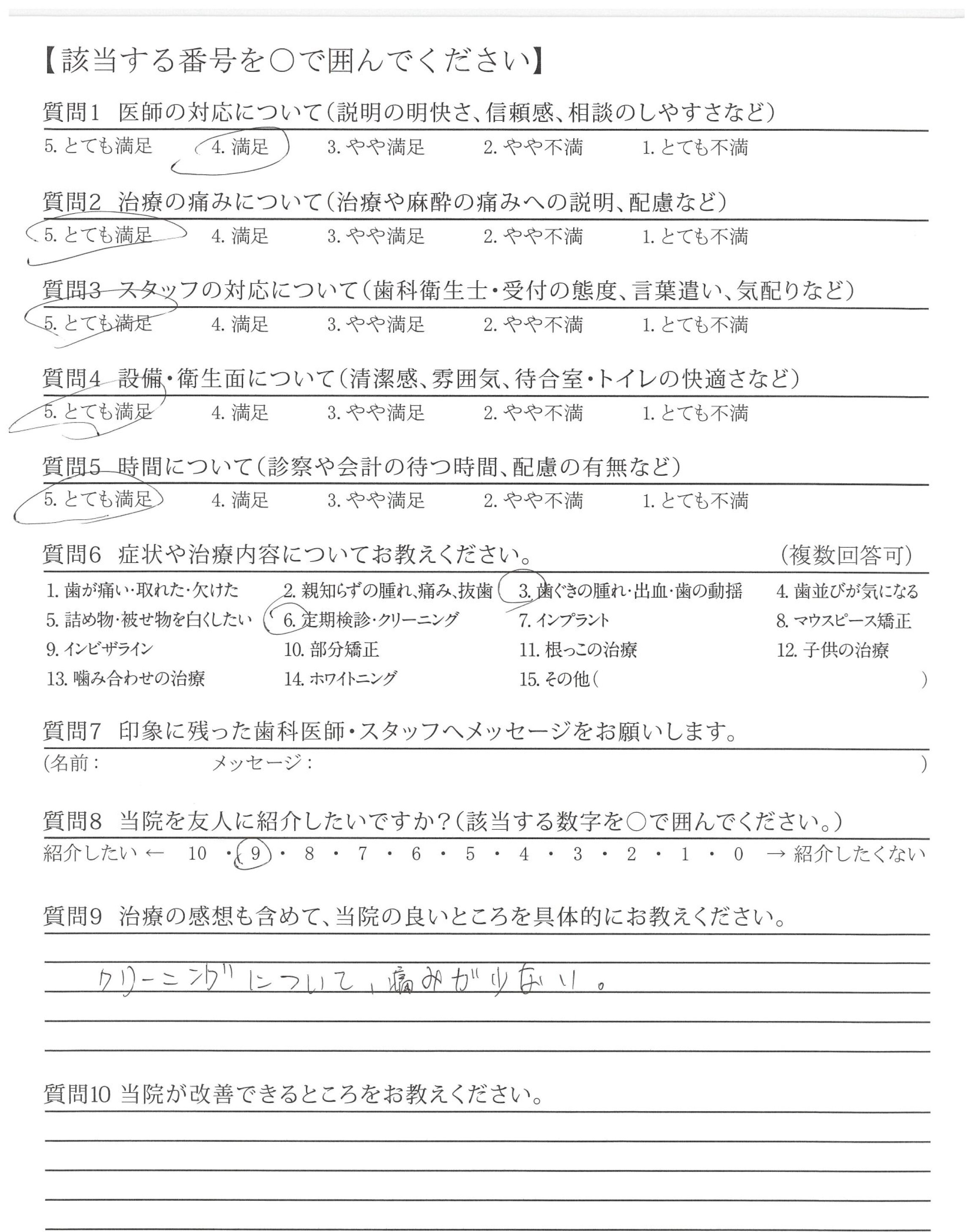 | 治療の痛みへの配慮 | ![]() ![]() ![]() ![]() 4.69 |