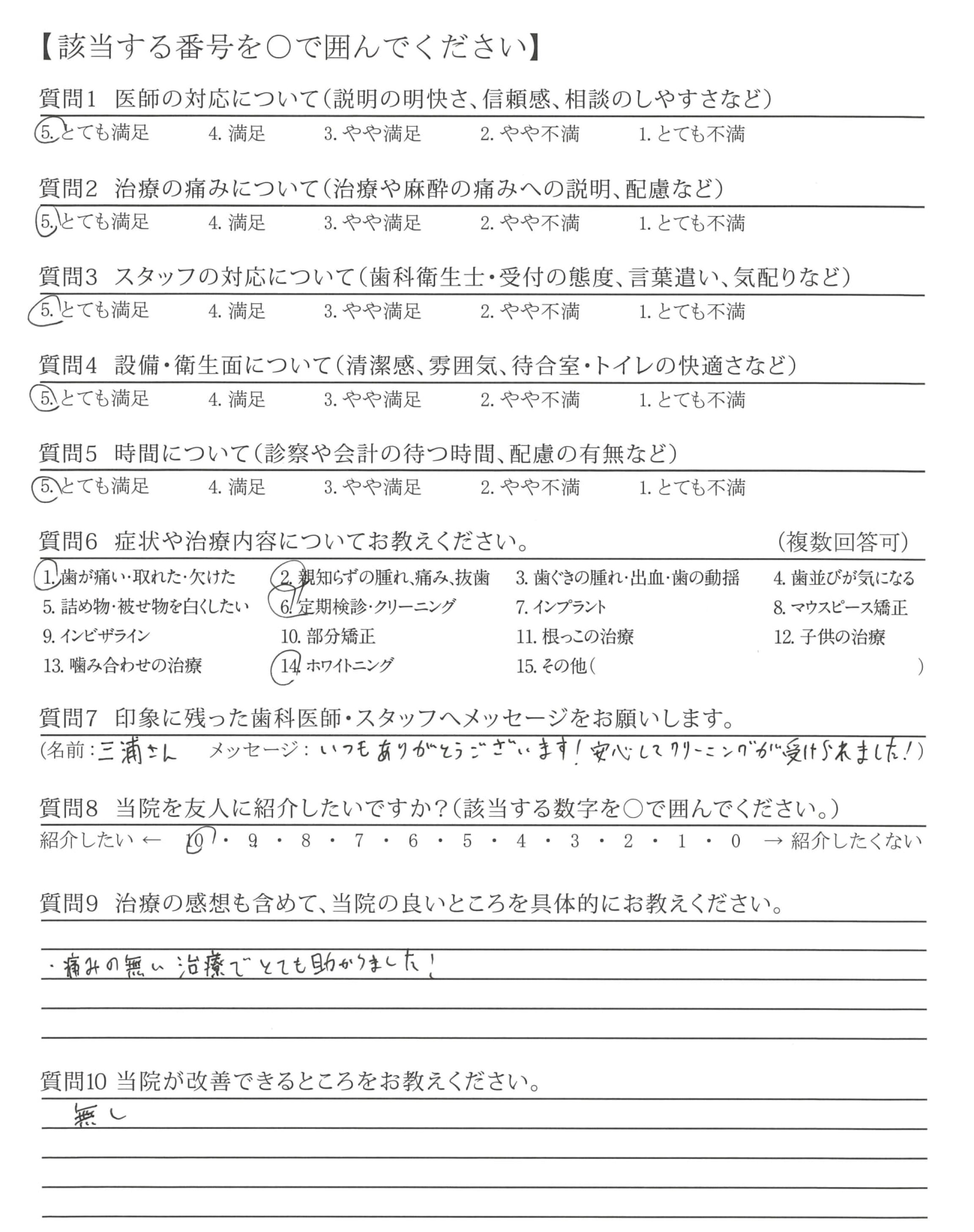 ・痛みの無い治療でとても助かりました!