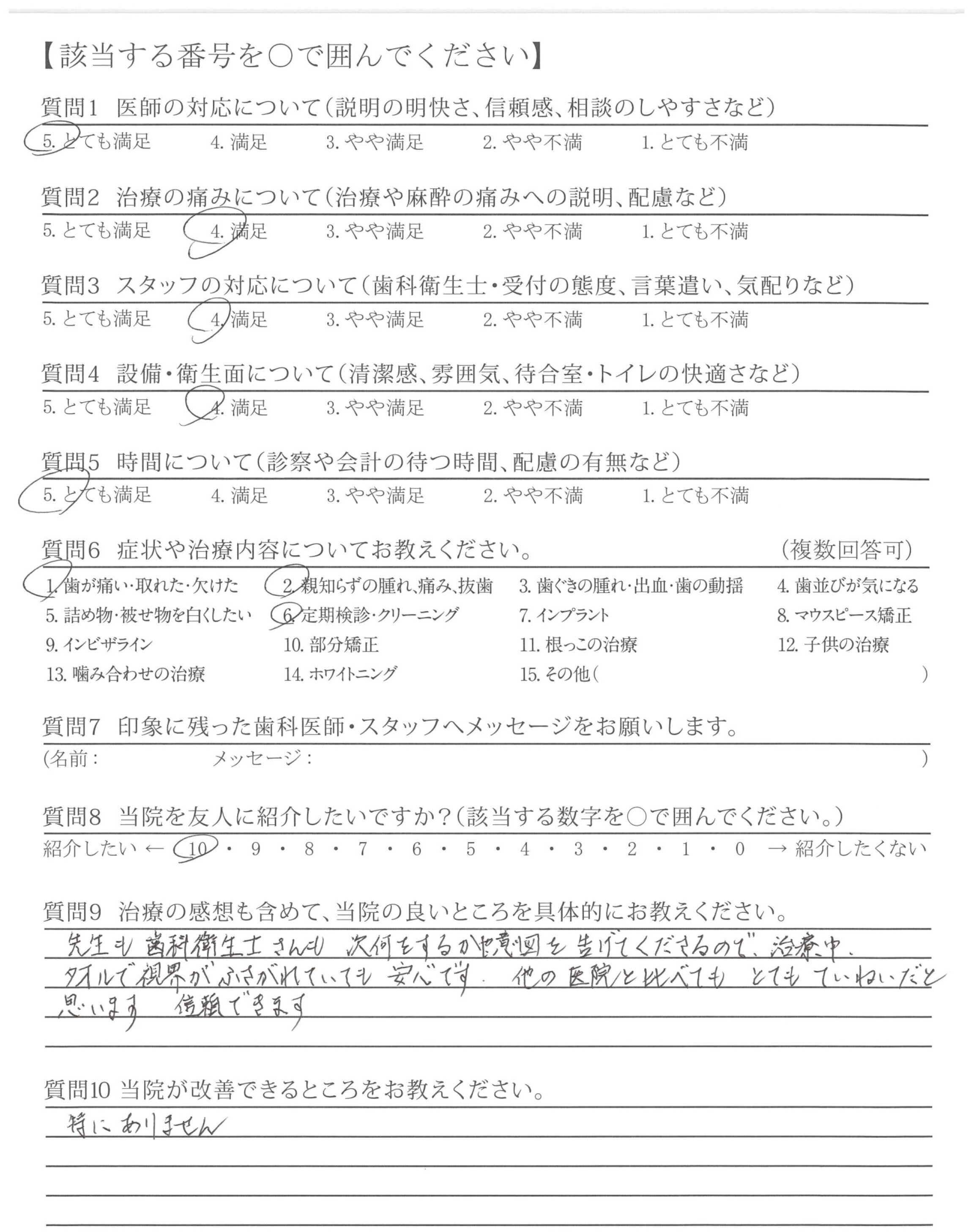 先生も歯科衛生士さんも次何をするかや意図を告げてくださるので、治療中、タオルで視界がふさがれていても安心です。