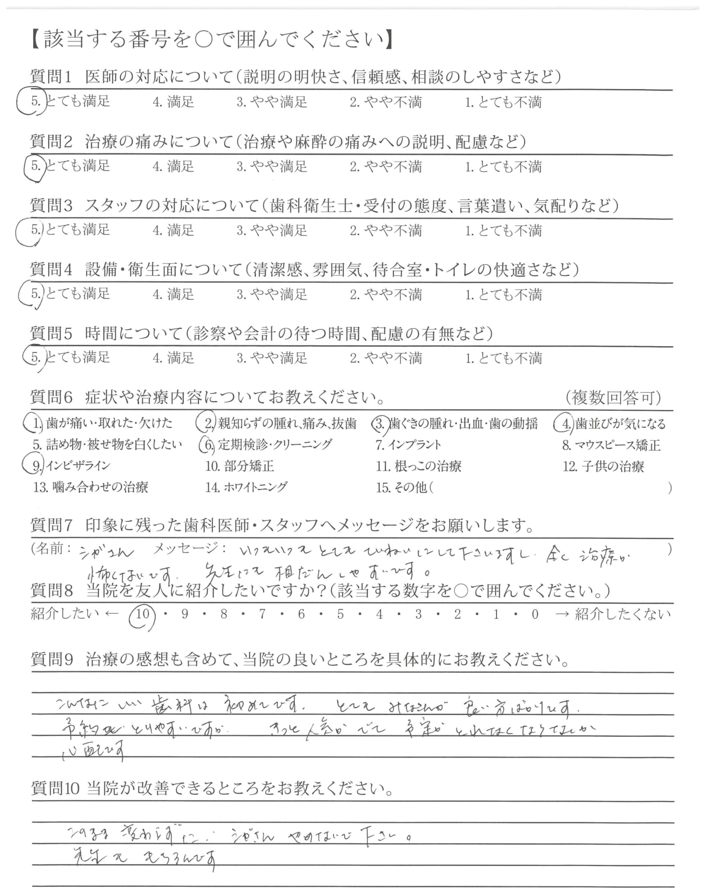 こんなにいい歯科は初めてです。とてもみなさんが良い方ばかりです。