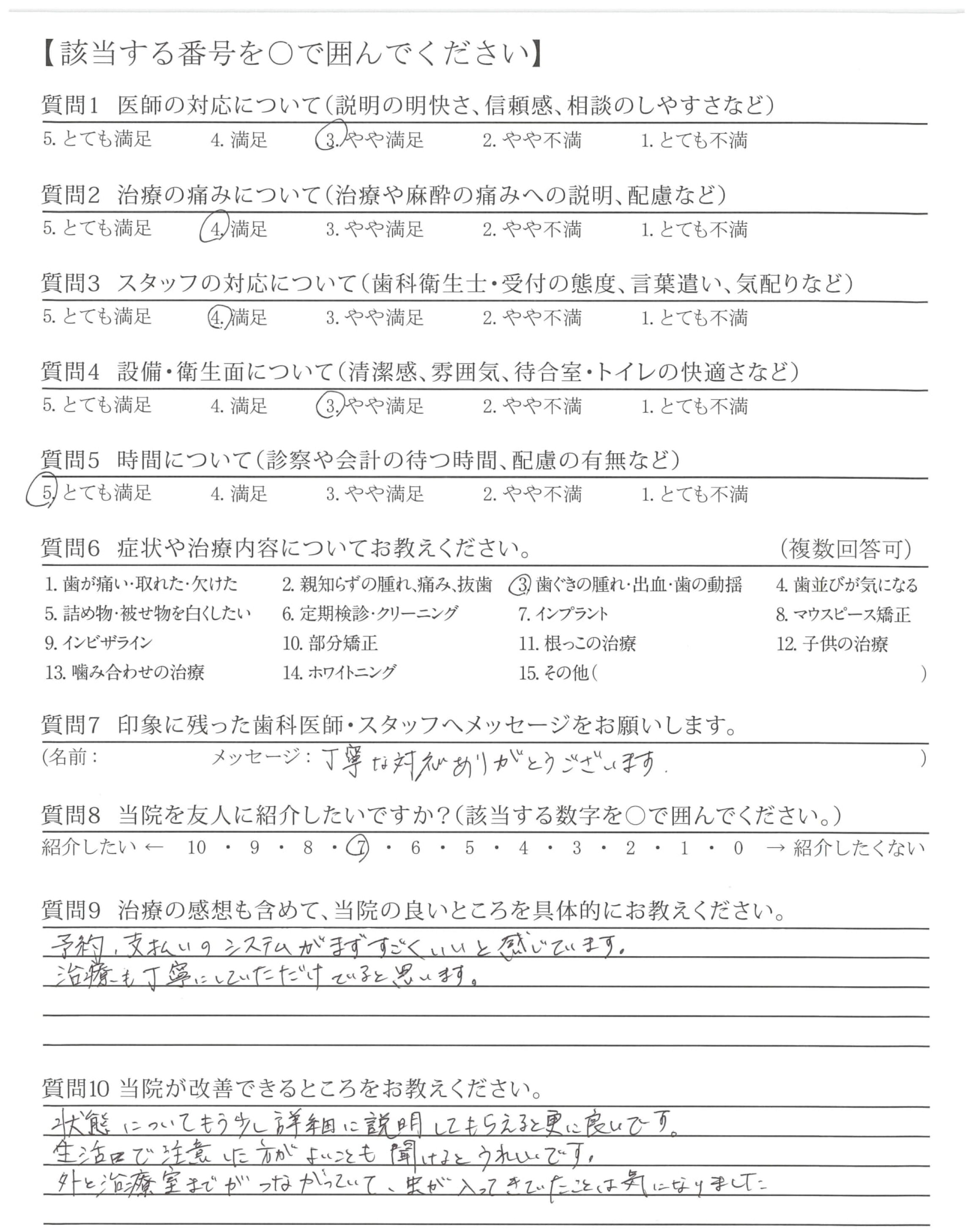 治療後のホームケアについて、分かりやすく具体的に教えて下さり、大変助かりました。